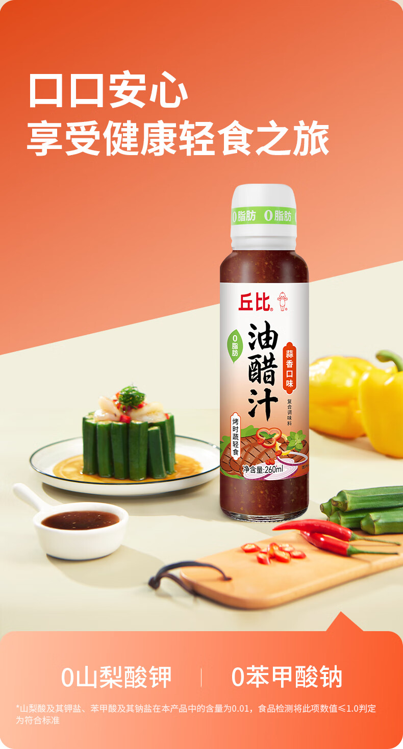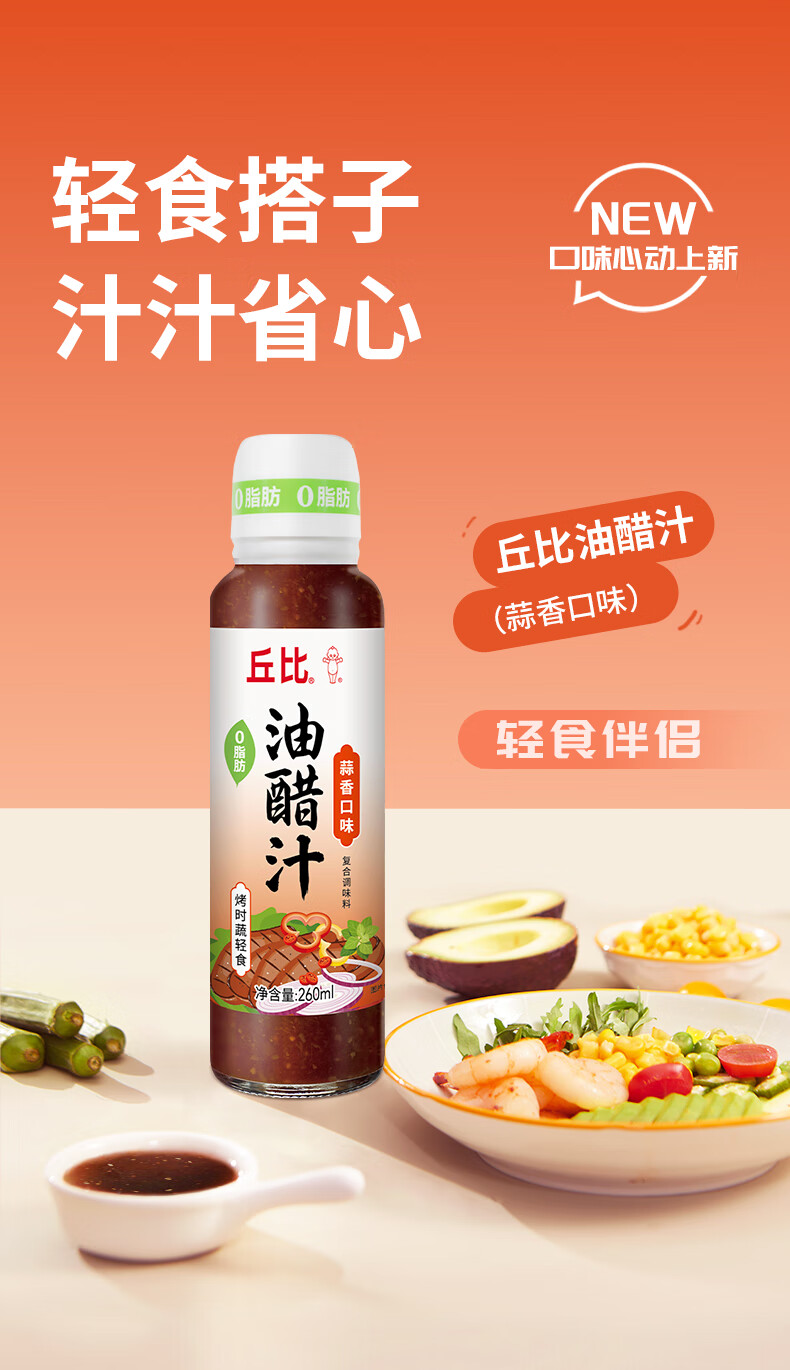 丘比(KEWPIE)0脂蒜香油醋汁 调味品 轻食沙拉汁烧烤BBQ蔬菜水果 260ml*1瓶