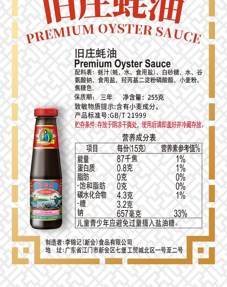 李锦记 旧庄蚝油255g 0添加防腐剂 甄选鲜蚝慢煮10h 百年秘方上等提鲜