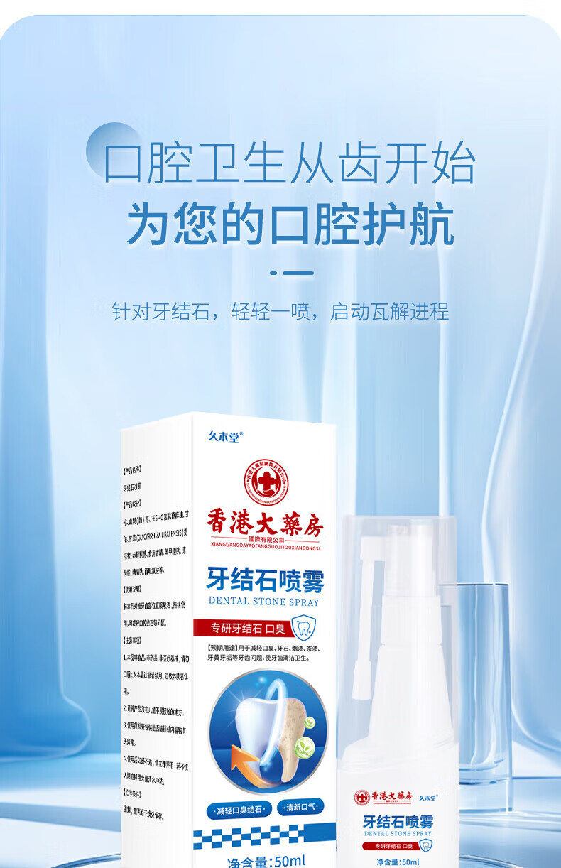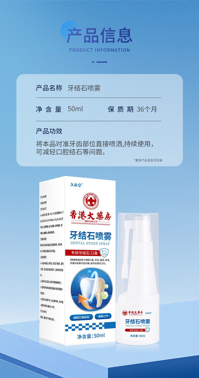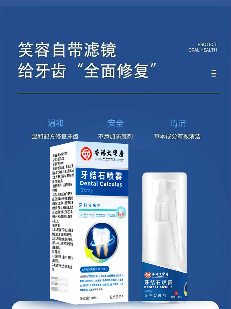 香港大药房牙结石清理神器溶解液去牙垢牙结石清除速效清理神器口臭去黄喷雾 5盒:(结石不再来)买3送2