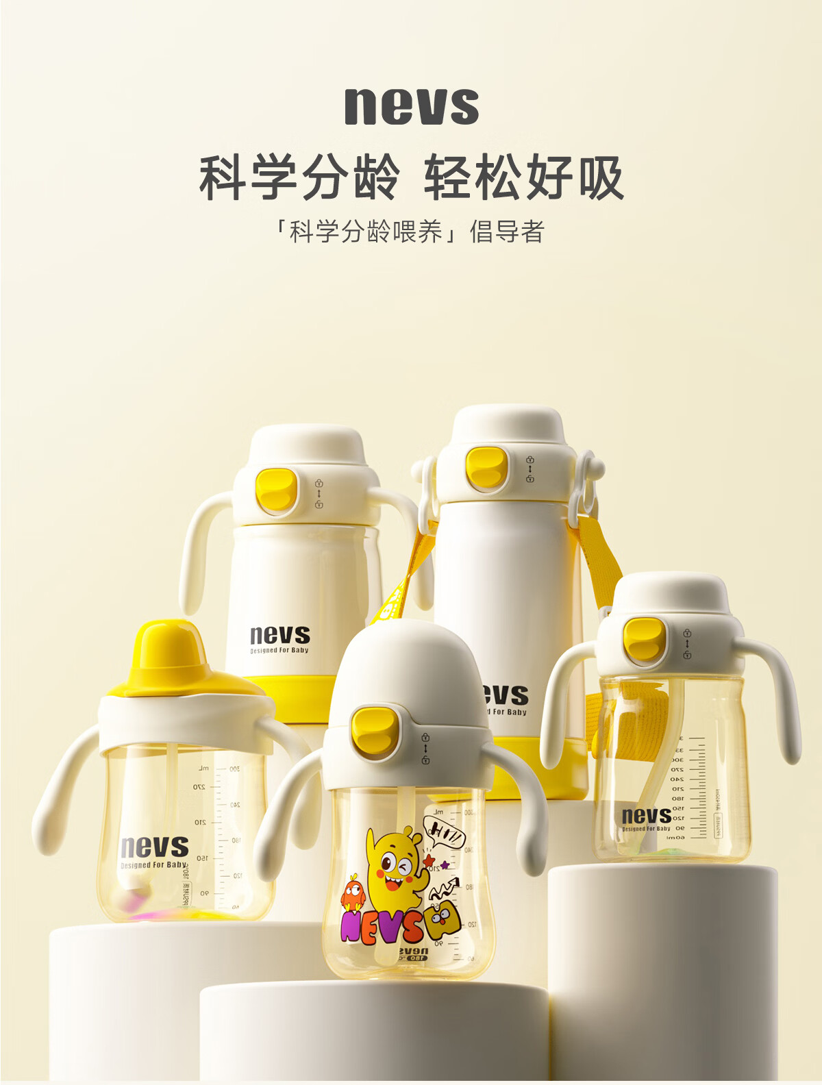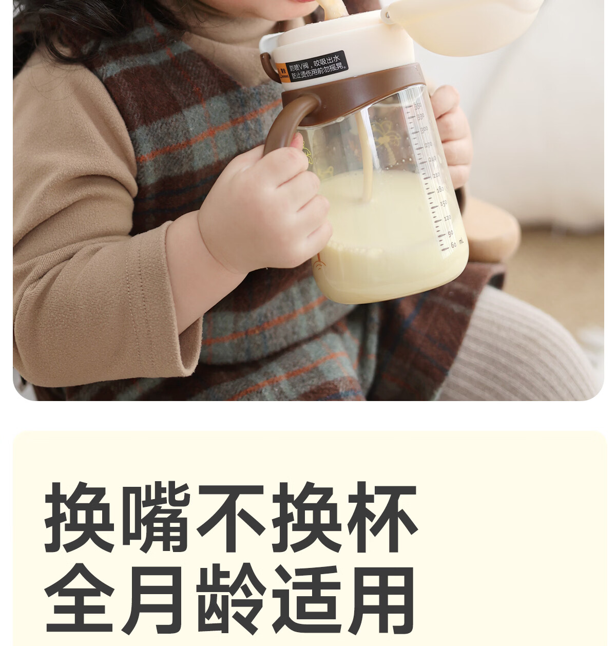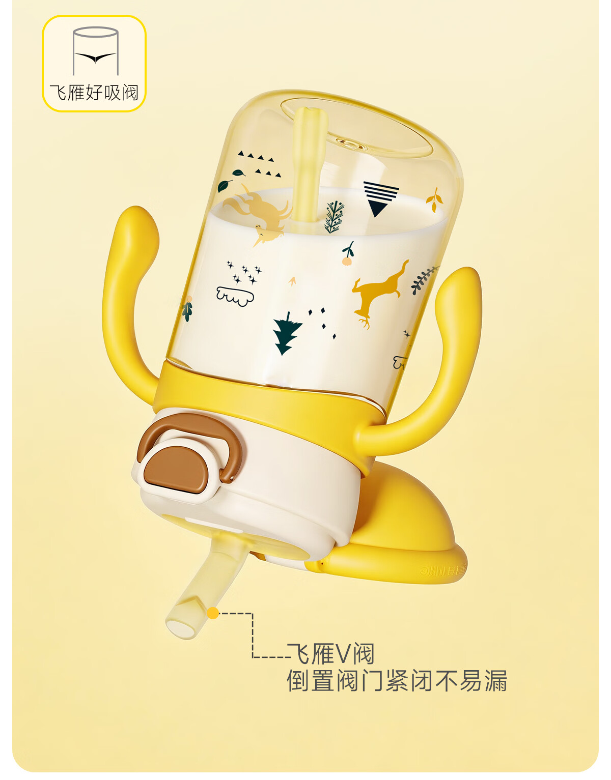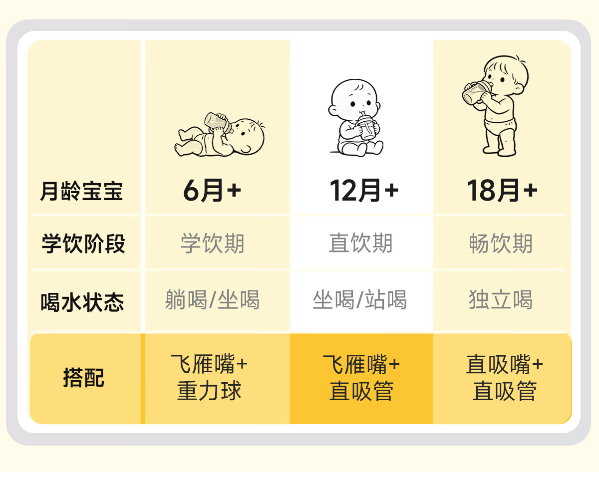 NEVS学饮杯6个月一岁以上鸭嘴杯婴儿吸管杯儿童水杯宝宝喝水喝奶瓶 12月+奶格米 350ml (V阀吸嘴+直饮管)