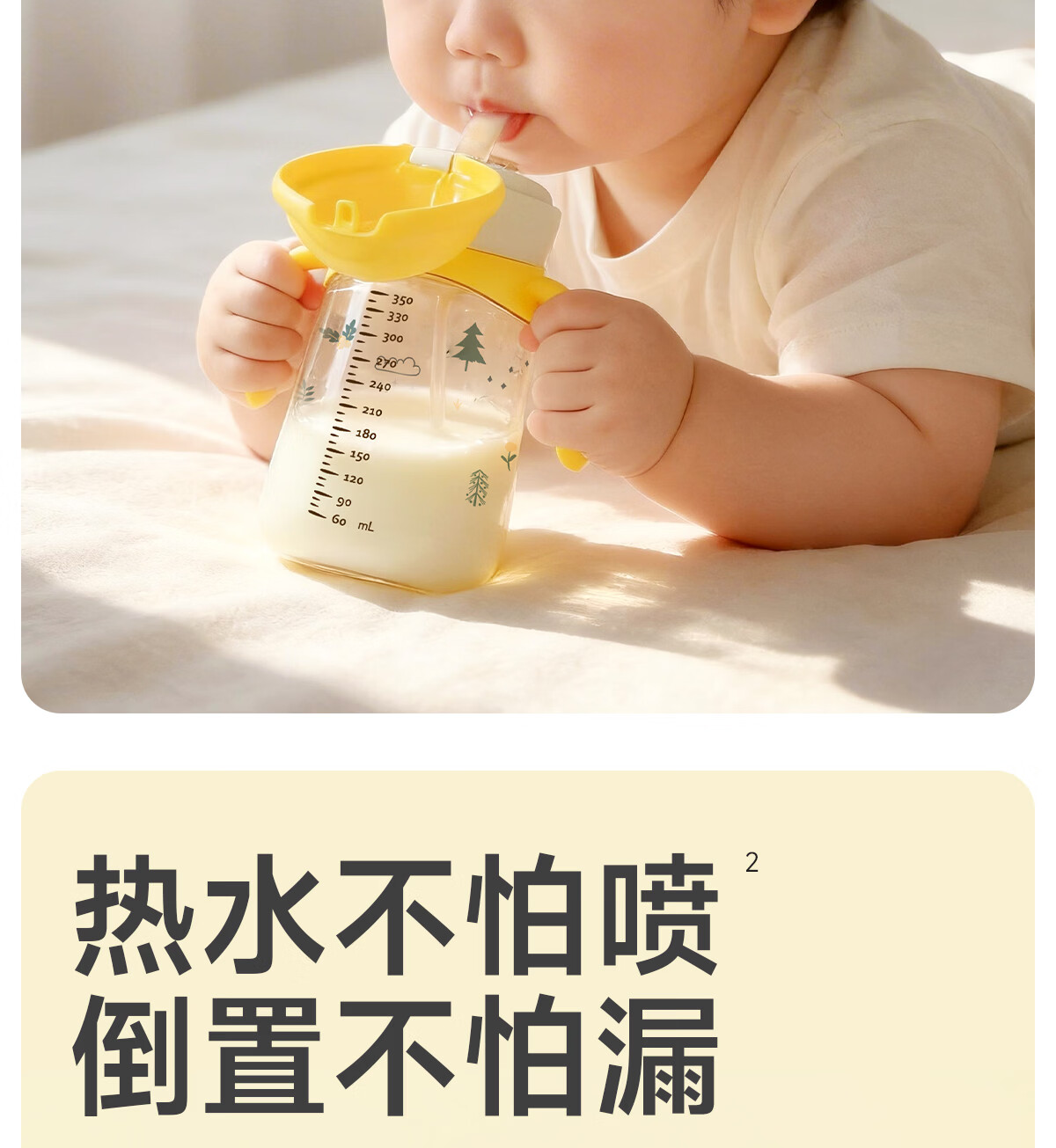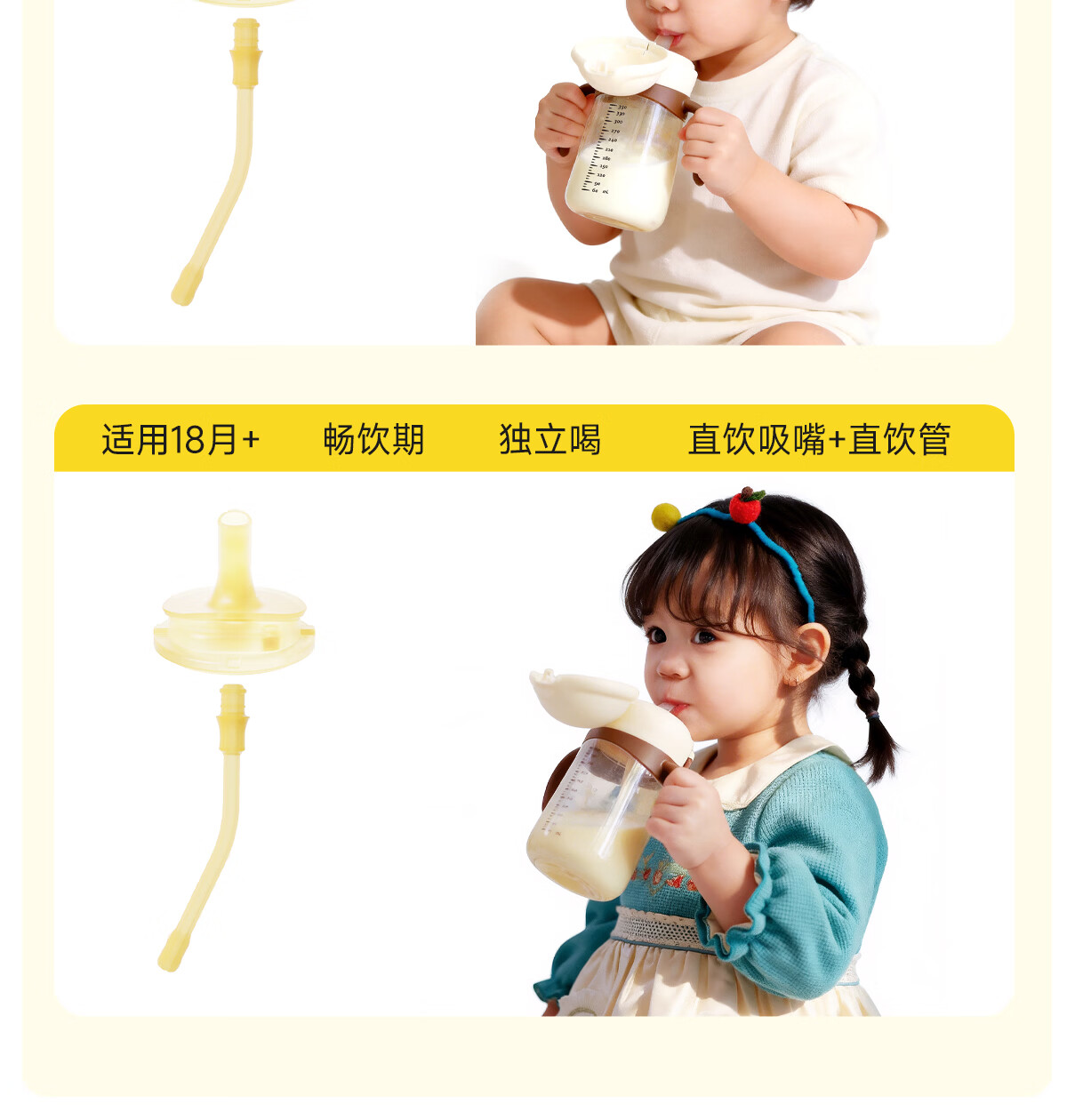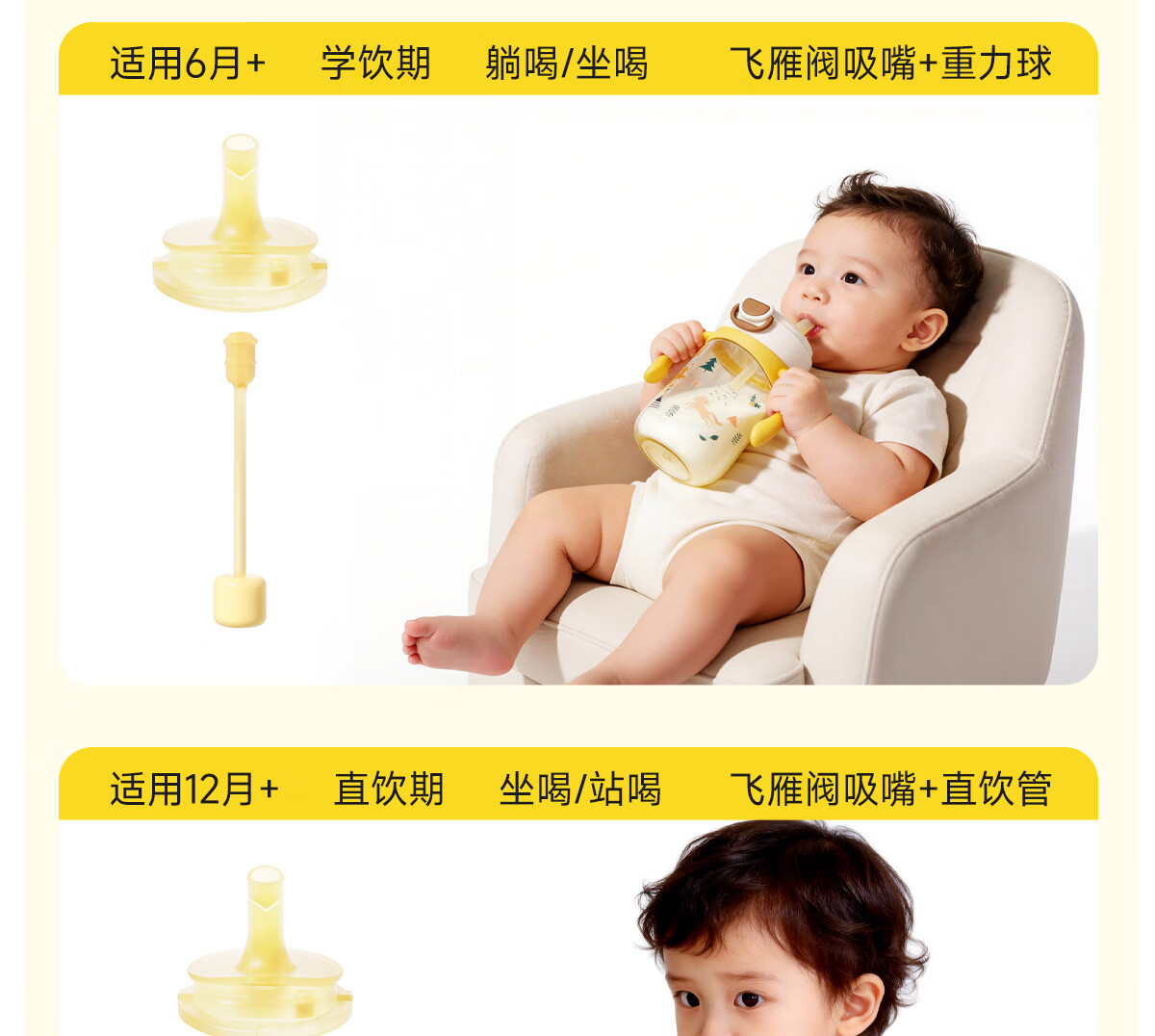NEVS学饮杯6个月一岁以上鸭嘴杯婴儿吸管杯儿童水杯宝宝喝水喝奶瓶 12月+奶格米 350ml (V阀吸嘴+直饮管)