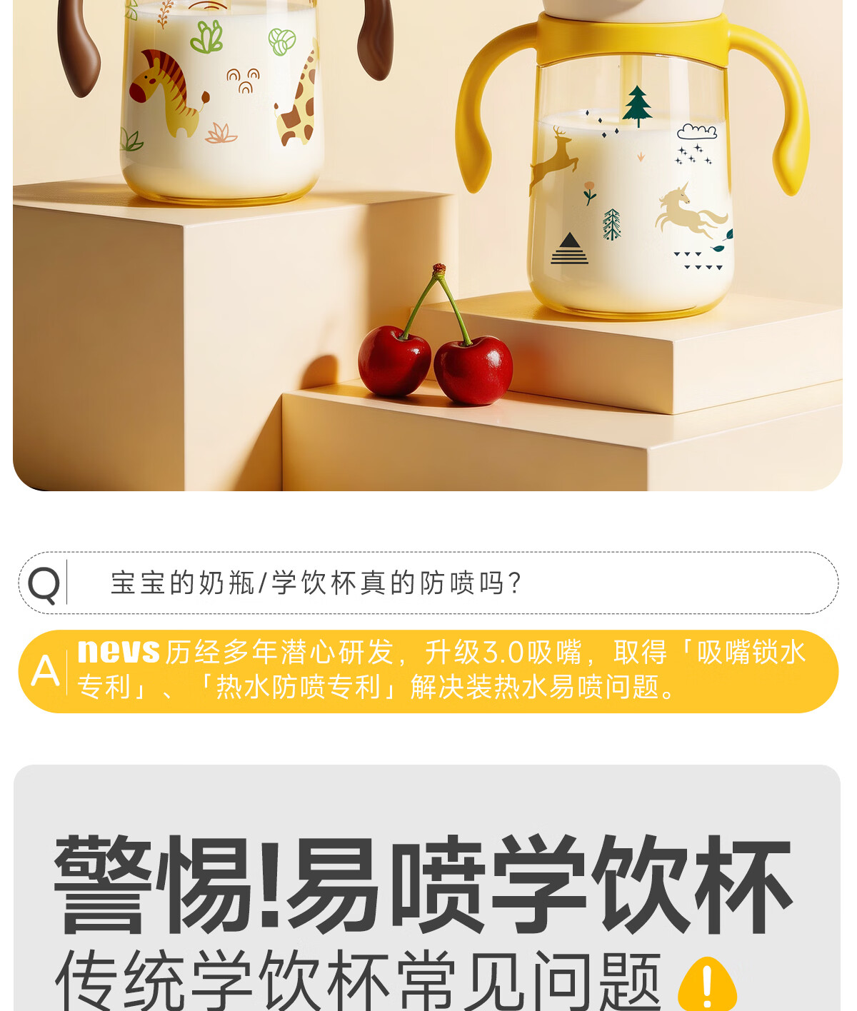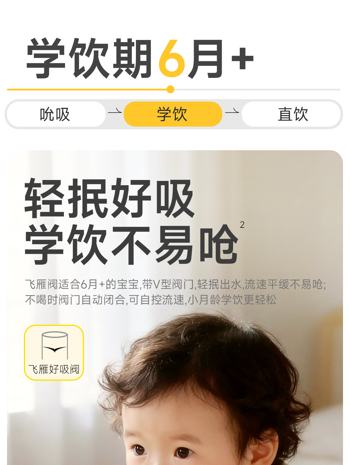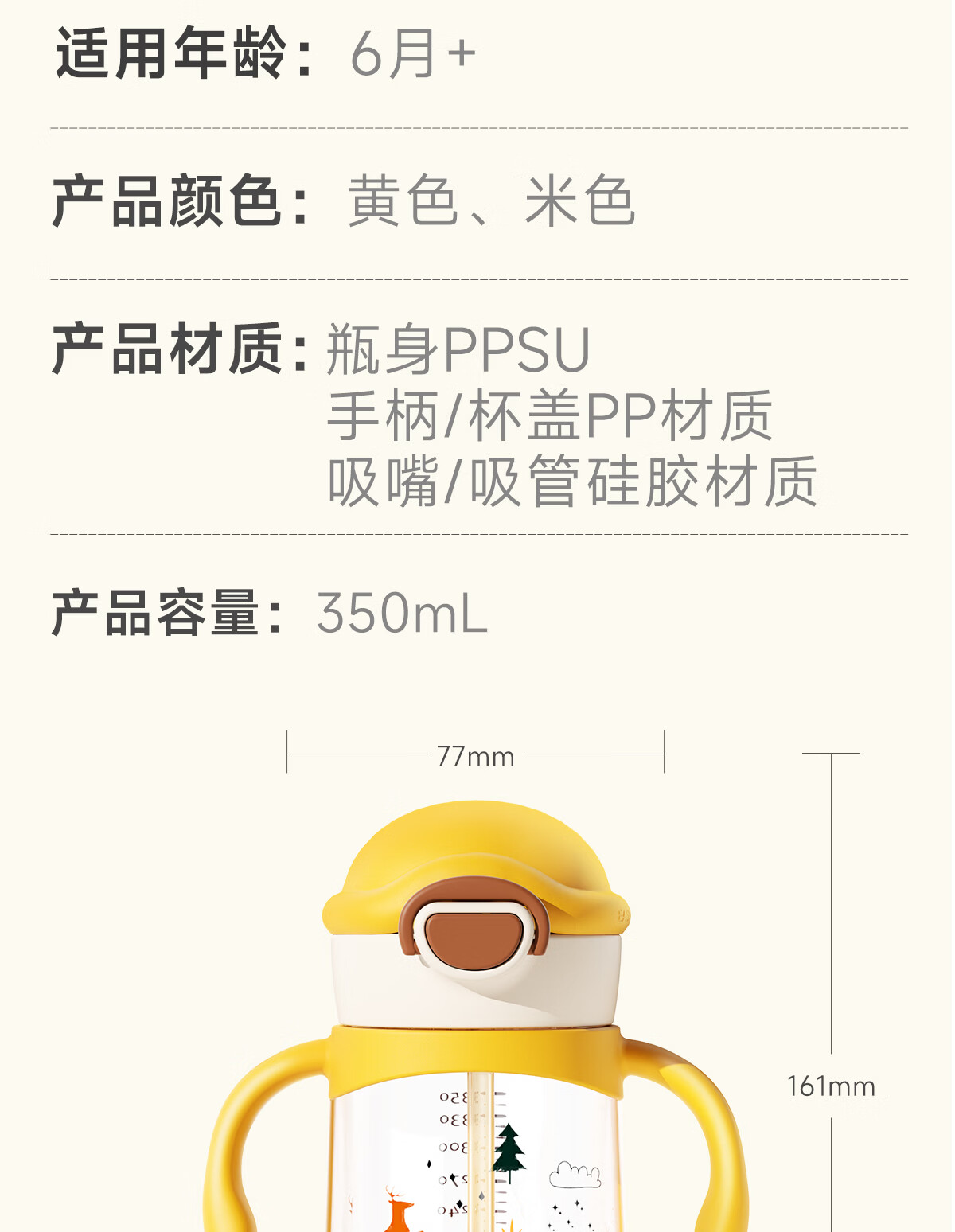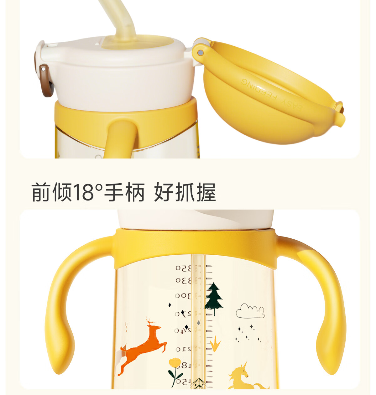 NEVS学饮杯6个月一岁以上鸭嘴杯婴儿吸管杯儿童水杯宝宝喝水喝奶瓶 12月+奶格米 350ml (V阀吸嘴+直饮管)