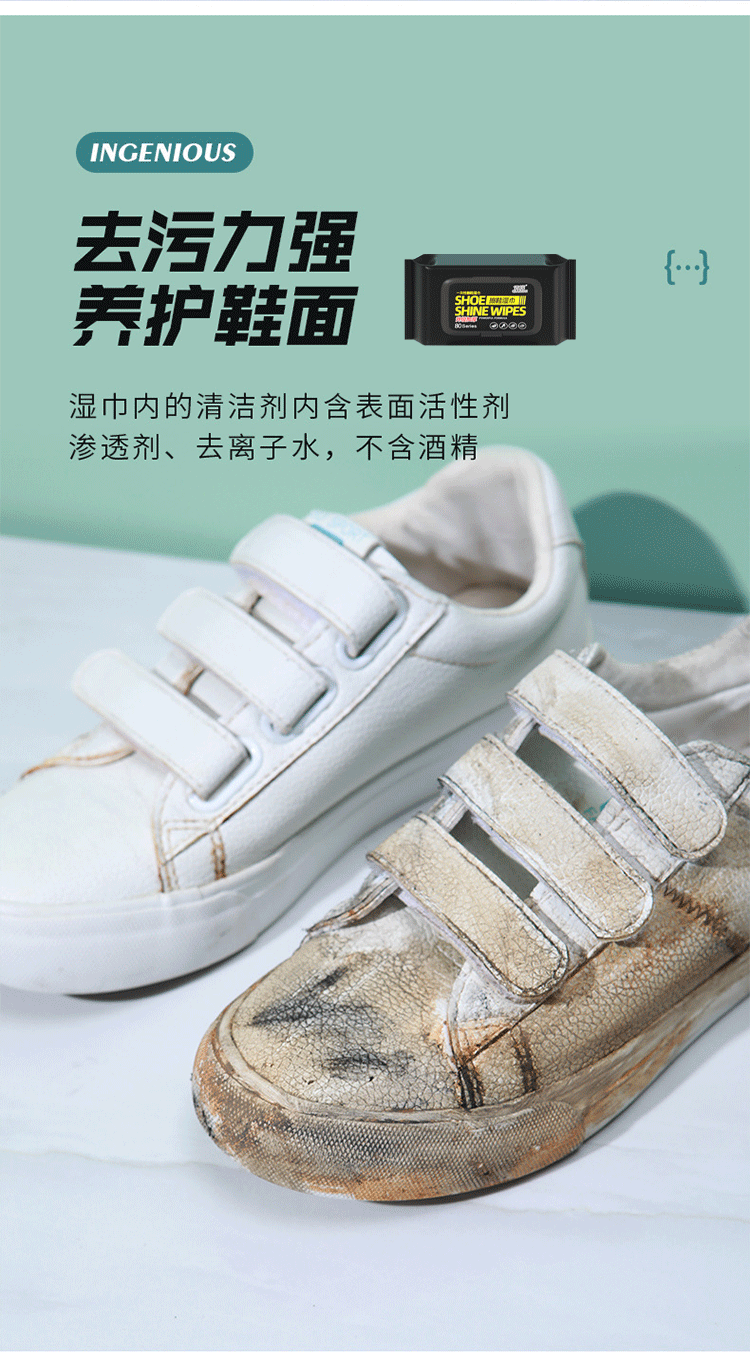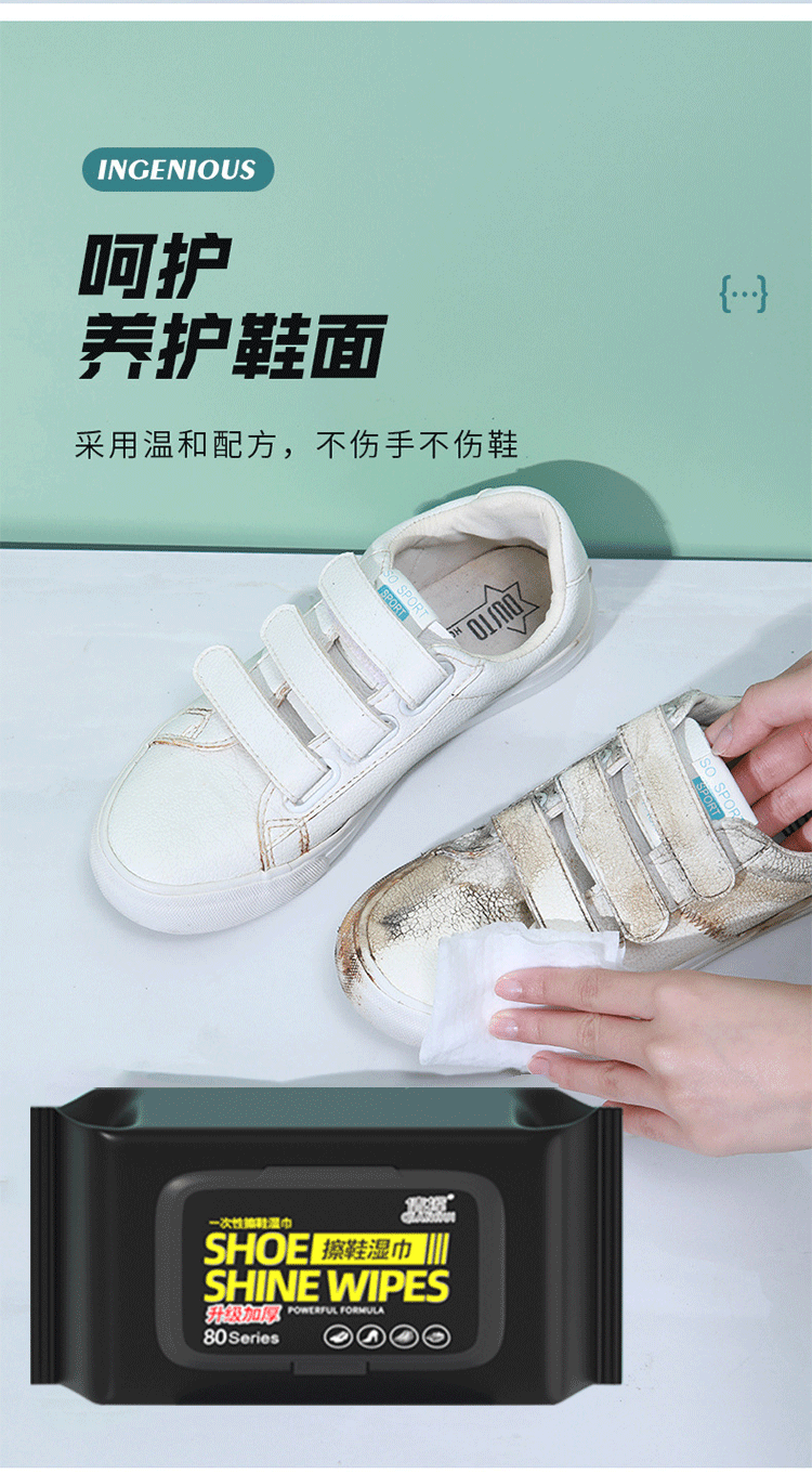 擦鞋湿巾小白鞋清洁剂湿纸巾清洗剂擦鞋神器去污增白去黄洗鞋白鞋 10包