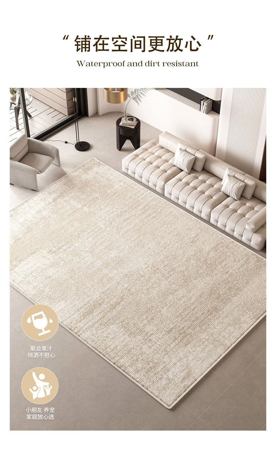Y U-LIVE意式极简地毯客厅2026新款防水轻奢高级免洗可擦沙发卧室床边 S仿羊绒-溪月清影 140×200【精致双线包边】