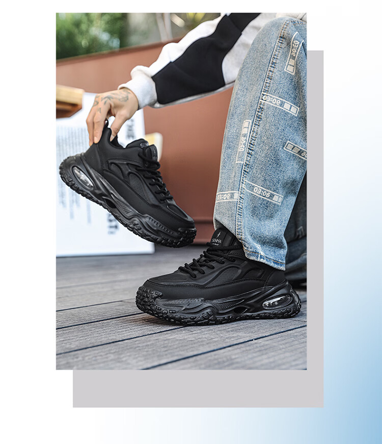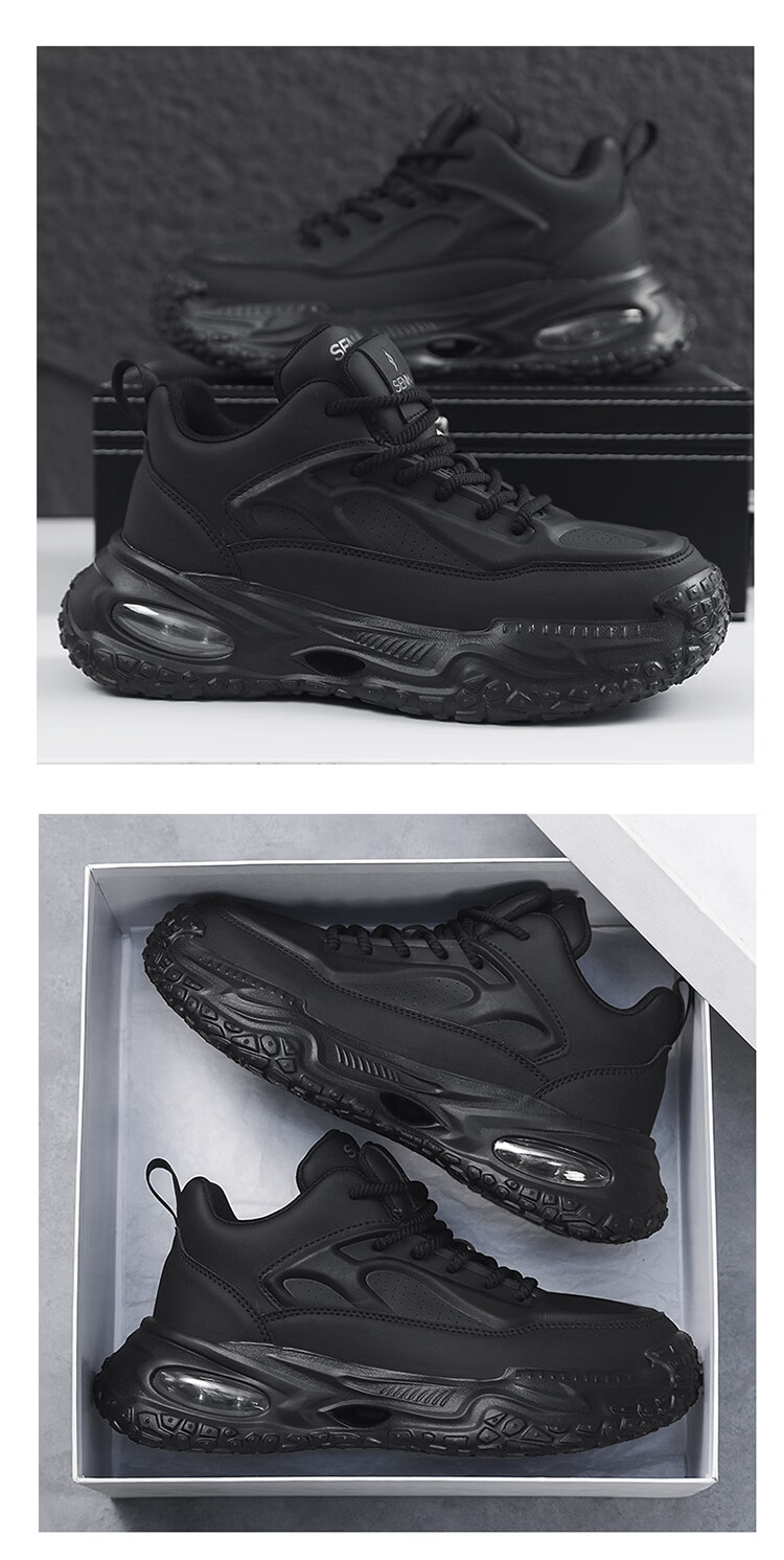 森馬男鞋2026新款春季百搭厚底增高休闲运动跑步鞋男士耐磨防滑老爹鞋 黑色【基础款】 39 标准码数/现货秒发