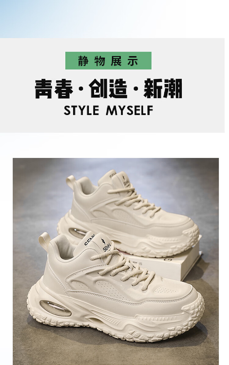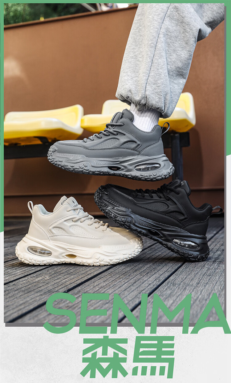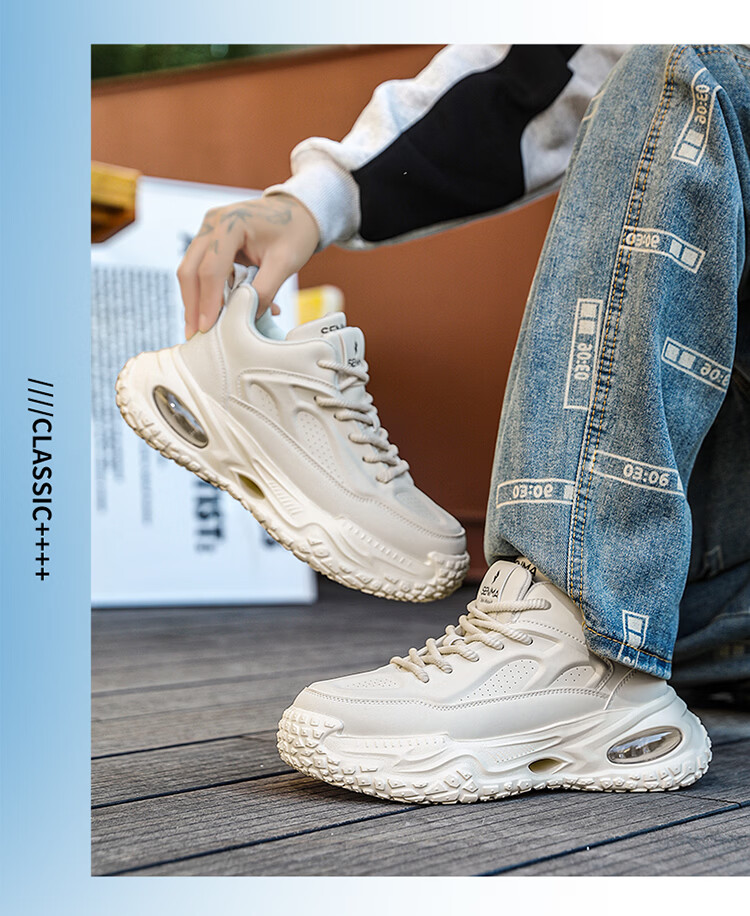 森馬男款2026新款春季潮牌百搭运动厚底防滑跑步休闲低帮时尚老爹潮鞋 米灰【基础款】 39 标准码数/现货秒发
