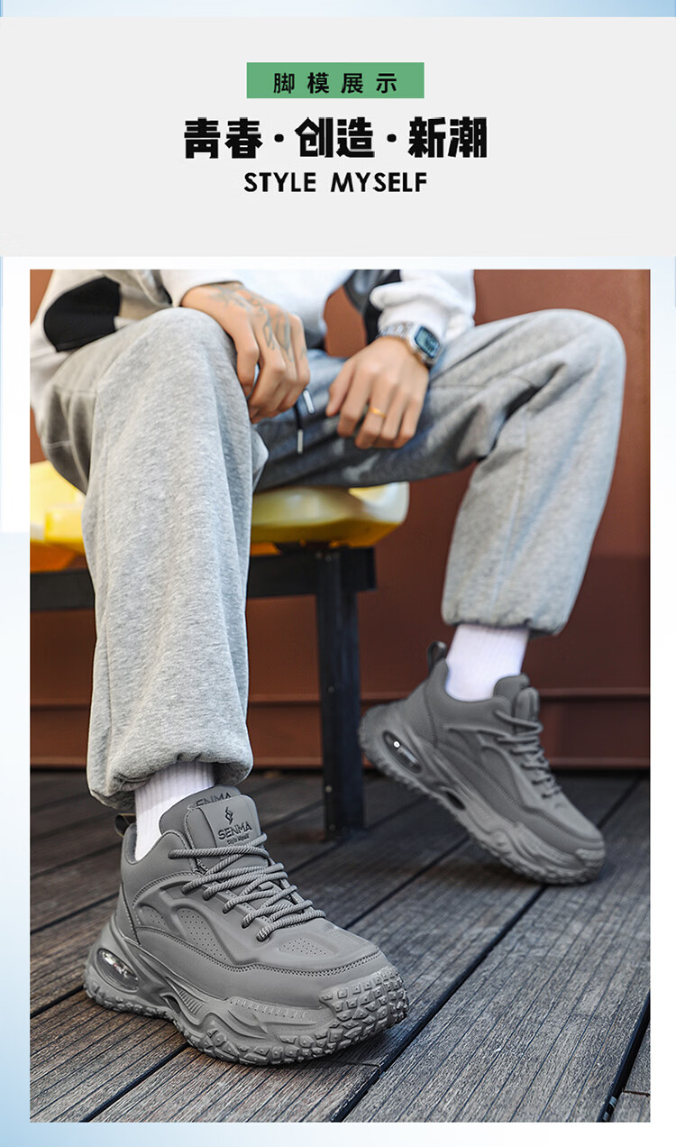 森馬男鞋2026新款春季潮牌高级感休闲百搭老爹鞋男士厚底防滑运动潮鞋 银色【基础款】 39 标准码数/现货秒发