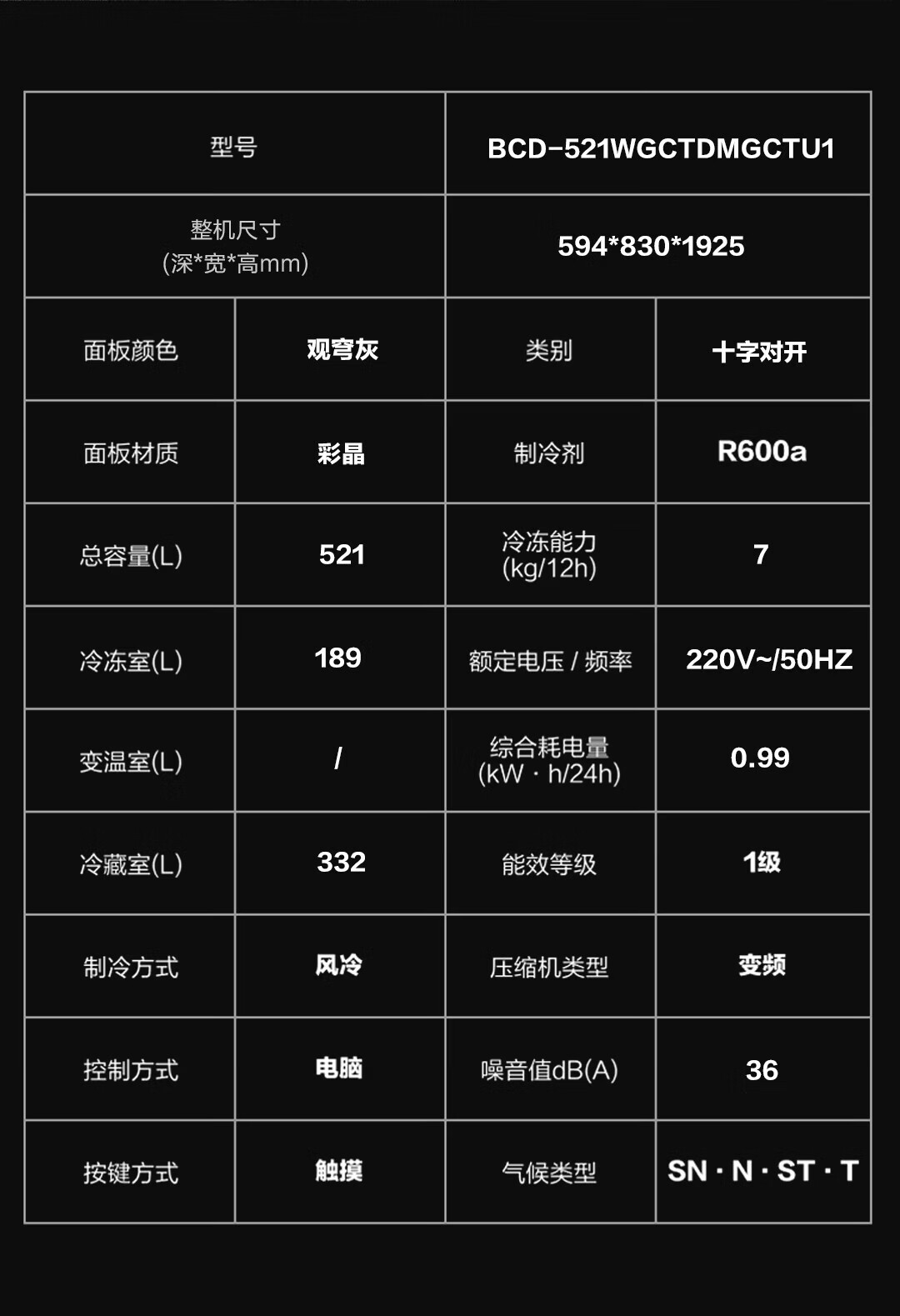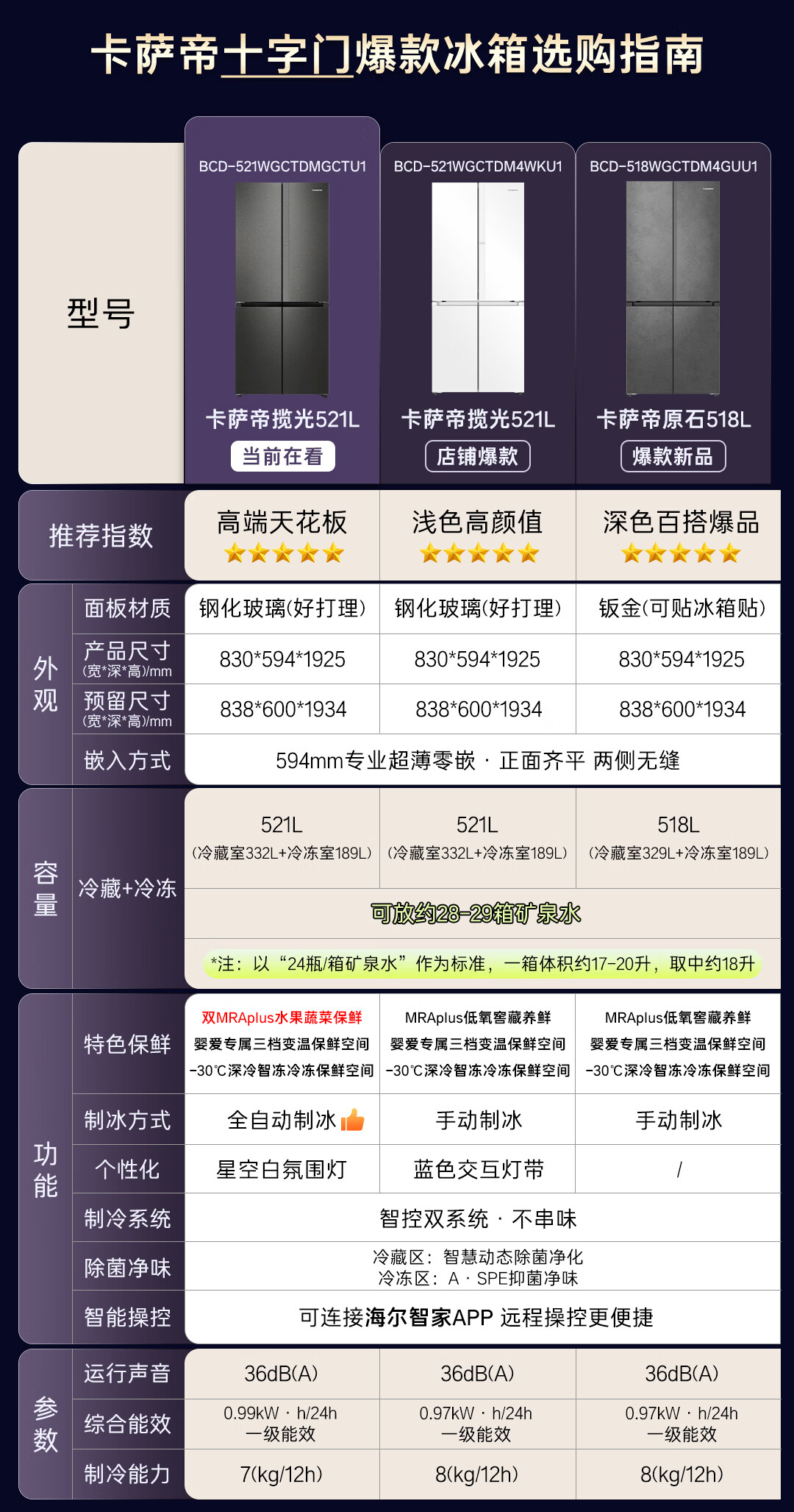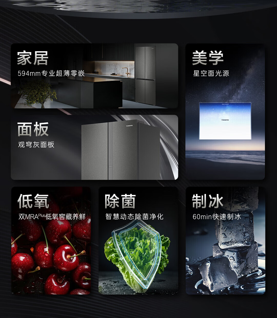 卡萨帝(Casarte)揽光521L十字门冰箱自动制冰594mm超薄零嵌双系统除菌BCD-521WGCTDMGCTU1国家补贴