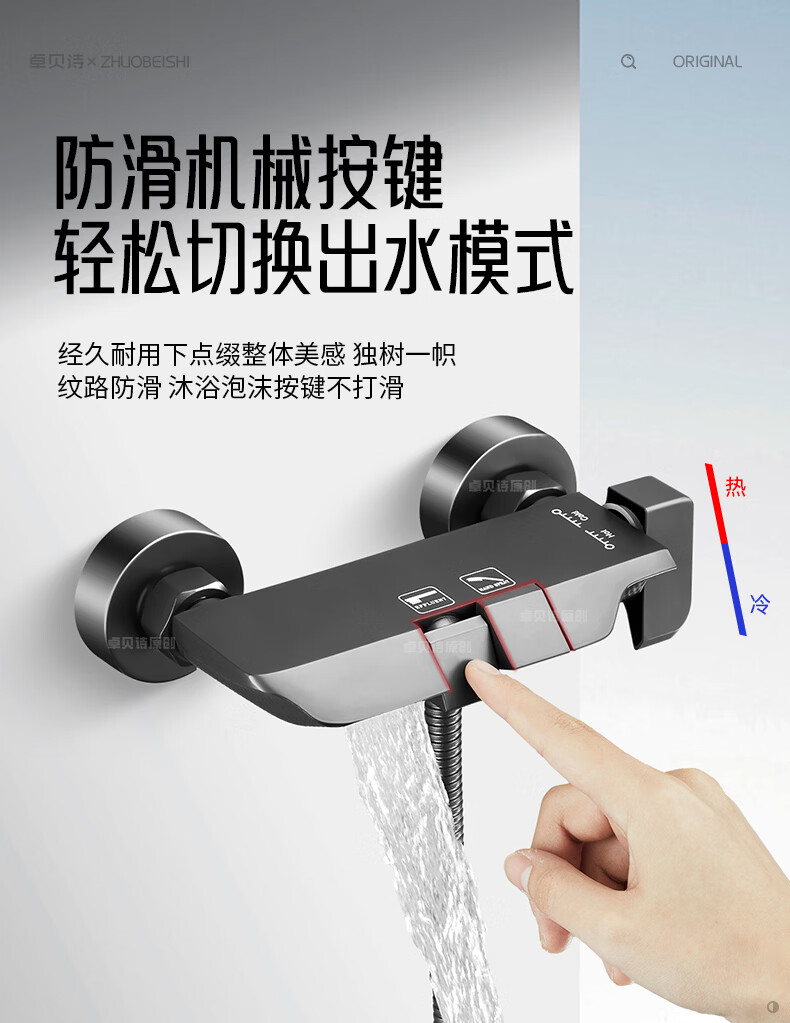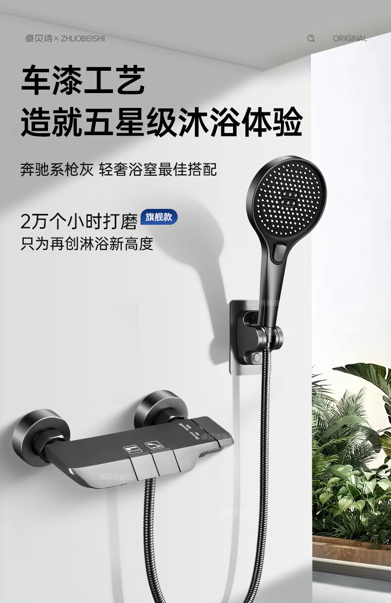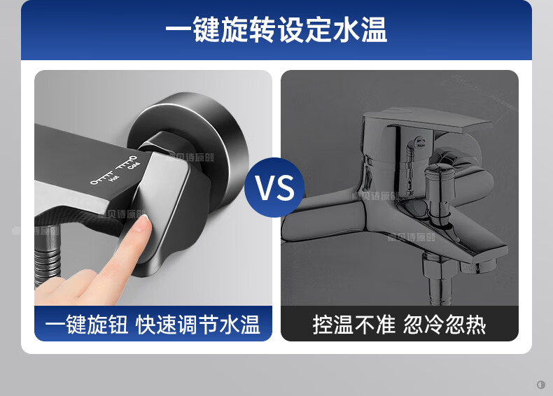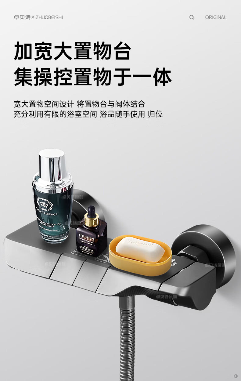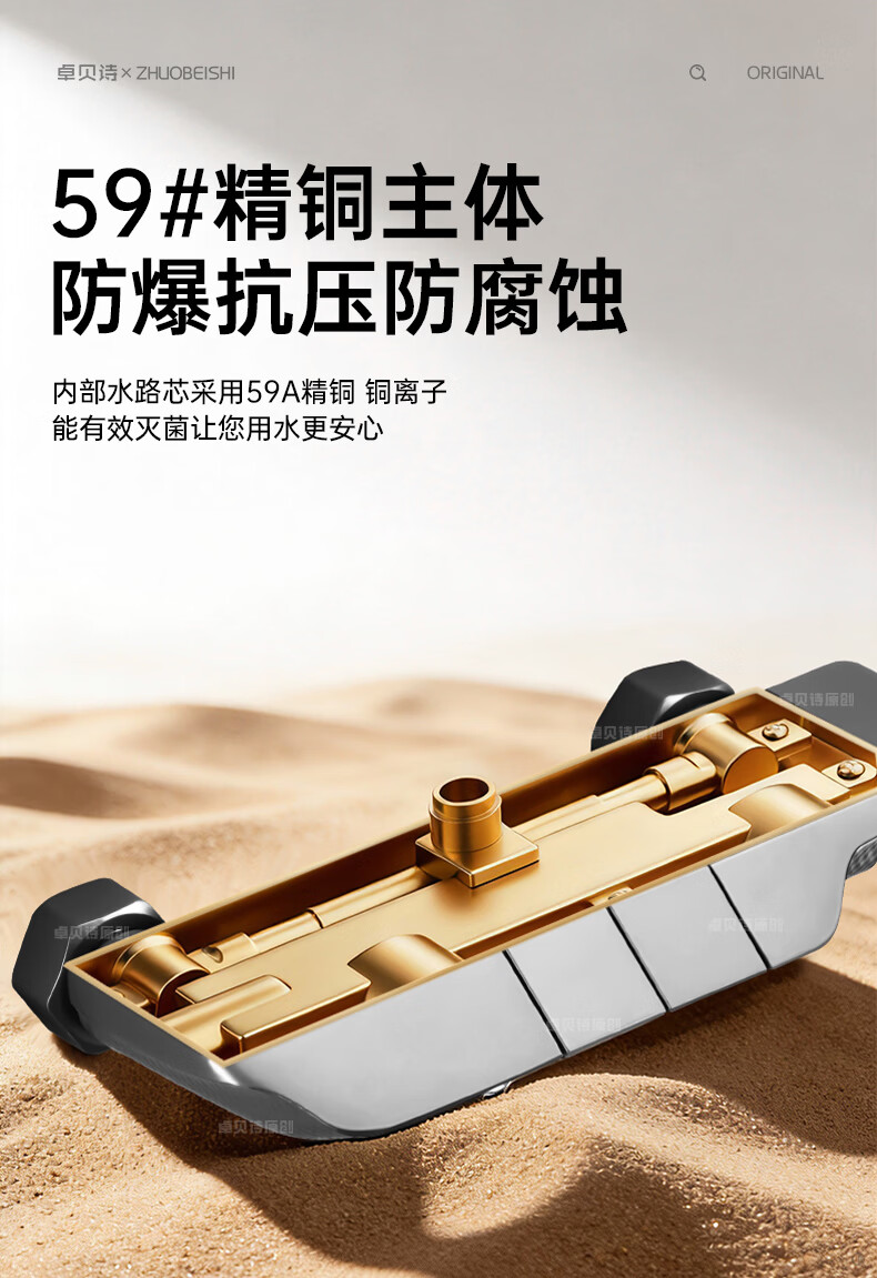 卓贝诗德国淋浴花洒套装一体精铜钢琴键无顶喷简易浴室增压花洒喷头全套 精准控温防烫【两档方形】简易套装