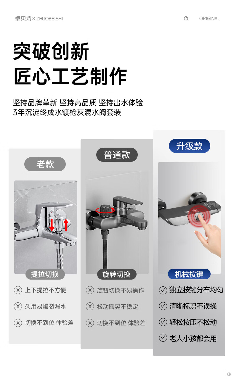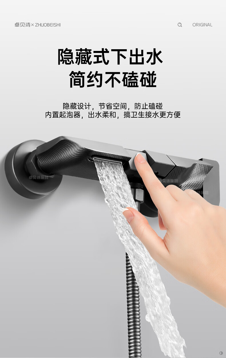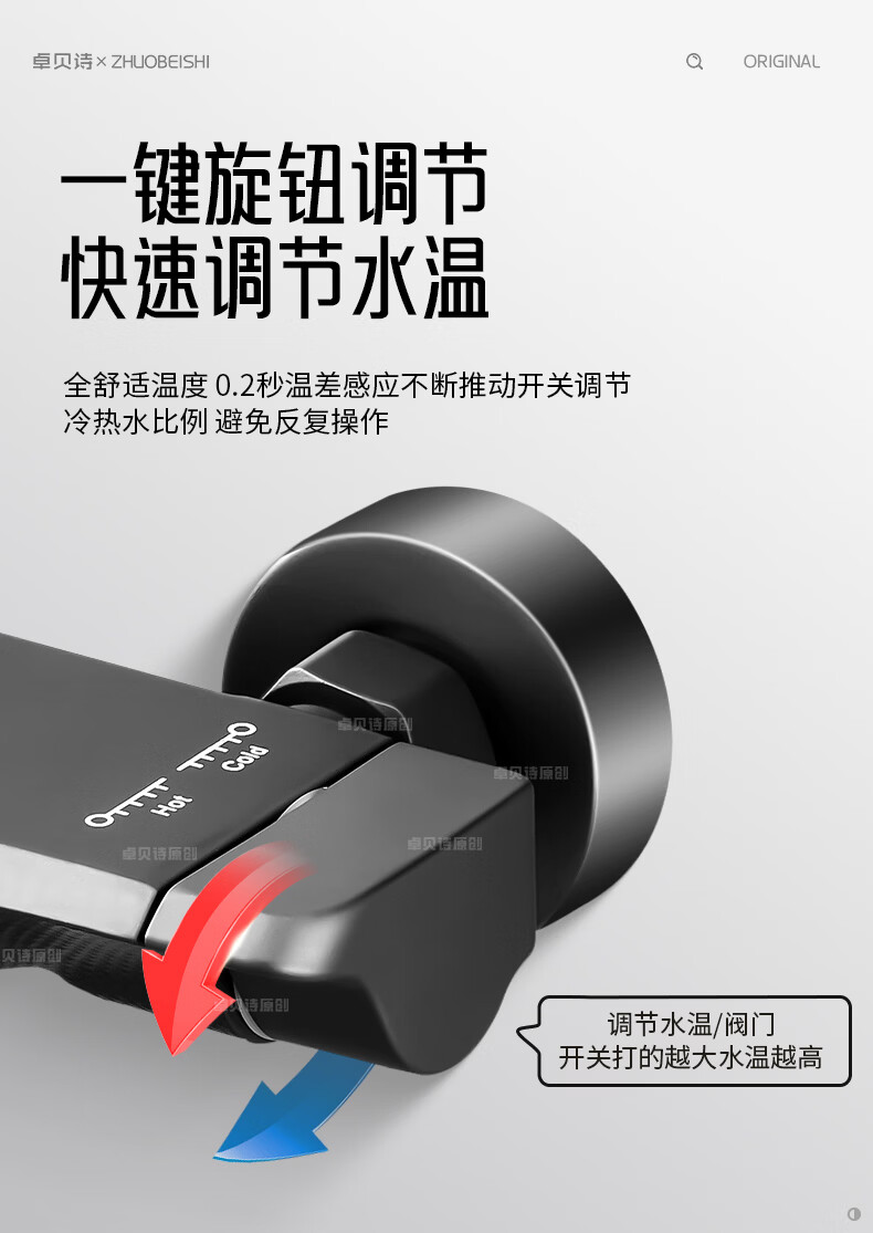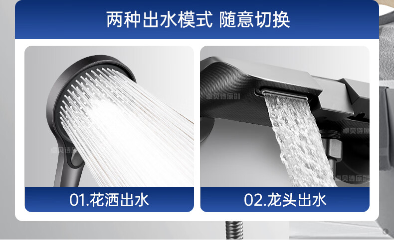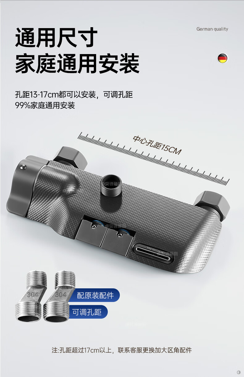 卓贝诗德国淋浴花洒套装一体精铜钢琴键无顶喷简易浴室增压花洒喷头全套 精准控温防烫【两档方形】简易套装