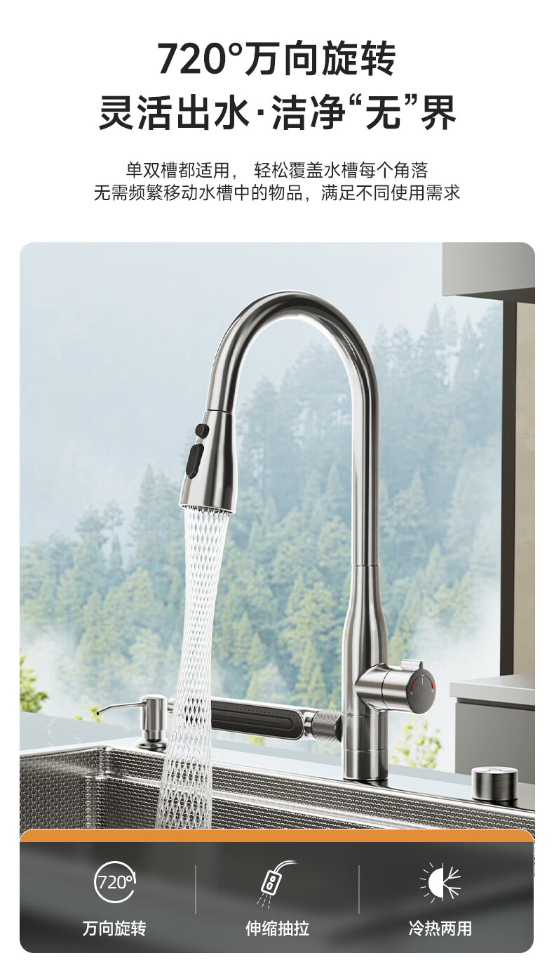 箭牌304不锈钢冷热水龙头可旋转抽拉龙头厨房抽拉式【焕新补贴15%】