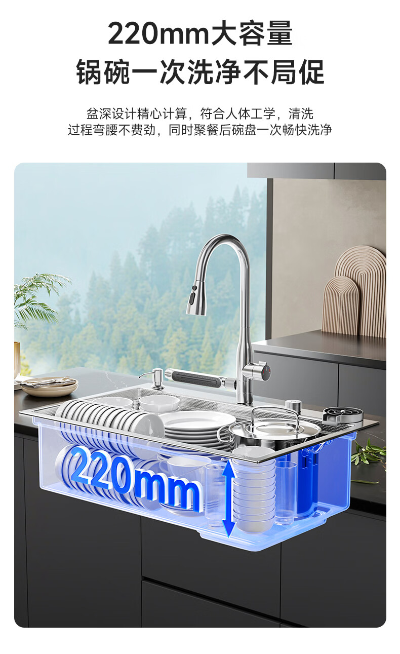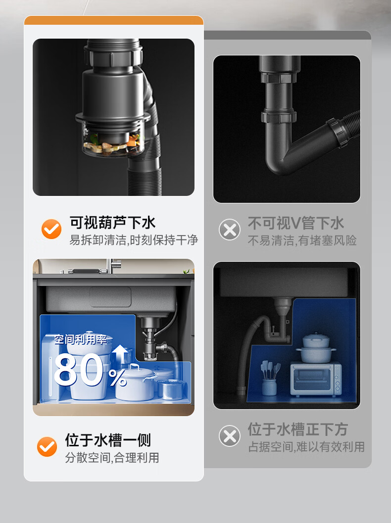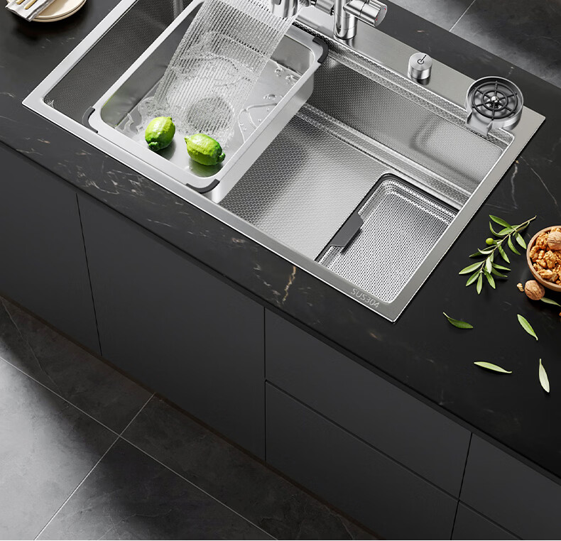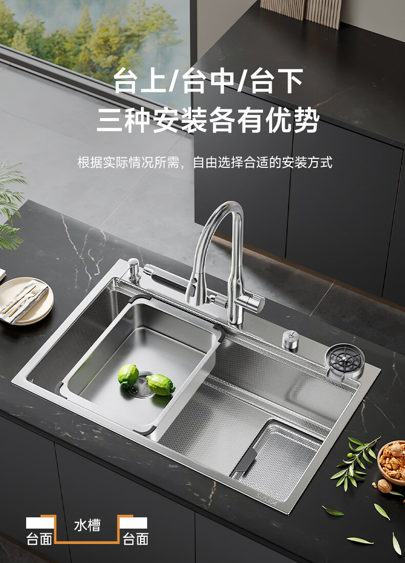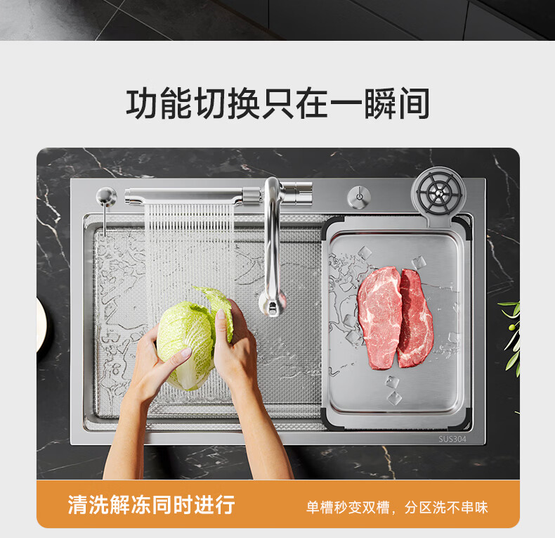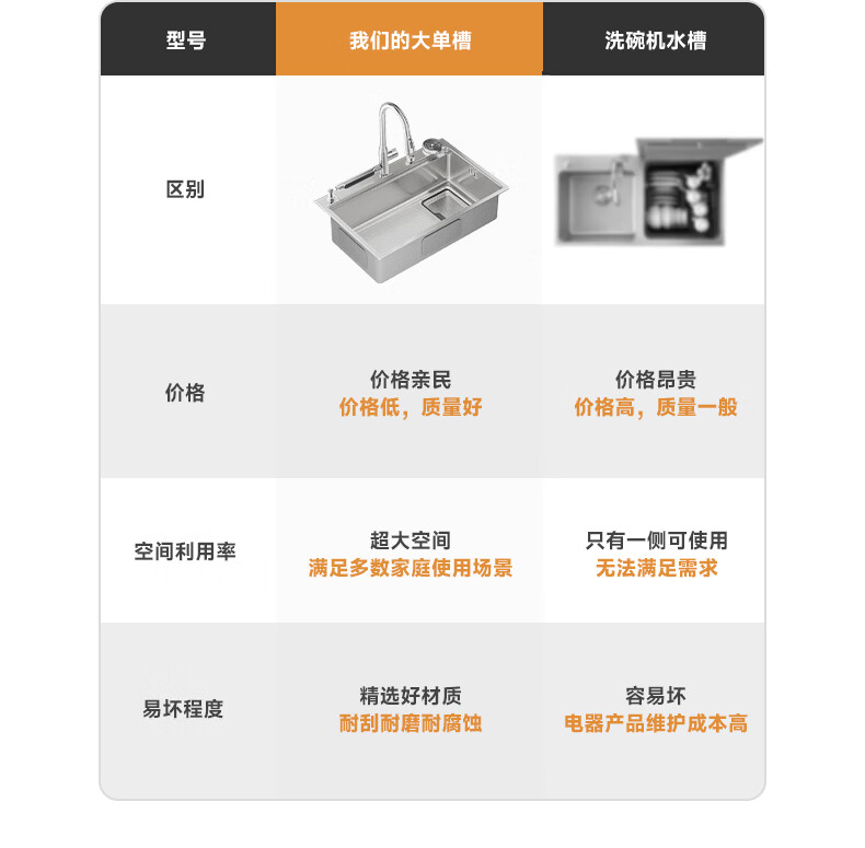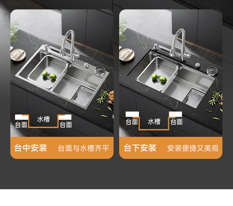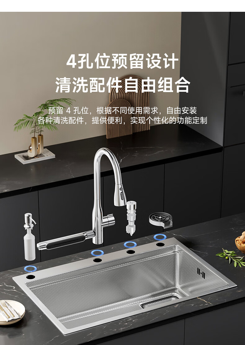 NOEO洗碗机改大单槽 厨房304不锈钢洗菜盆一体盆加宽洗碗水池台上下盆 75x48 | 基础套餐-不含龙头