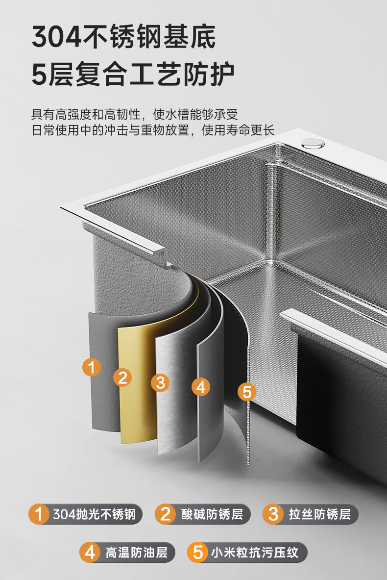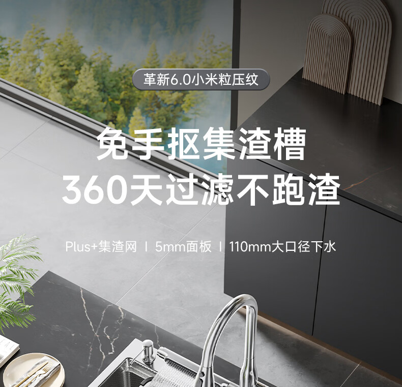 箭牌聚宝盆侧排洗菜盆水槽大单槽厨房304不锈钢纳米灰【焕新补贴15%】