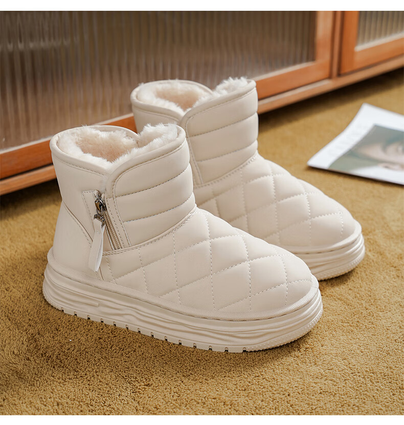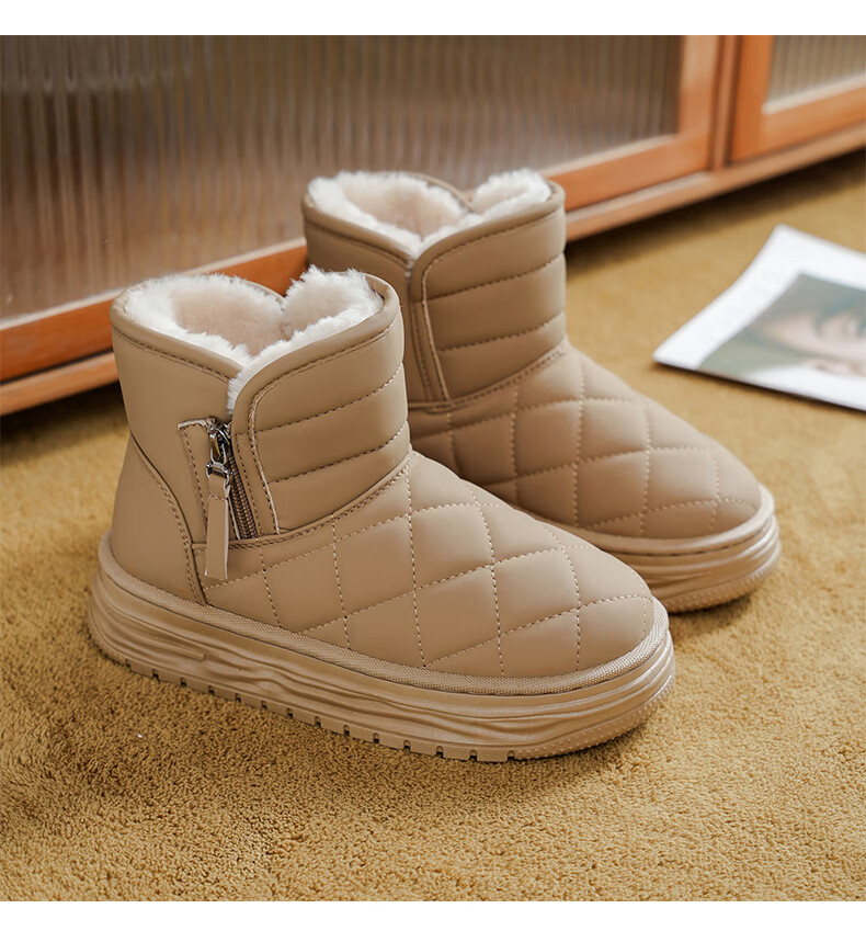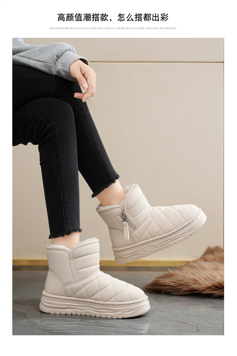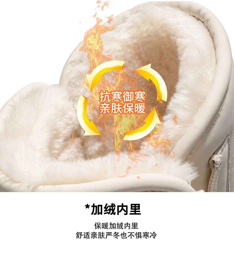 稻草人(MEXICAN)皮毛一体雪地靴女2026新款冬季加绒加厚棉靴哈尔滨防滑防水大棉鞋 米色【旗舰版保暖舒适】 35