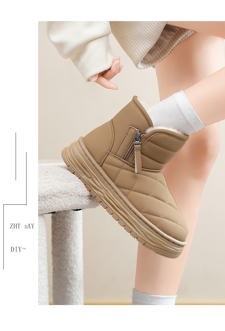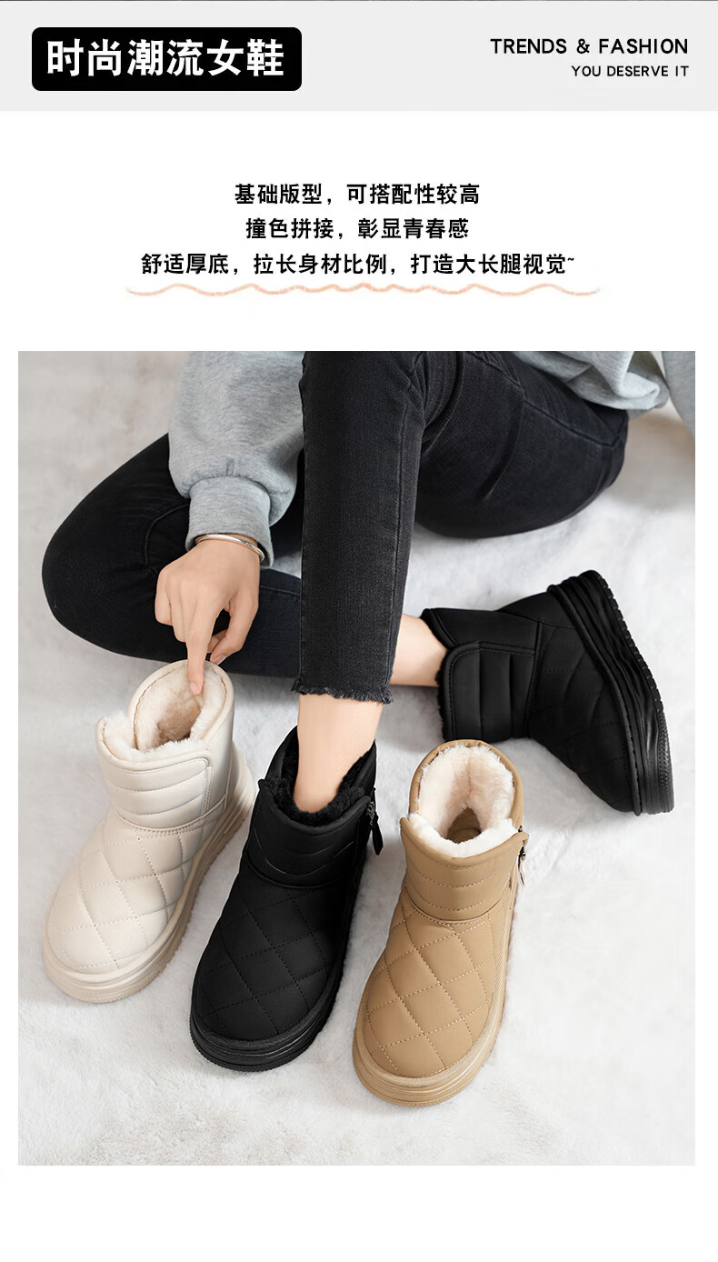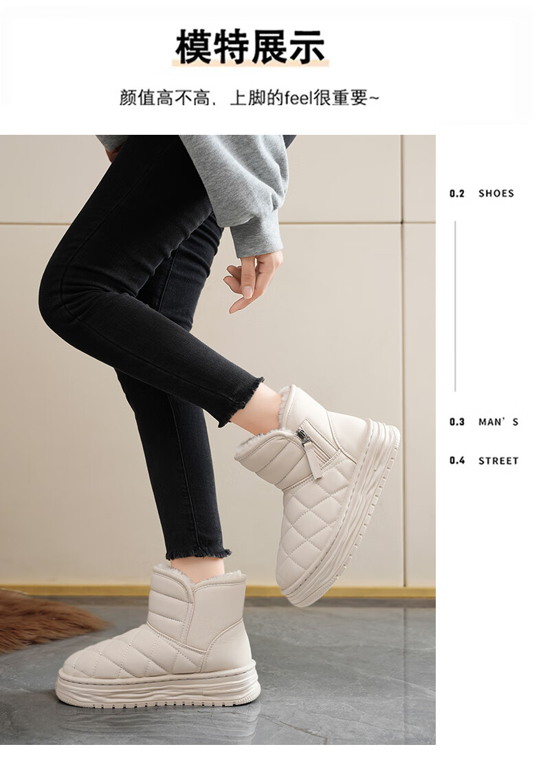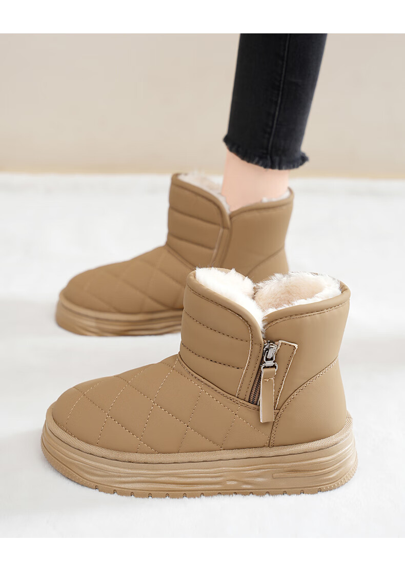 稻草人(MEXICAN)皮毛一体雪地靴女2026新款冬季加绒加厚棉靴哈尔滨防滑防水大棉鞋 米色【旗舰版保暖舒适】 35