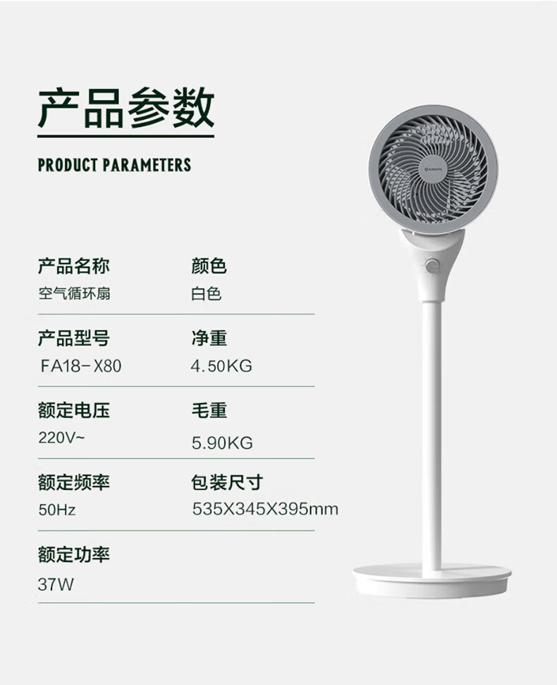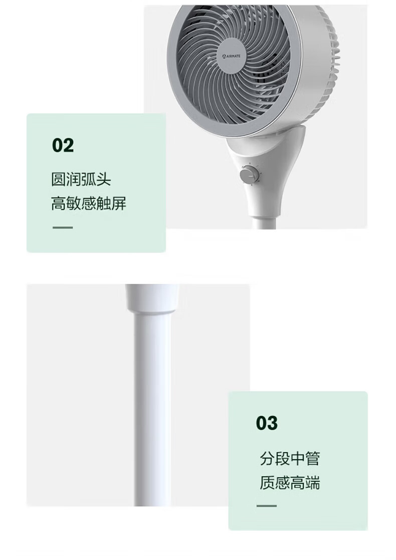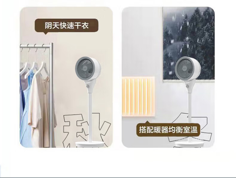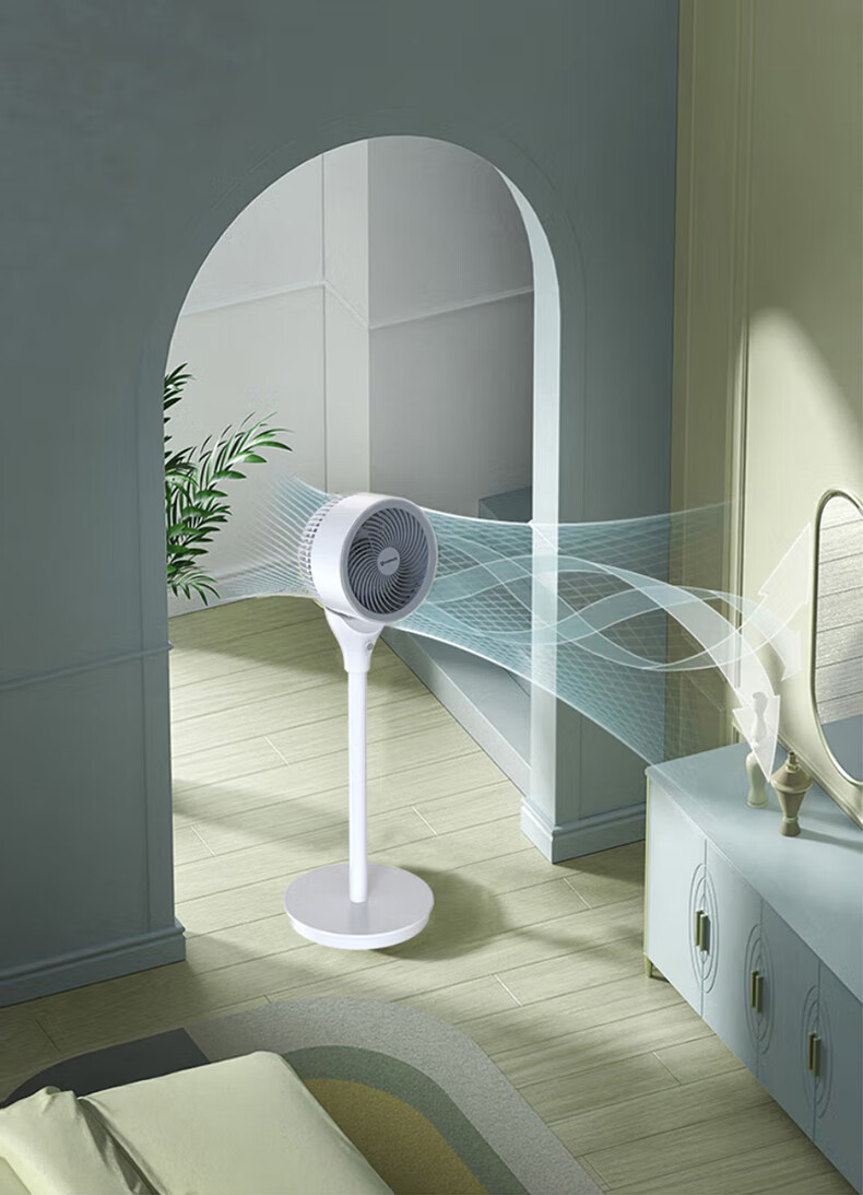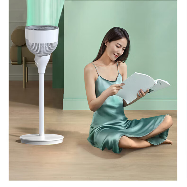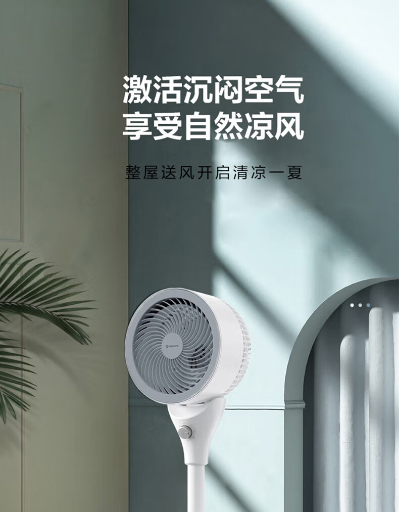 艾美特风扇家用立式循环扇摇头落地空气循环扇大风力电风扇卧式客厅办公电扇 【D款】白色遥控款-机头加大