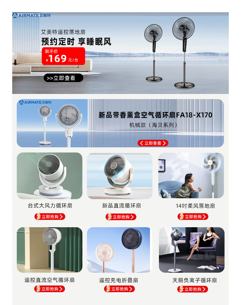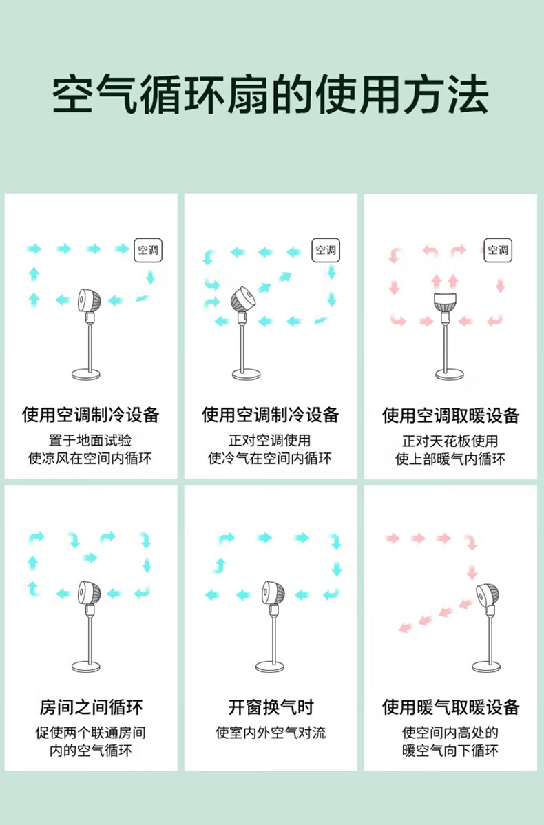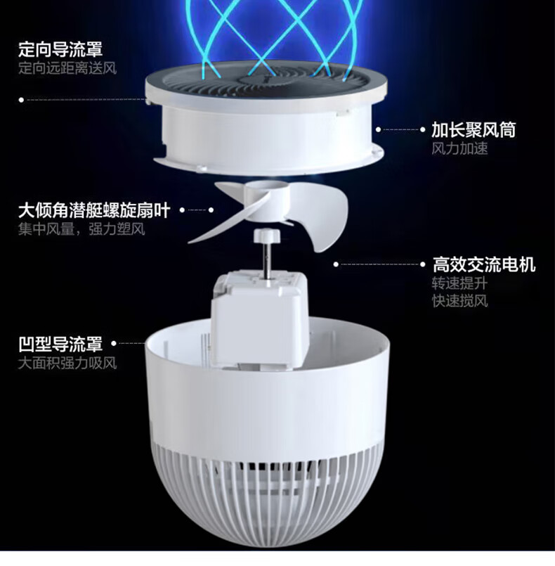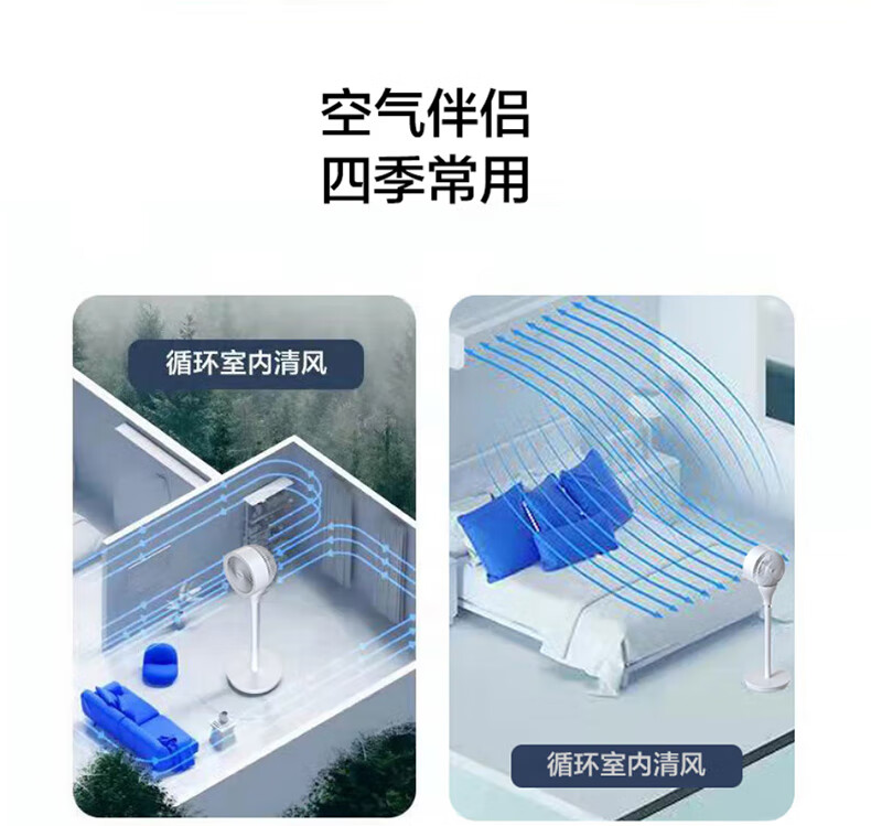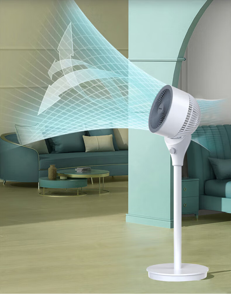 艾美特风扇家用立式循环扇摇头落地空气循环扇大风力电风扇卧式客厅办公电扇 【D款】白色遥控款-机头加大