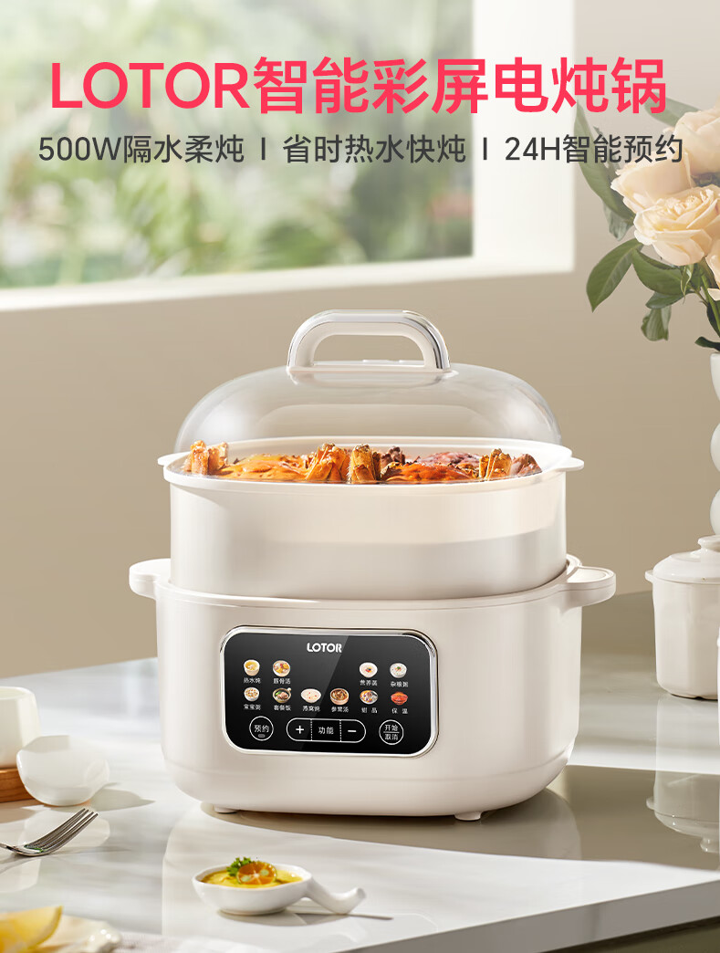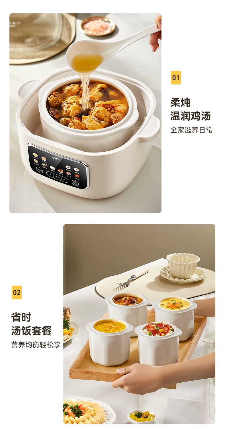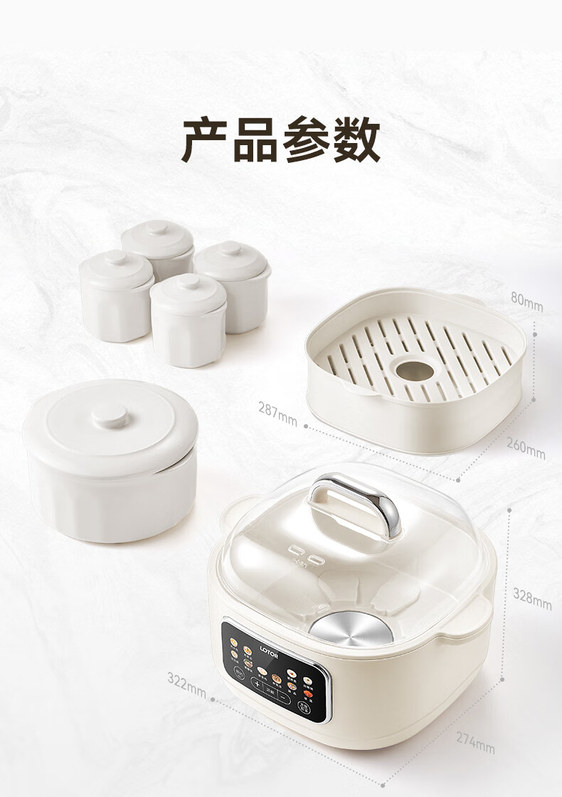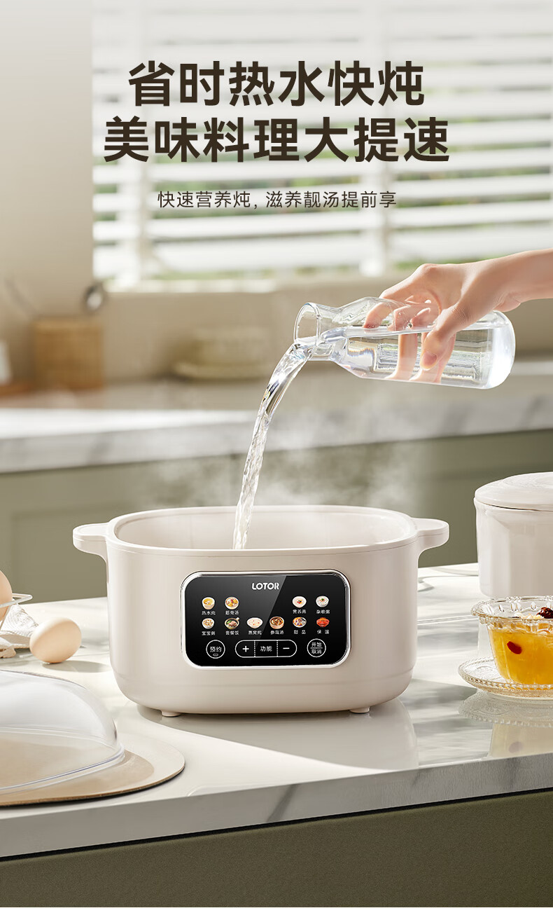 LOTOR徕多电炖锅电炖盅家用全自动炖汤盅3-4人用燕窝炖盅隔水大容量炖锅白瓷煲汤锅电砂锅辅食煮粥神器 白色 4.5L 一锅五胆款