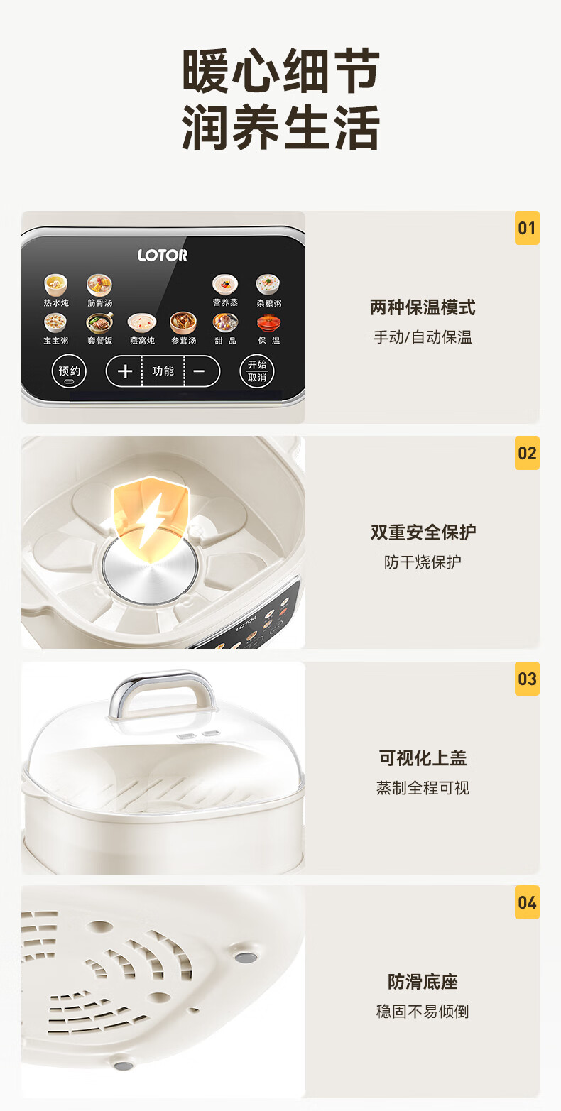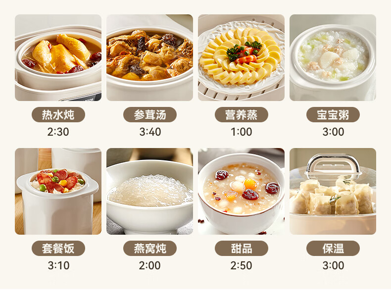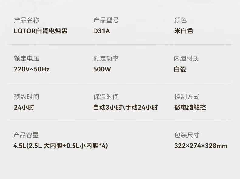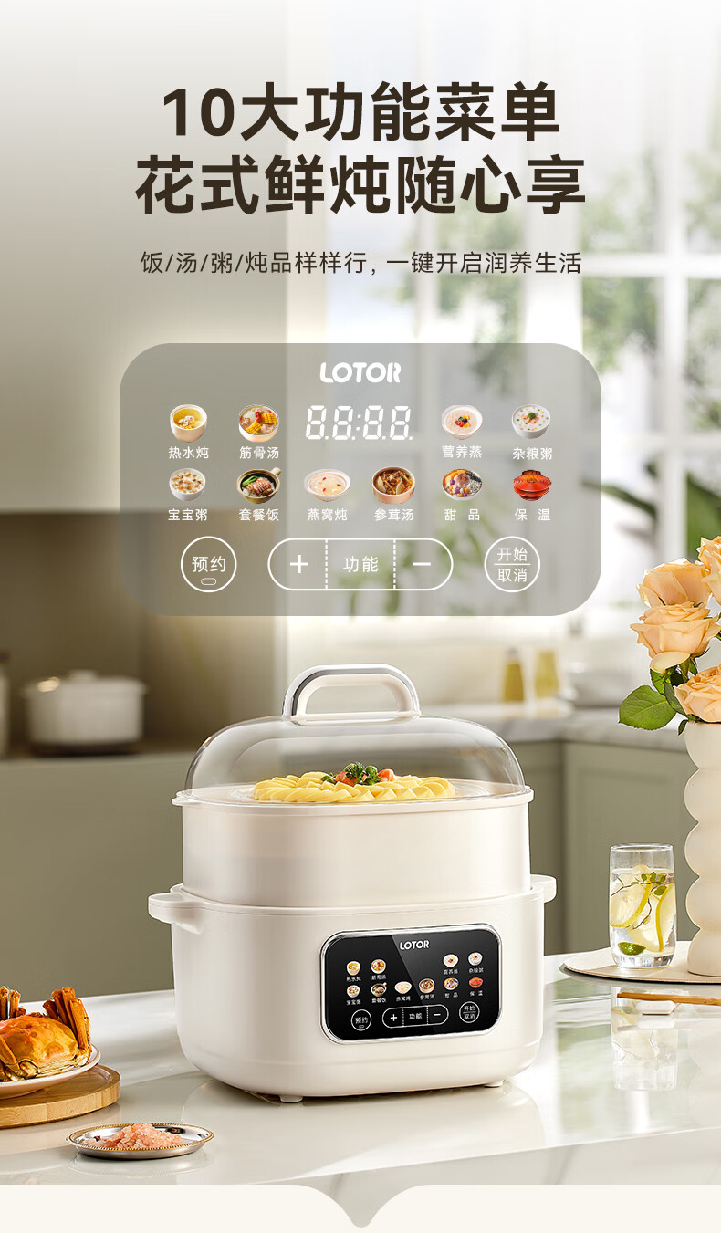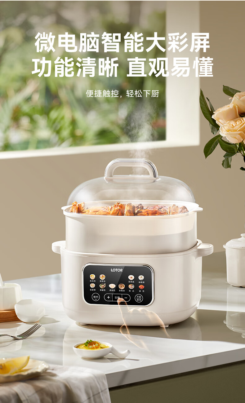 LOTOR徕多电炖锅电炖盅家用全自动炖汤盅3-4人用燕窝炖盅隔水大容量炖锅白瓷煲汤锅电砂锅辅食煮粥神器 白色 4.5L 一锅五胆款