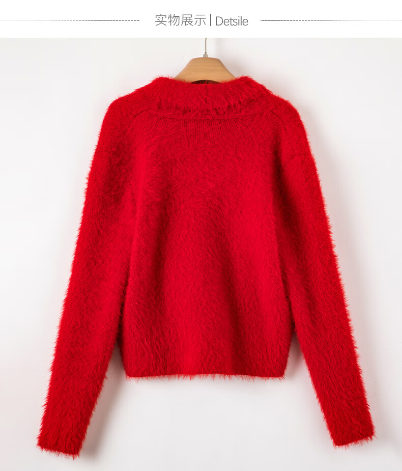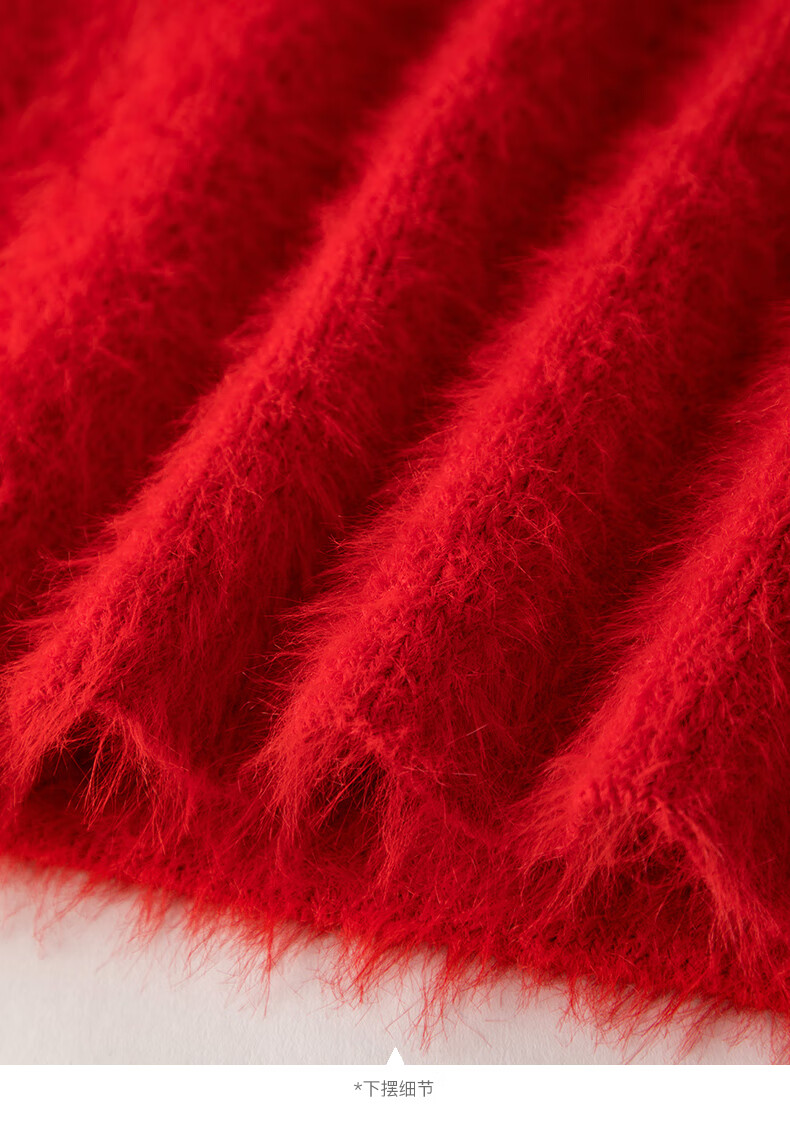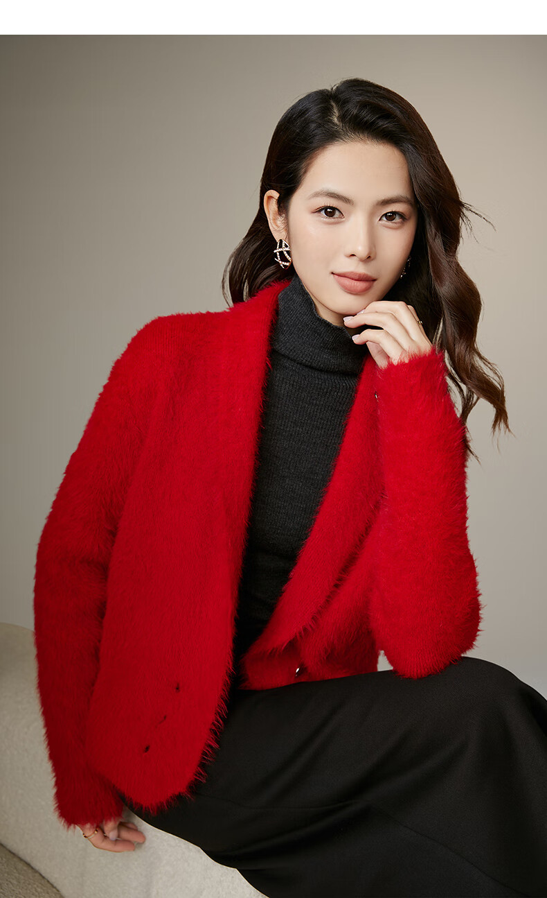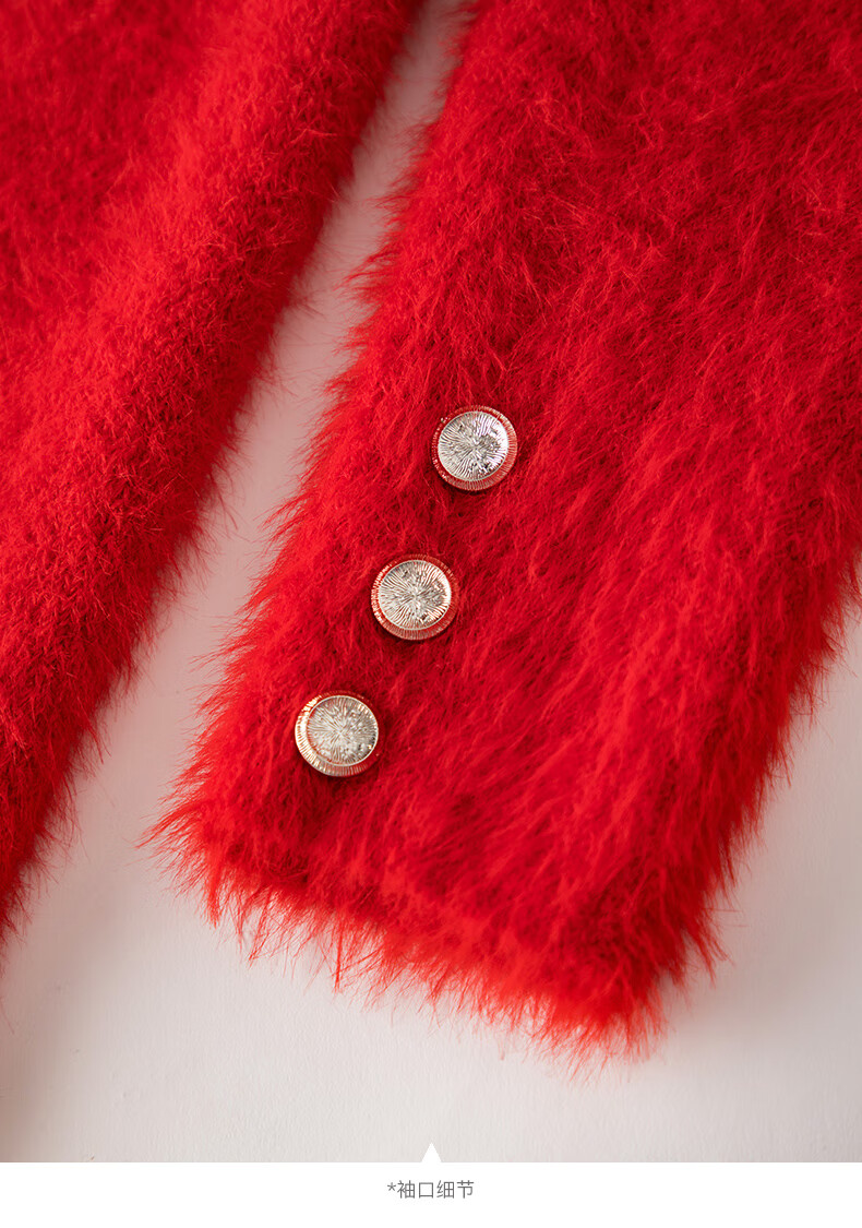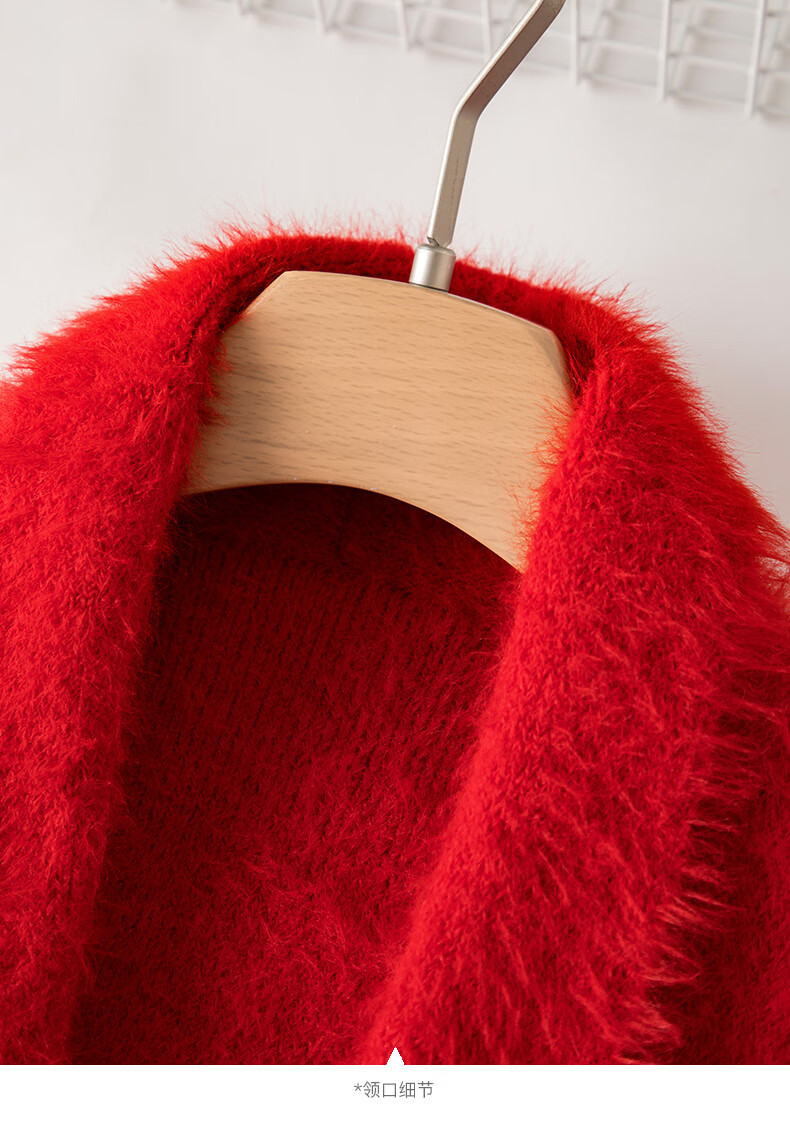 晚白【断码清仓】新年骐骥红毛衣舒适毛茸茸针织开衫外套女 红色 M