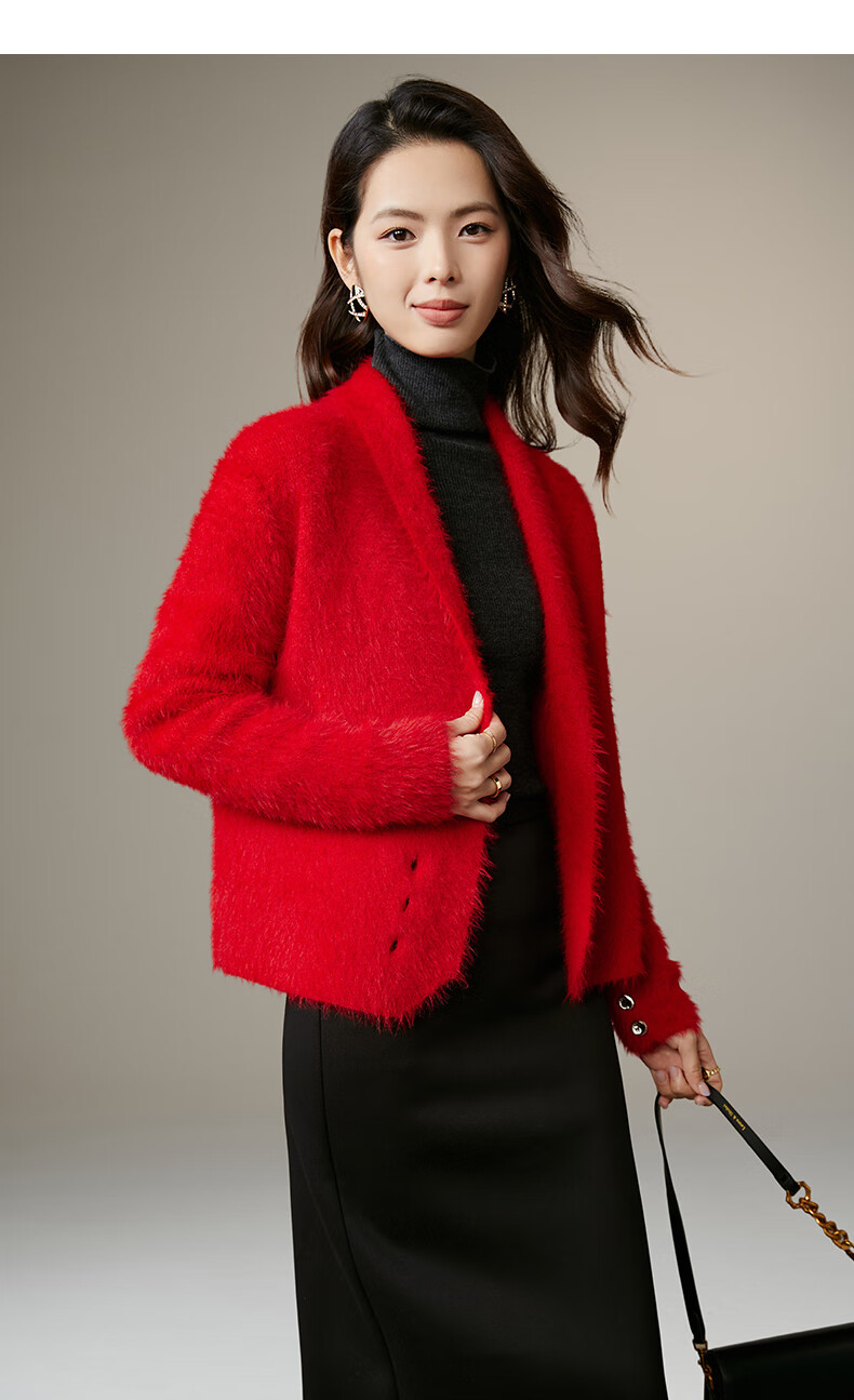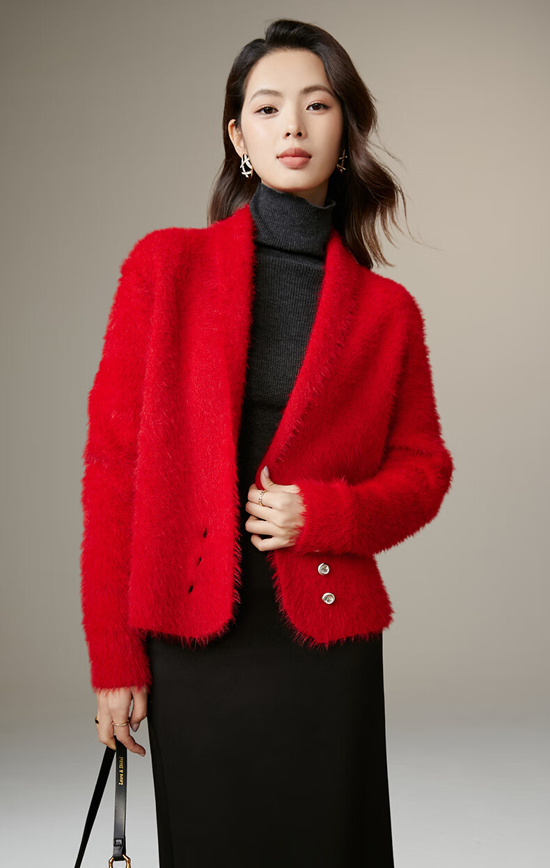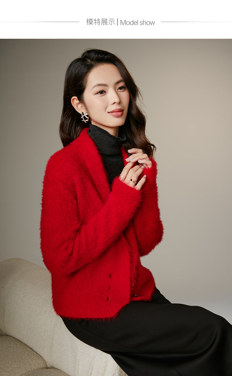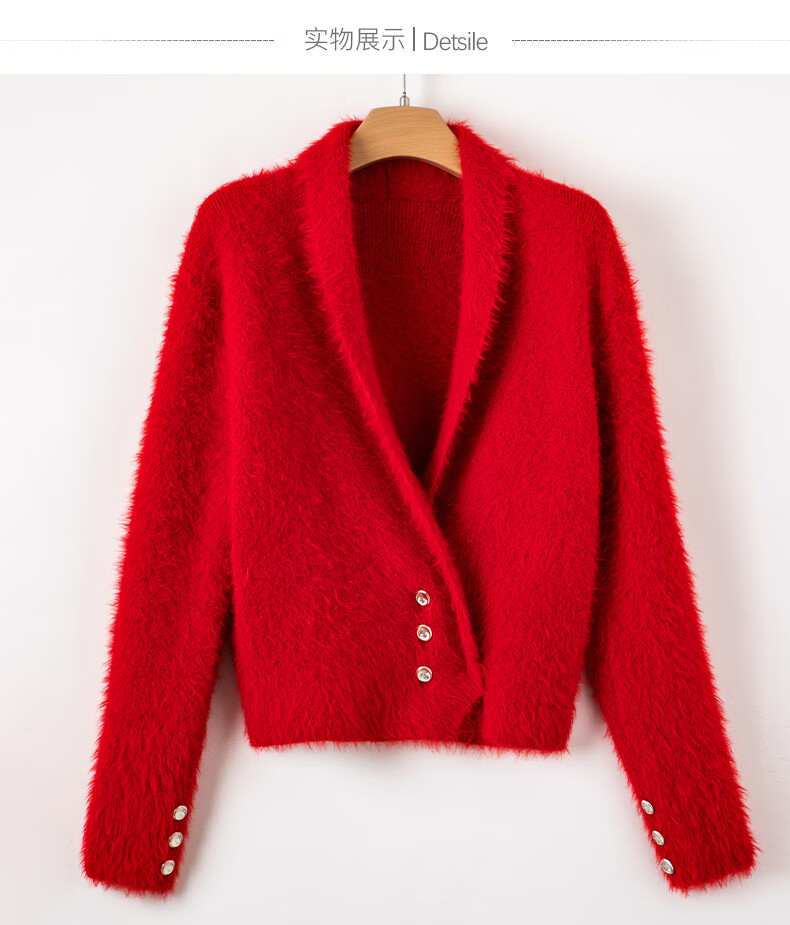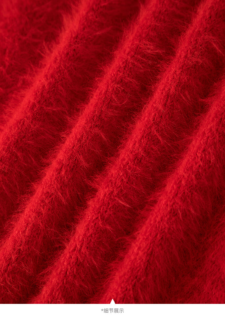 晚白【断码清仓】新年骐骥红毛衣舒适毛茸茸针织开衫外套女 红色 M