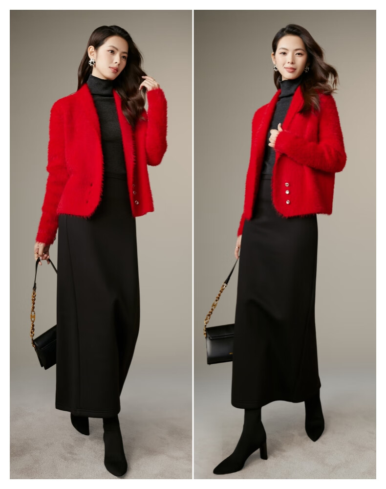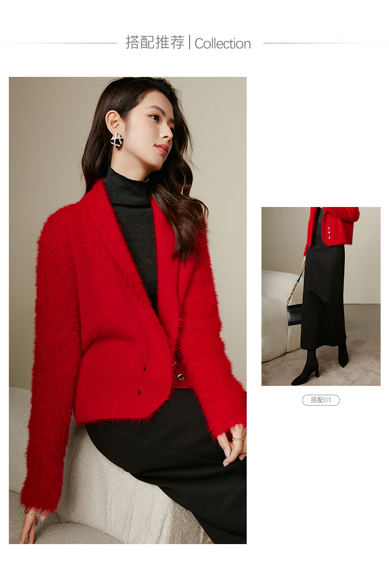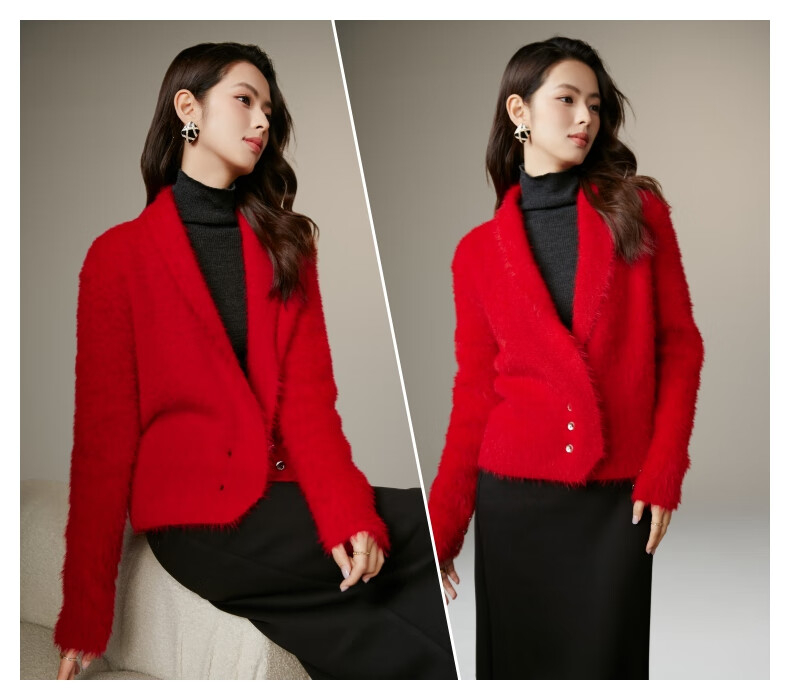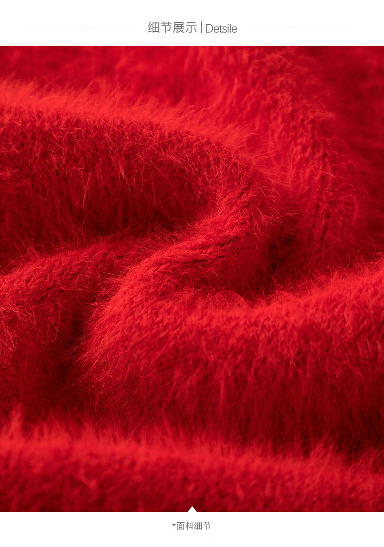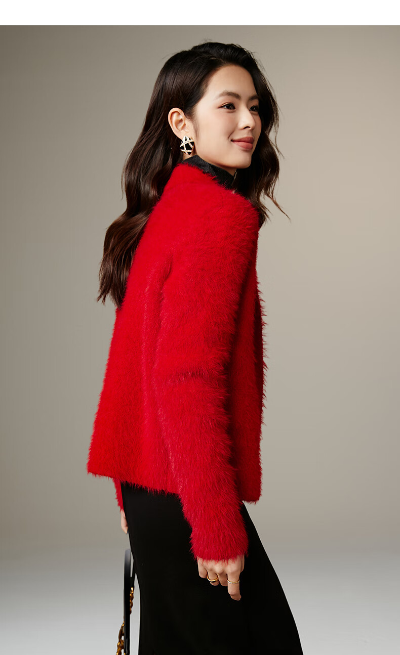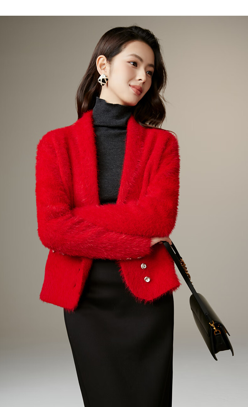 晚白【断码清仓】新年骐骥红毛衣舒适毛茸茸针织开衫外套女 红色 M