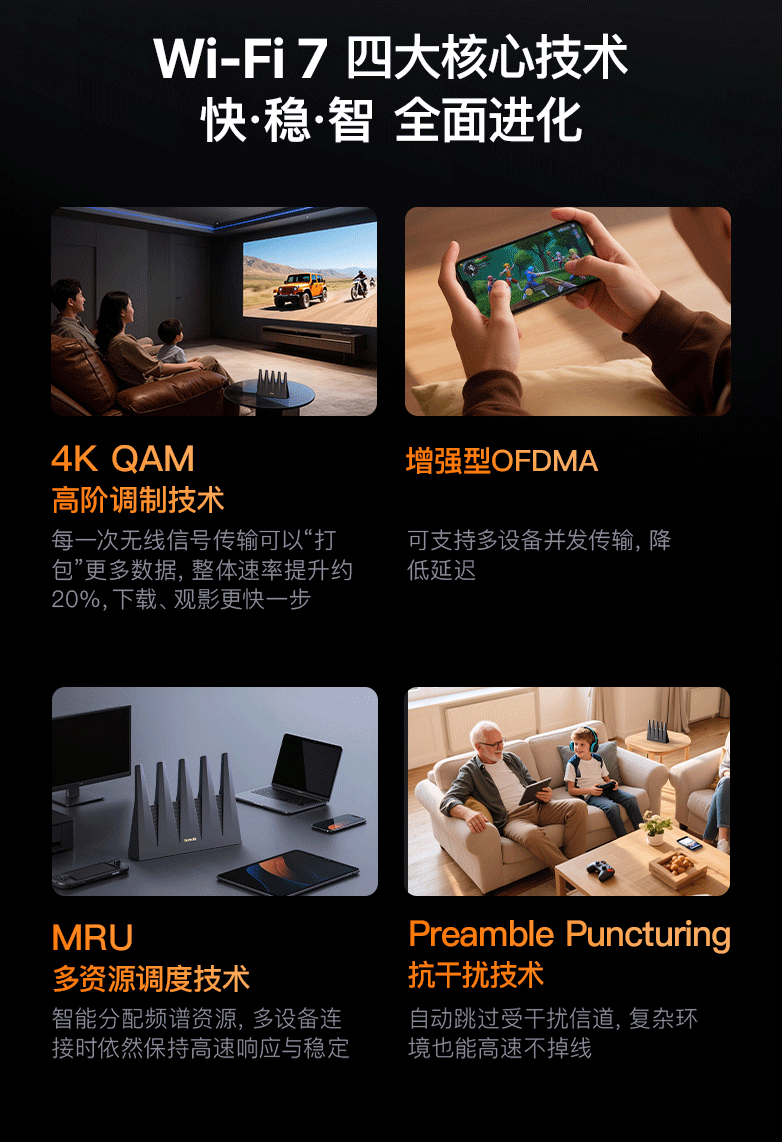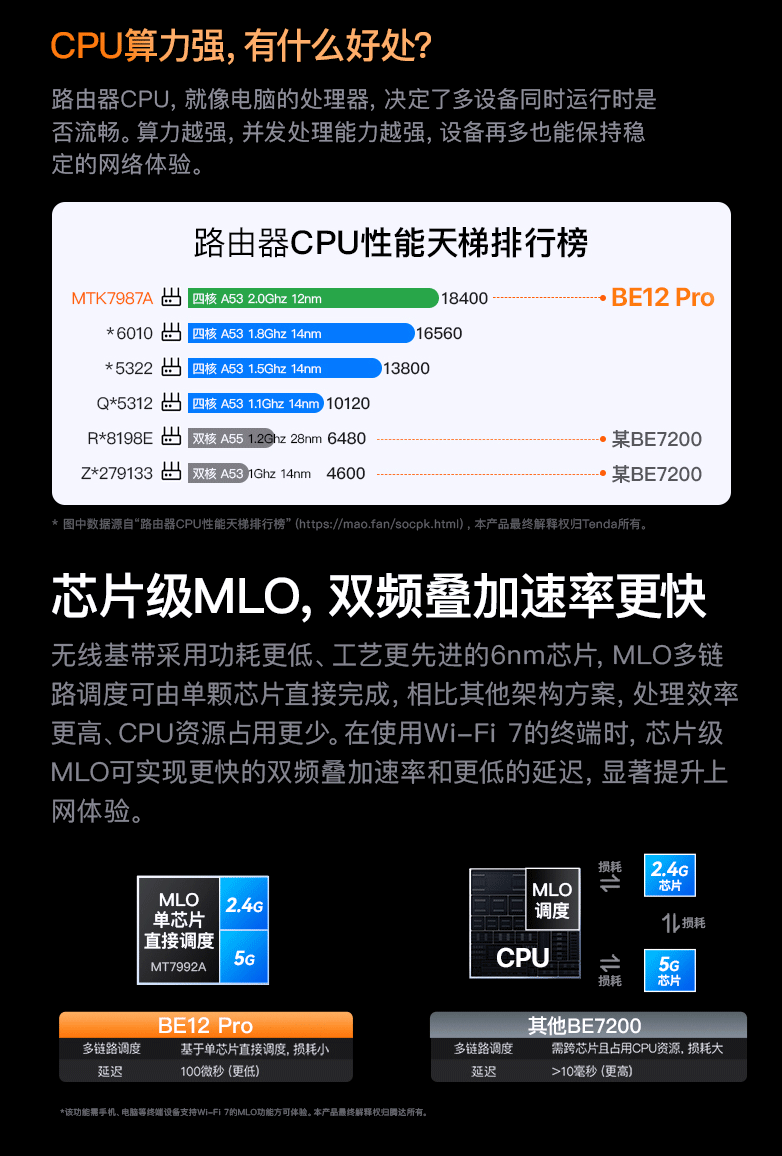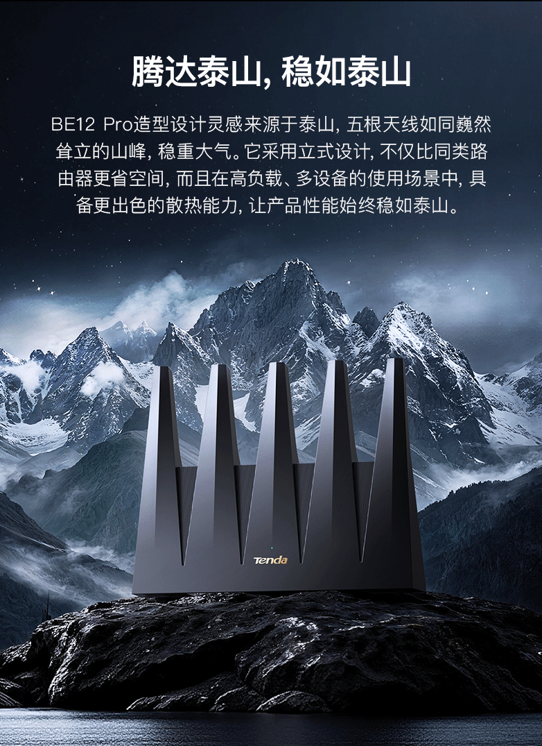 Tenda腾达路由器WiFi7【泰山BE7200 Ultra】千兆穿墙王信号增强无线家用电竞放大器立式BE12 Pro