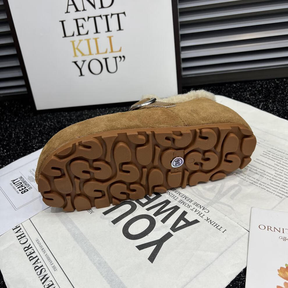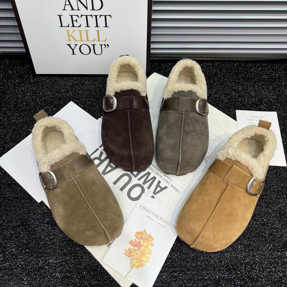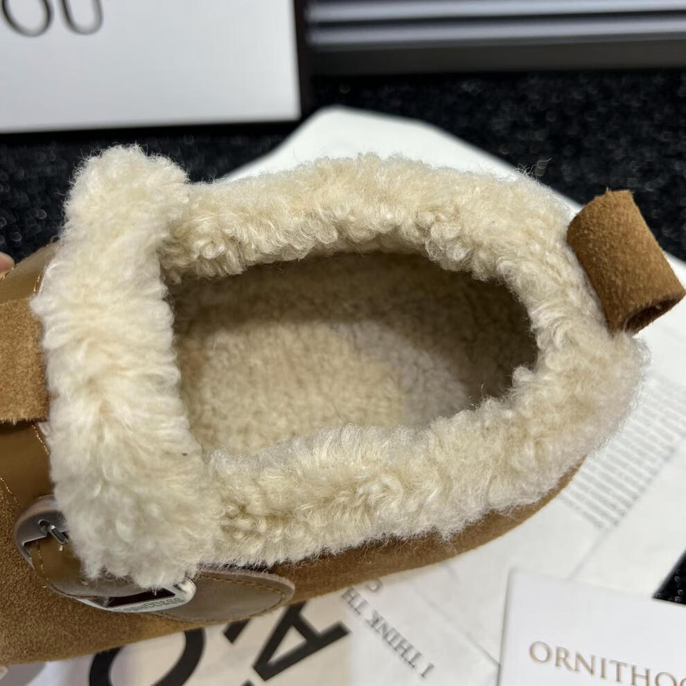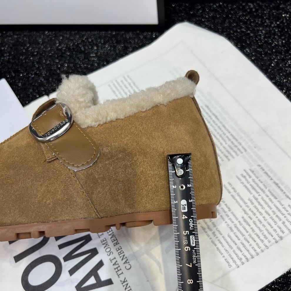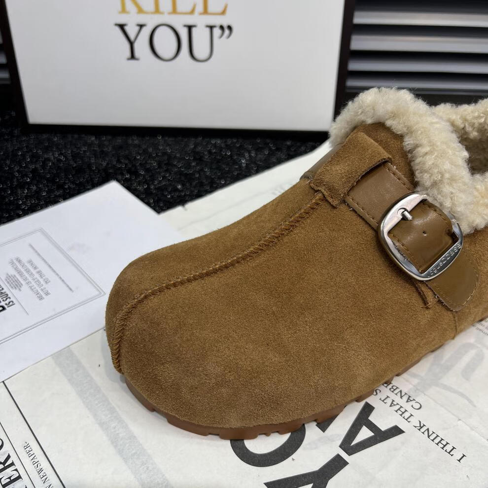 稻草人(MEXICAN)真皮厚底勃肯鞋女2026秋冬新款内增高百搭加绒保暖雪地棉鞋毛毛鞋 驼色95%的选择【升级版】 35