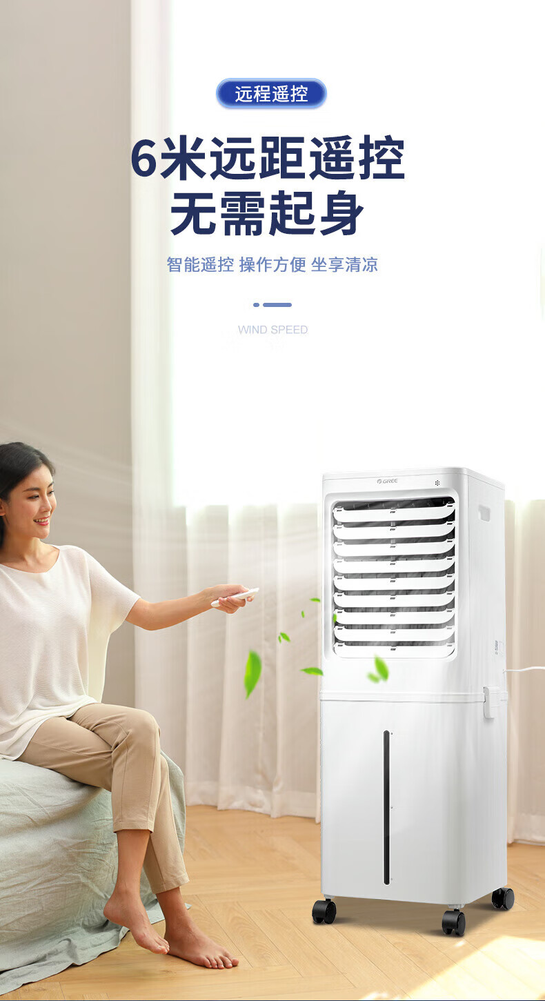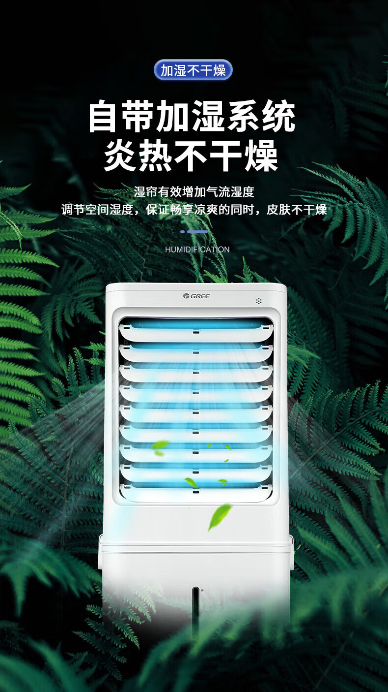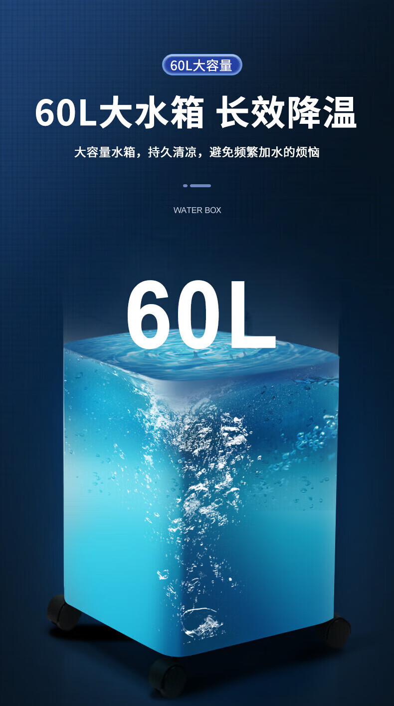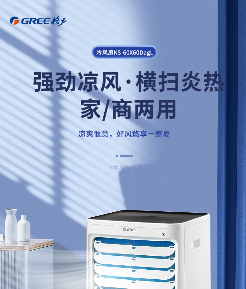 格力(GREE)空调扇冷风扇家用卧室别墅水冷风机节能遥控办公移动工业加湿单冷风扇电扇商家两用冷风机 白色KS-60X60DagL(60升大水箱)