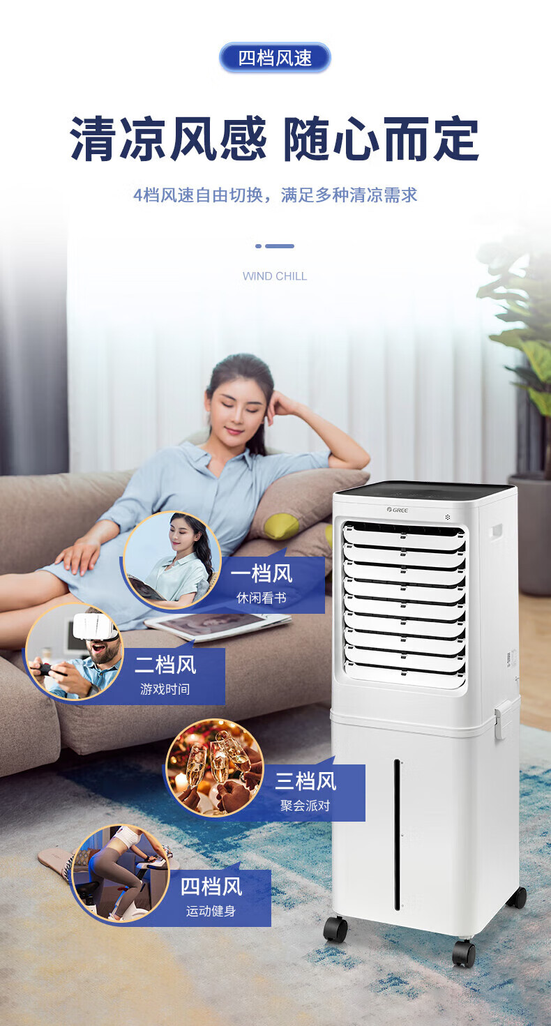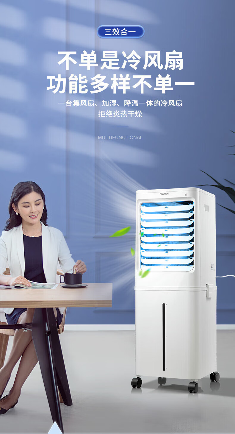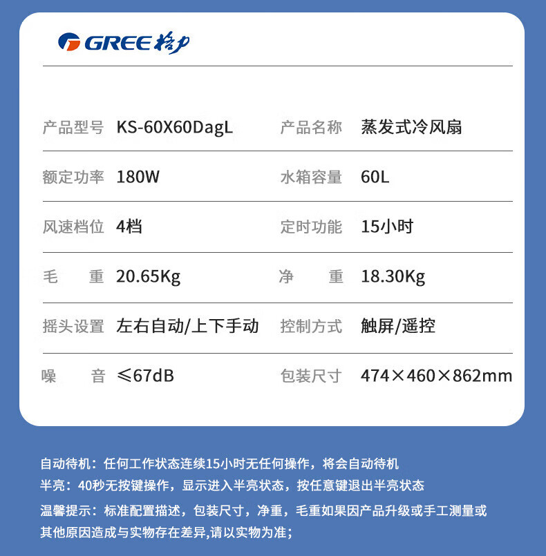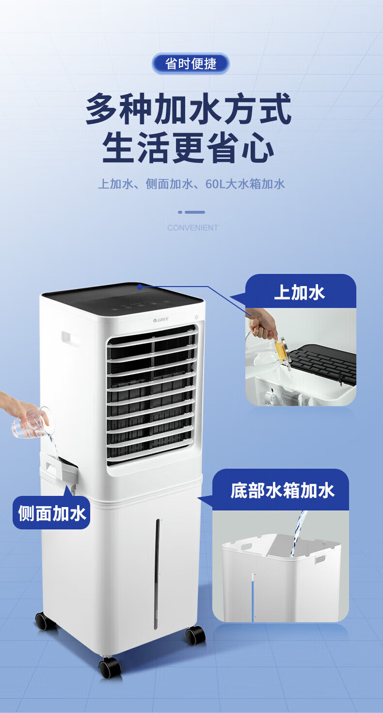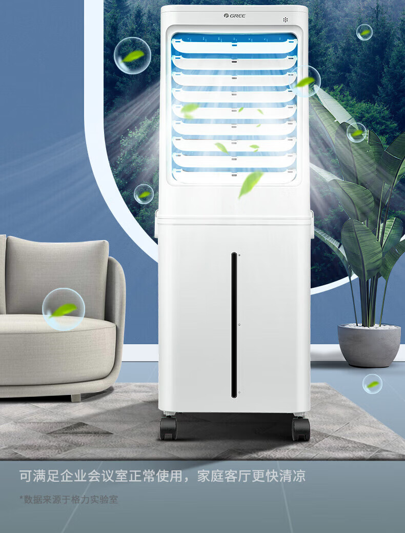 格力(GREE)空调扇冷风扇家用卧室别墅水冷风机节能遥控办公移动工业加湿单冷风扇电扇商家两用冷风机 白色KS-60X60DagL(60升大水箱)