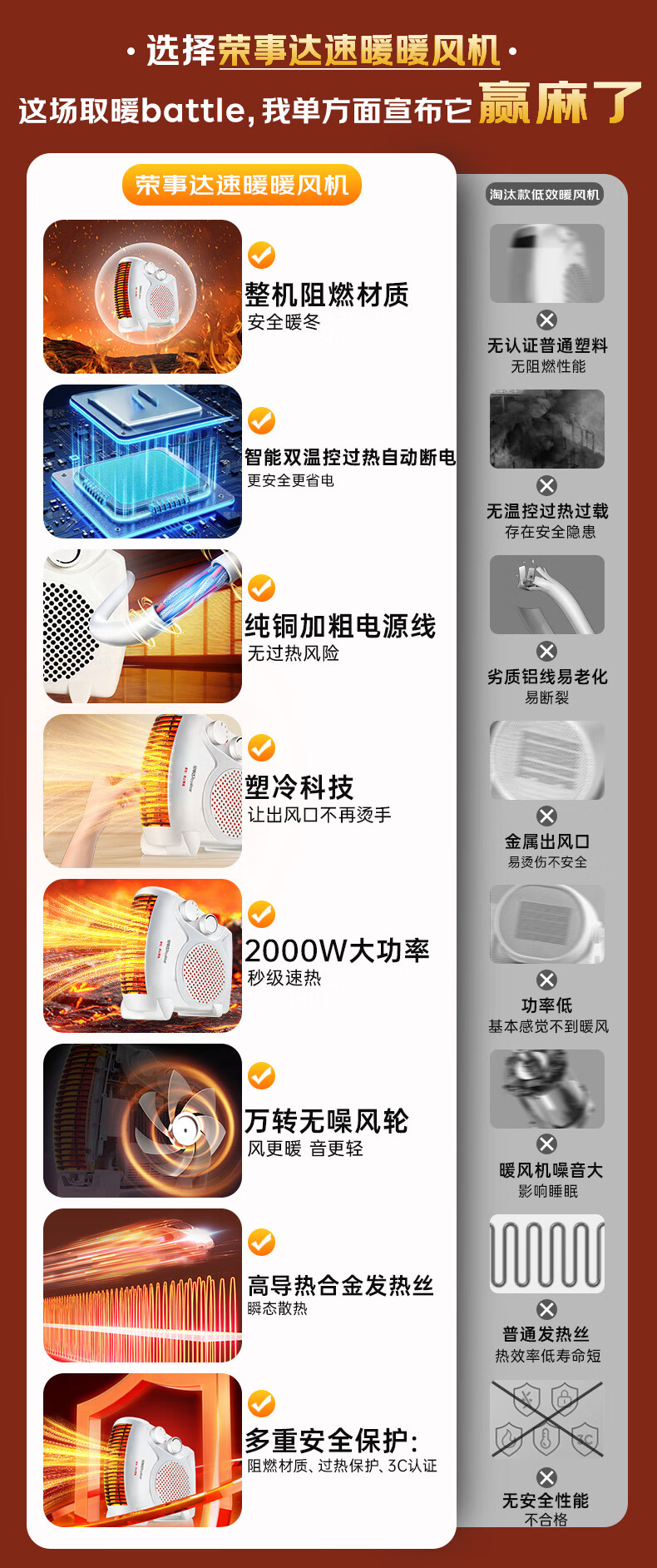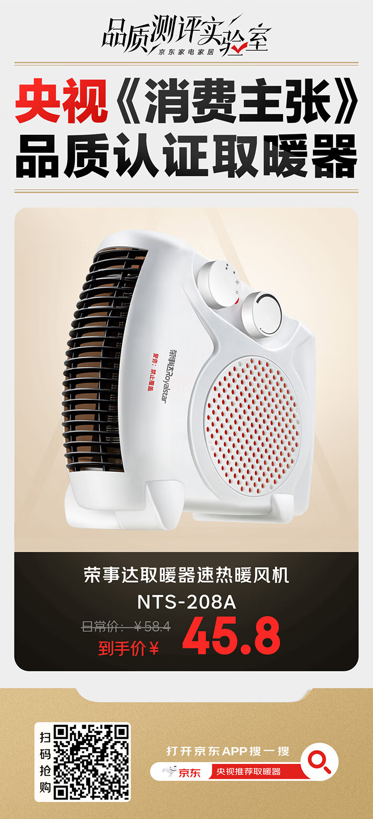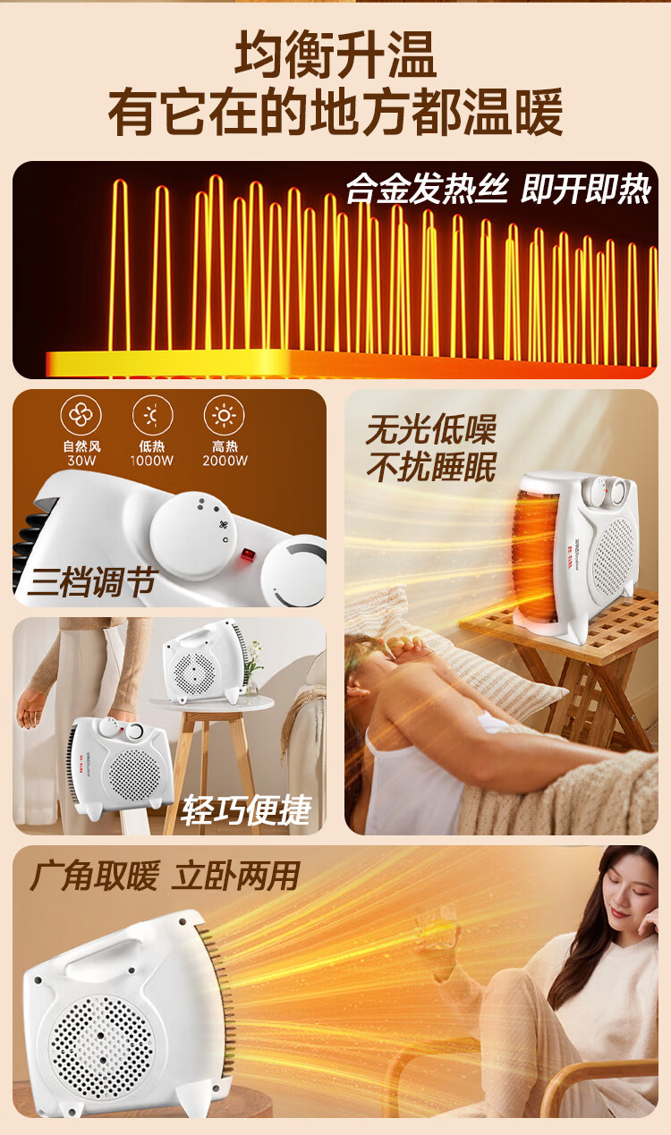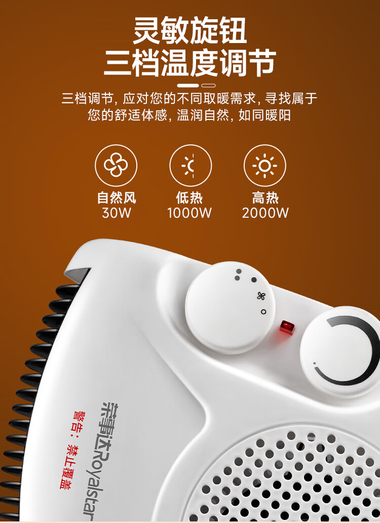 荣事达(Royalstar)【采销力荐】取暖器家用暖风机办公电暖器桌面室内加热器立卧两用电暖气 节能速暖烤火炉 NTS-208A