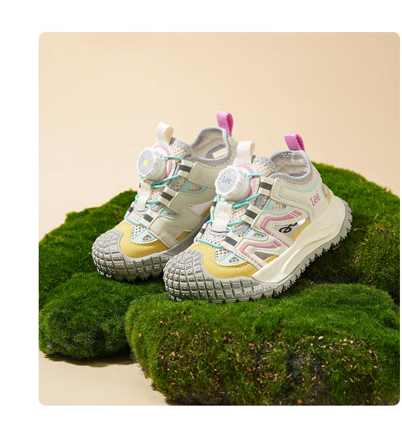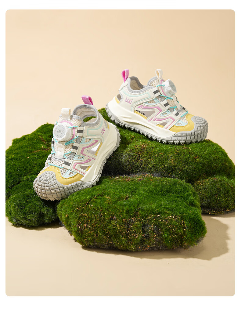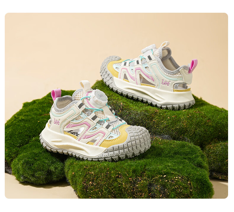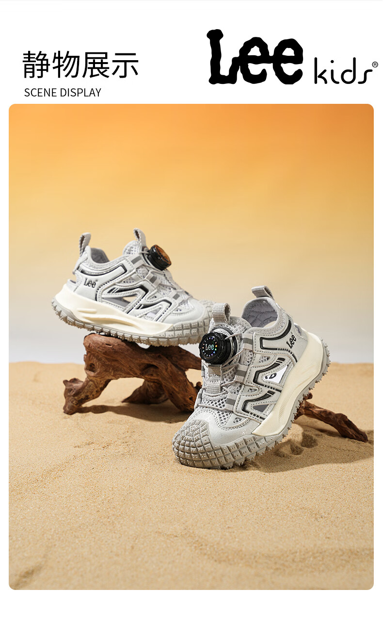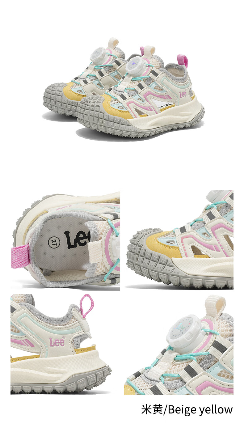 Lee童鞋夏季新款儿童包头沙滩凉鞋女童镂空运动鞋男童 米黄 33 【建议脚长204mm】