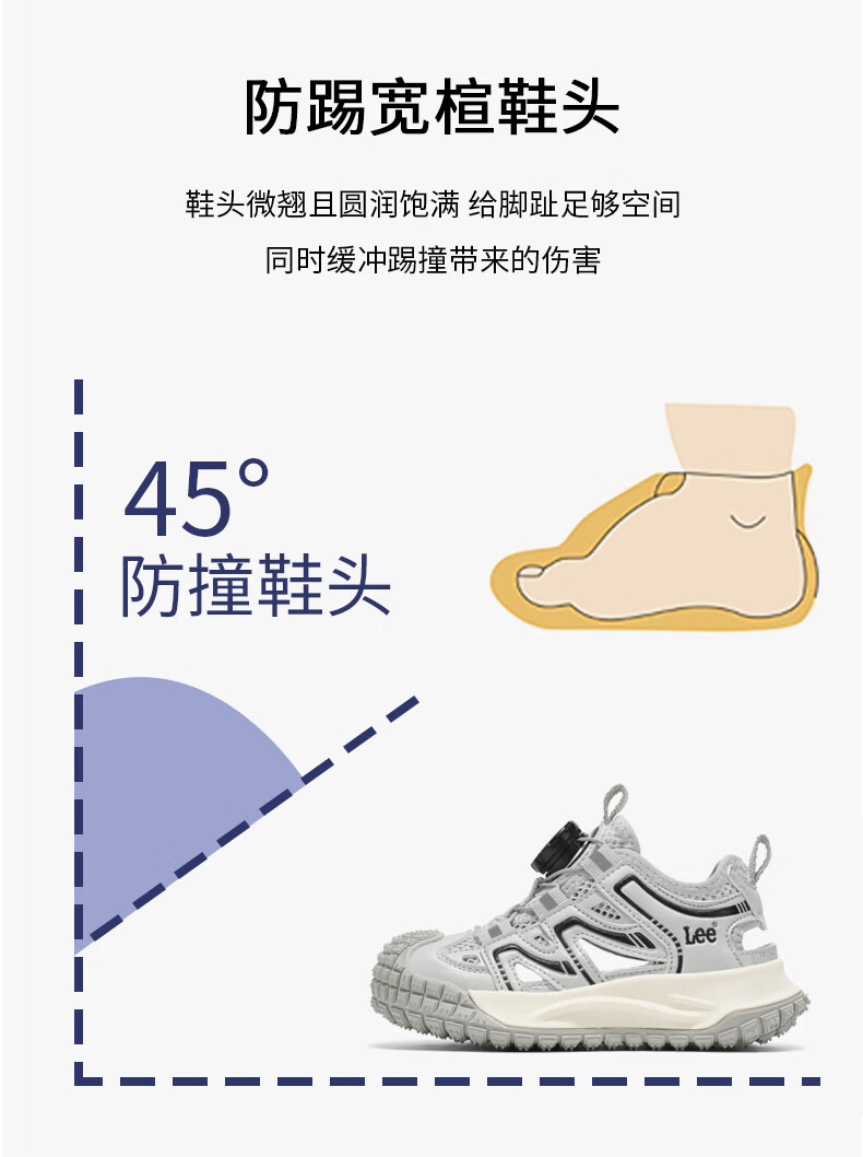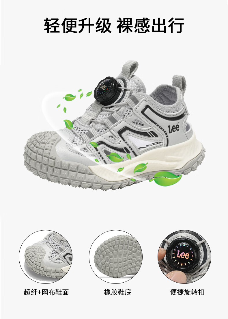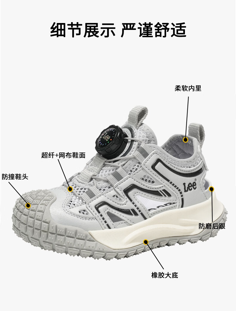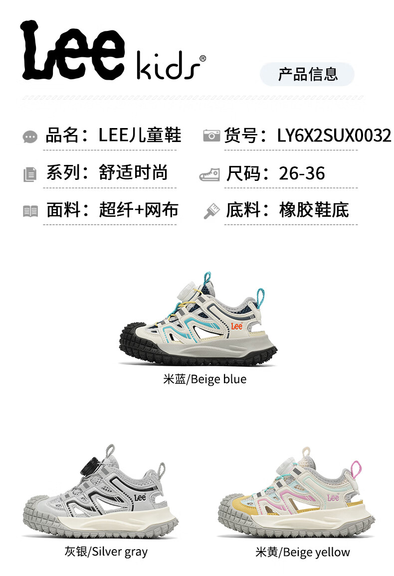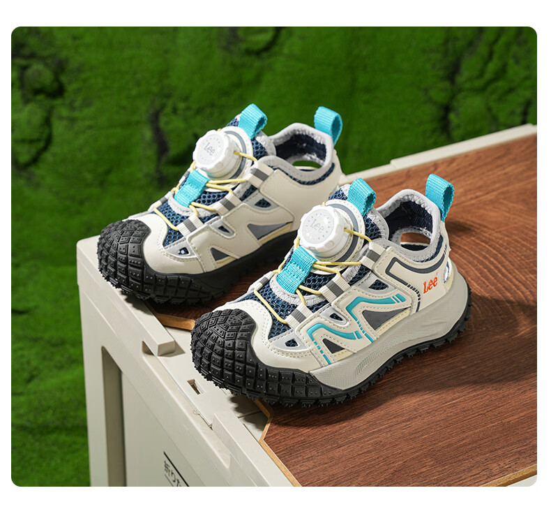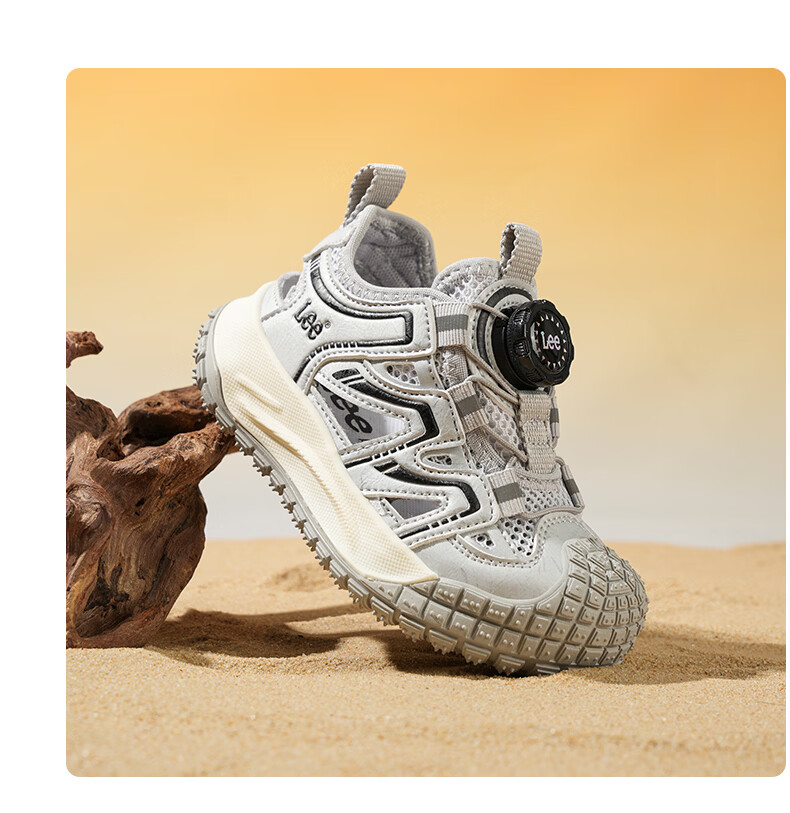 Lee童鞋夏季新款儿童包头沙滩凉鞋女童镂空运动鞋男童 米黄 33 【建议脚长204mm】