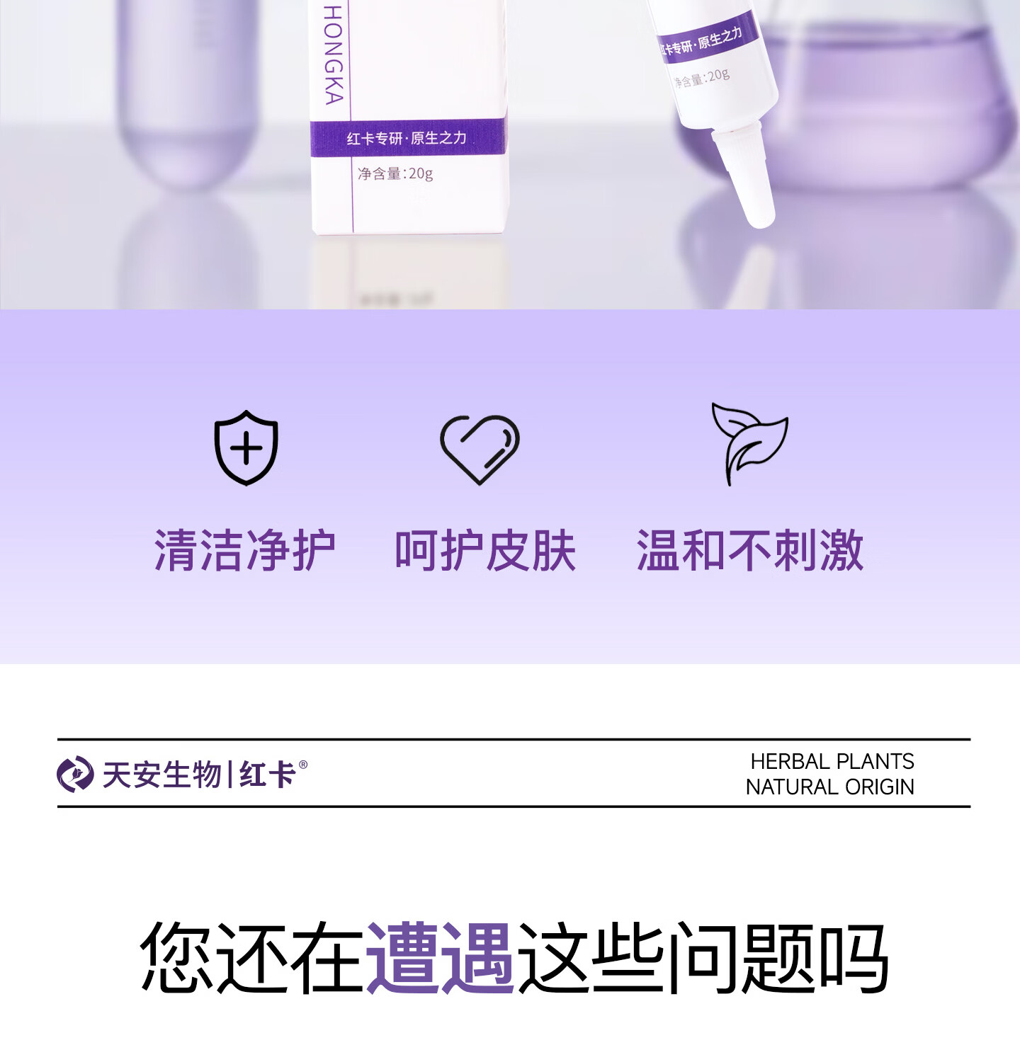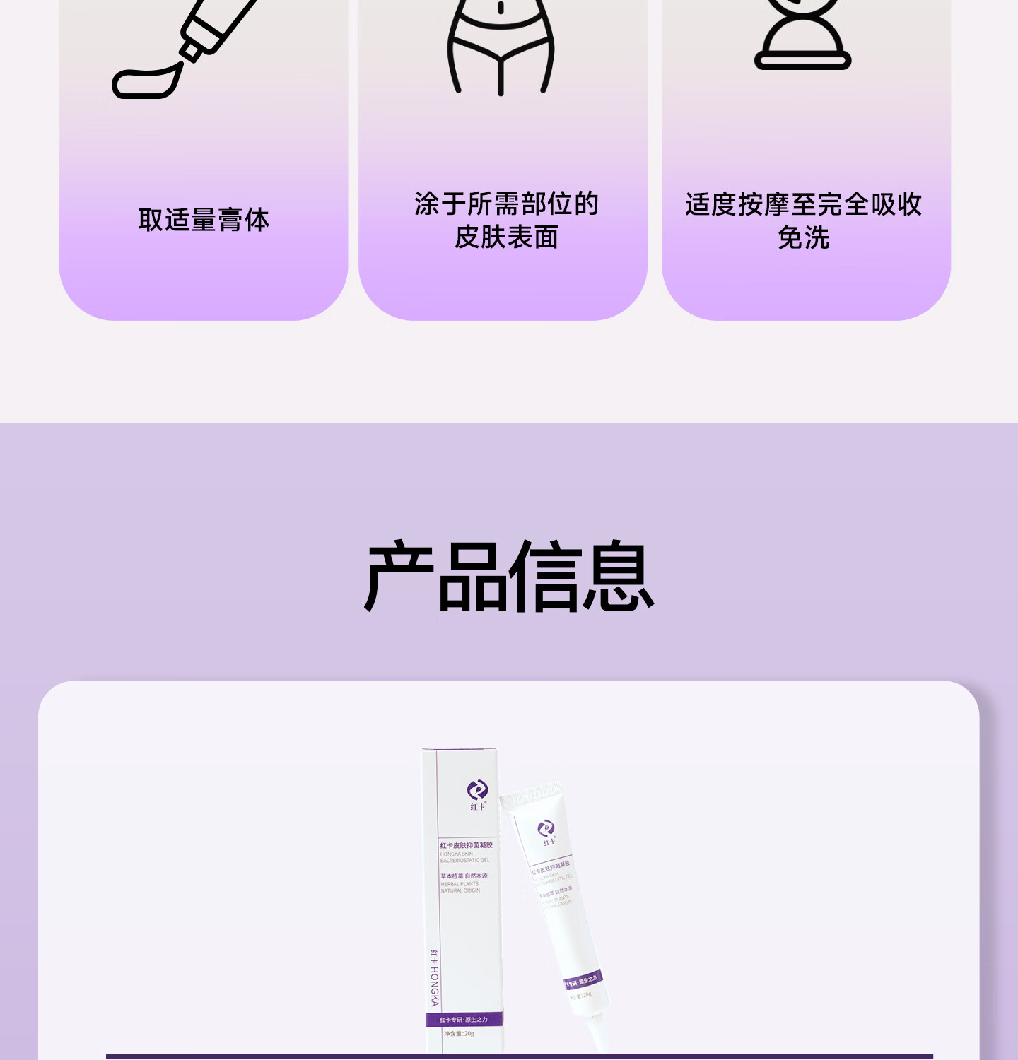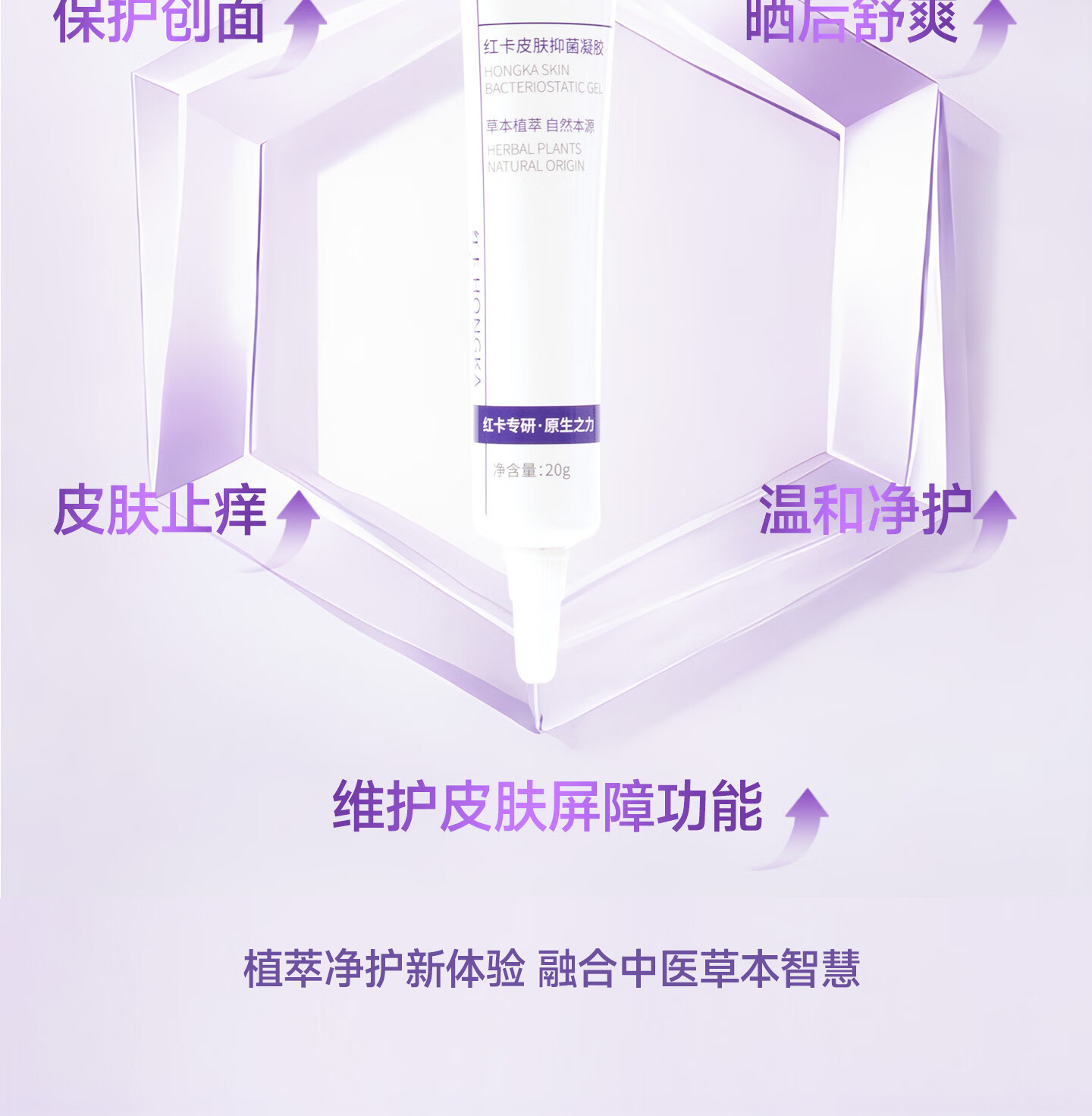 红卡皮肤抑菌凝胶草本植萃温和养护日常皮肤护理消字号20g/支药企专研