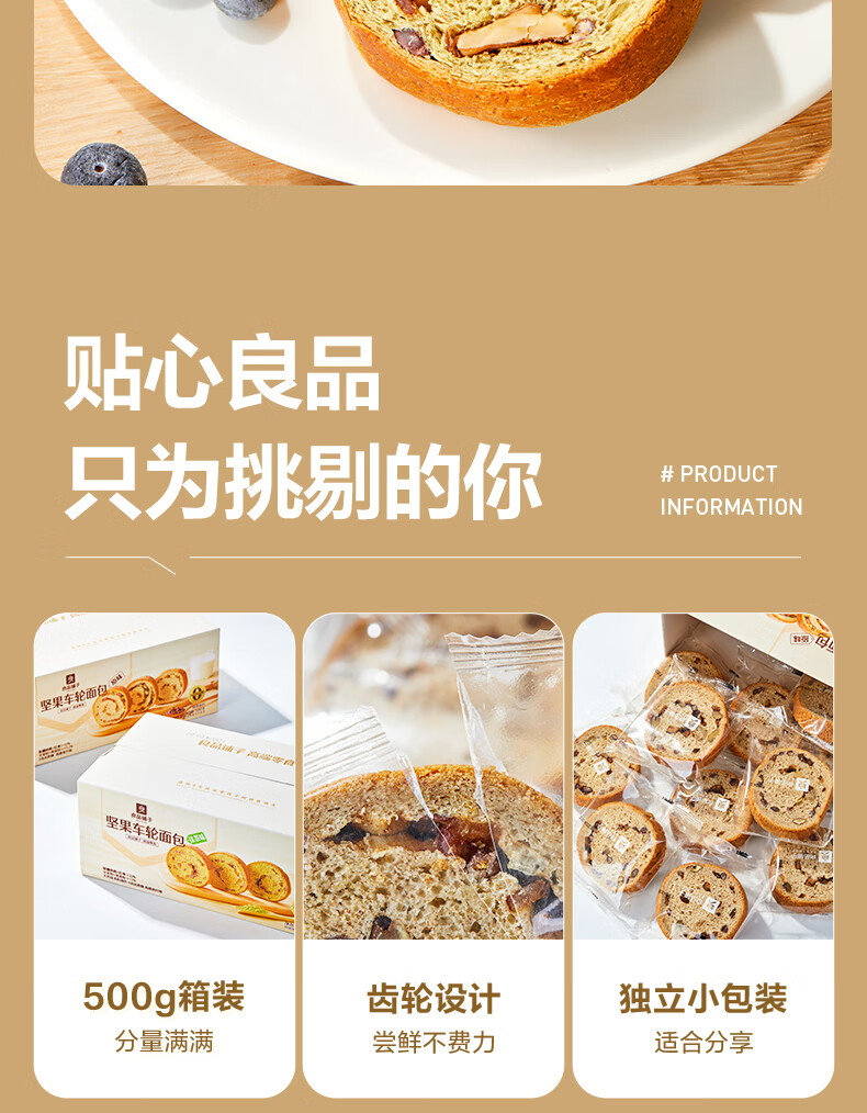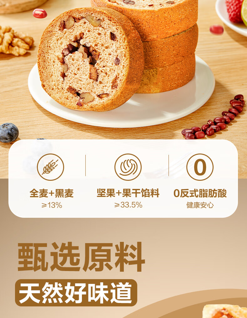 良品铺子良品铺子全麦黑麦坚果面包早餐吐司欧包低脂代餐原味