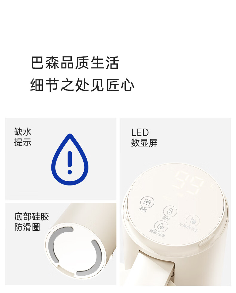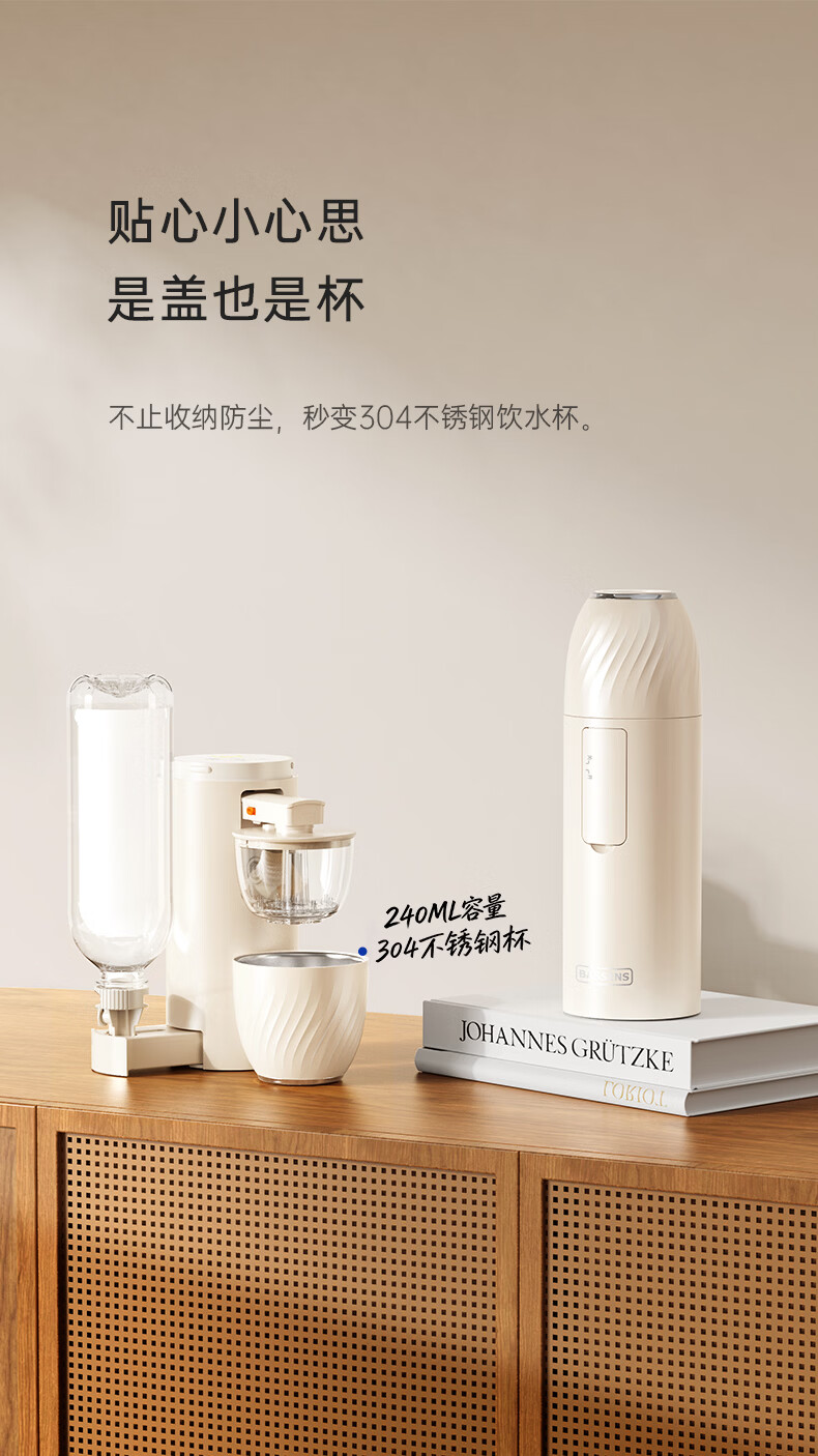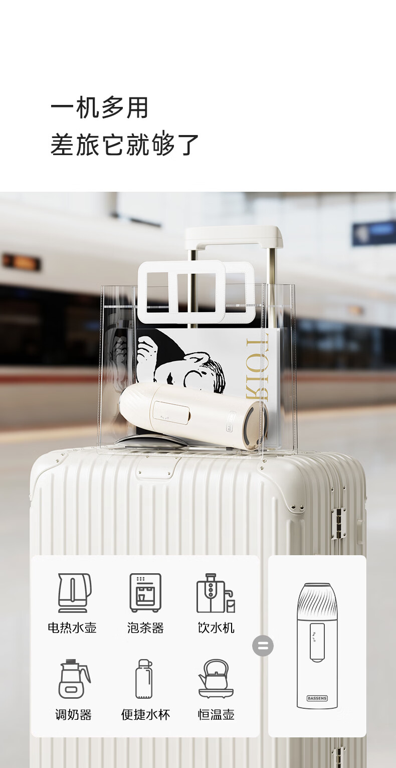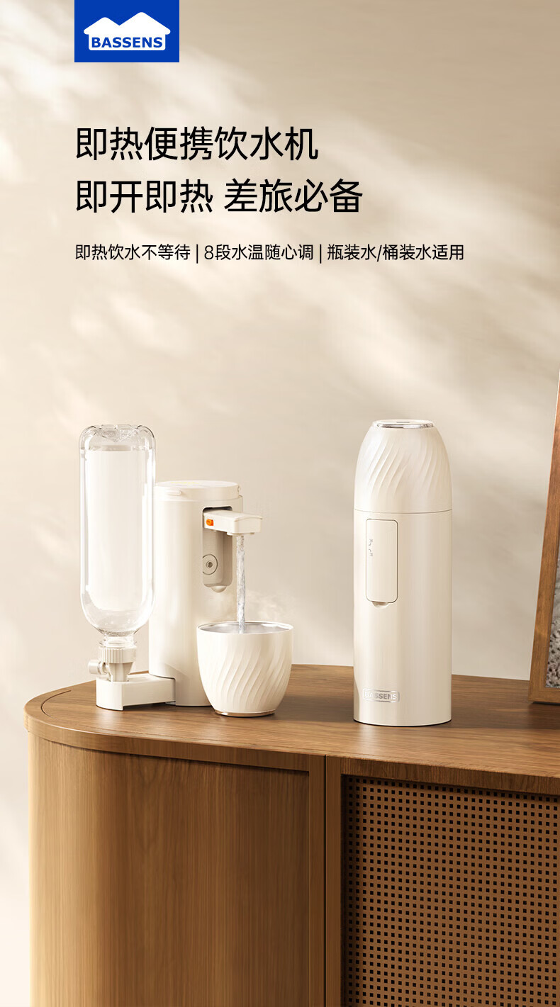 BASSENS【38女神节礼物】巴森便携即热式饮水机小型家用宿舍烧水壶旅行冲奶泡奶速热折叠电热水壶标配款