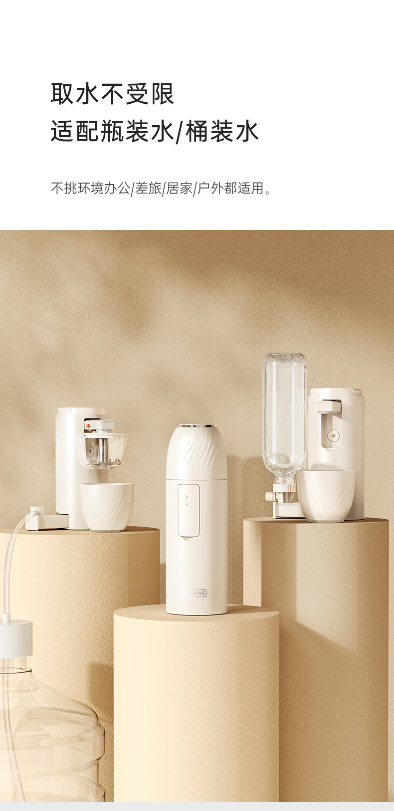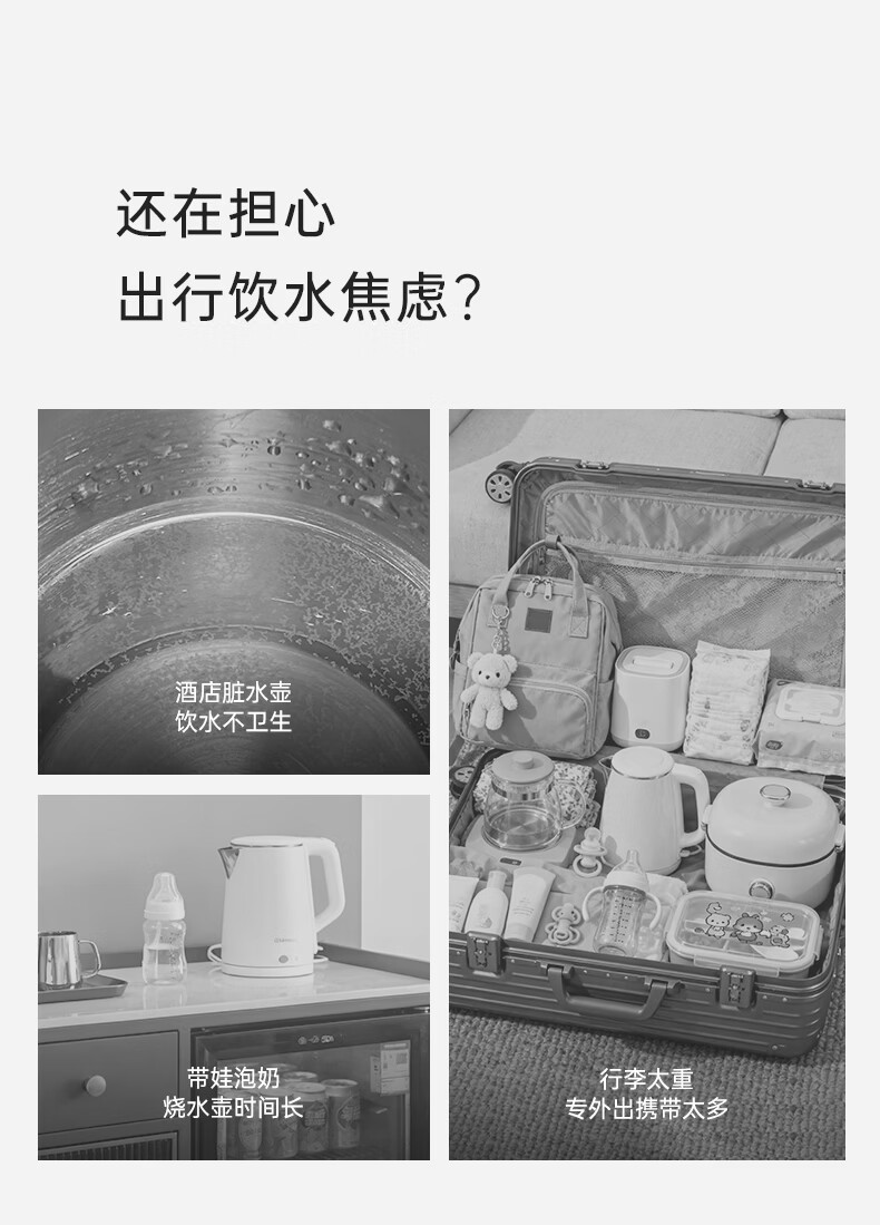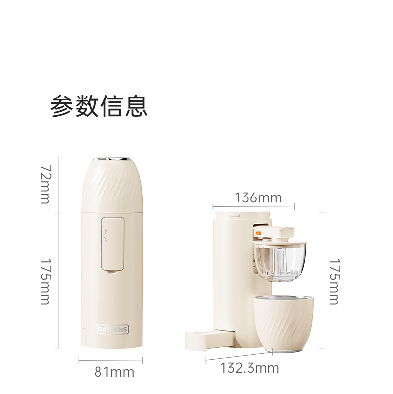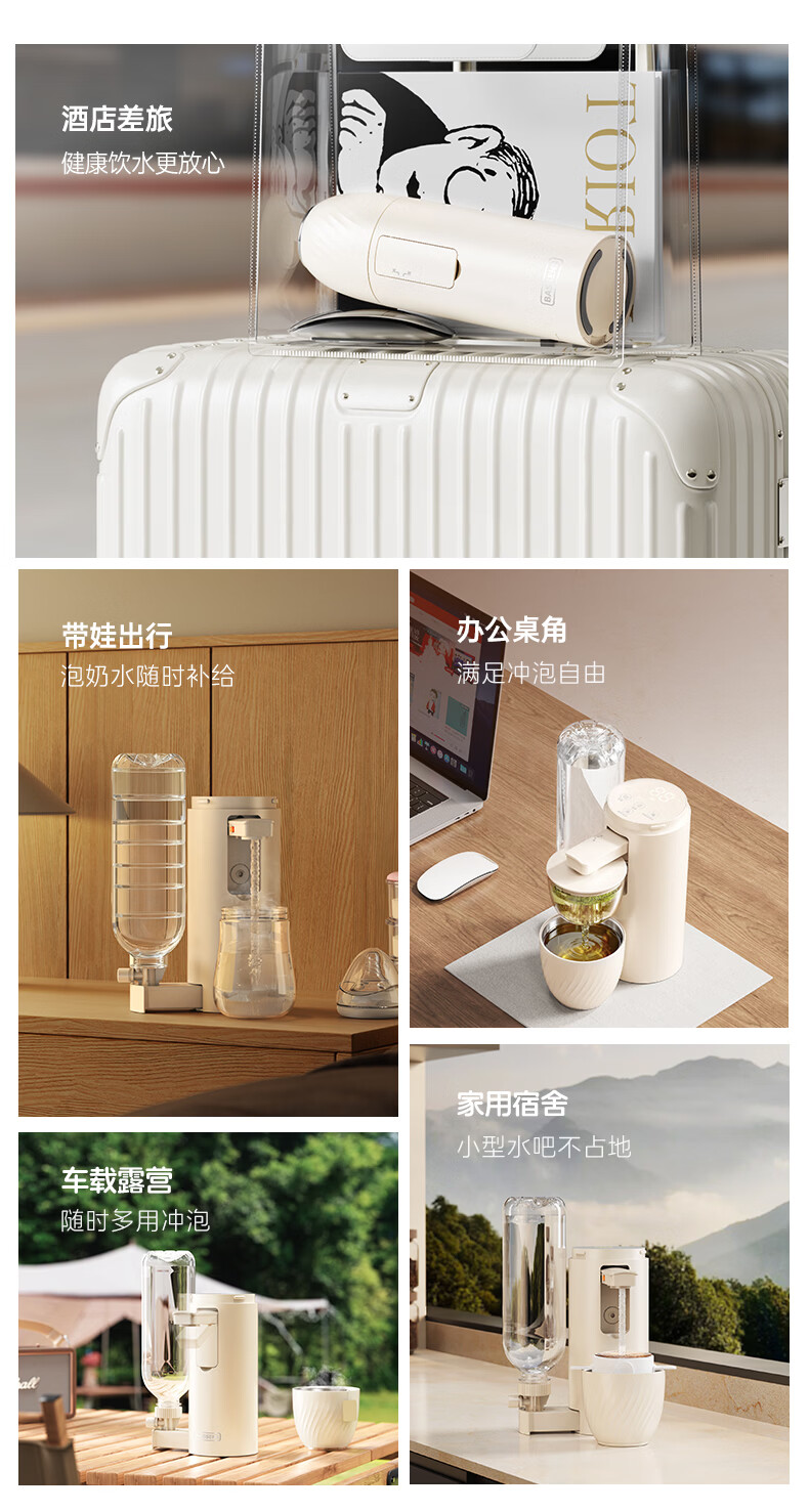 BASSENS【38女神节礼物】巴森便携即热式饮水机小型家用宿舍烧水壶旅行冲奶泡奶速热折叠电热水壶标配款