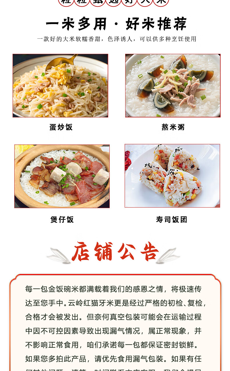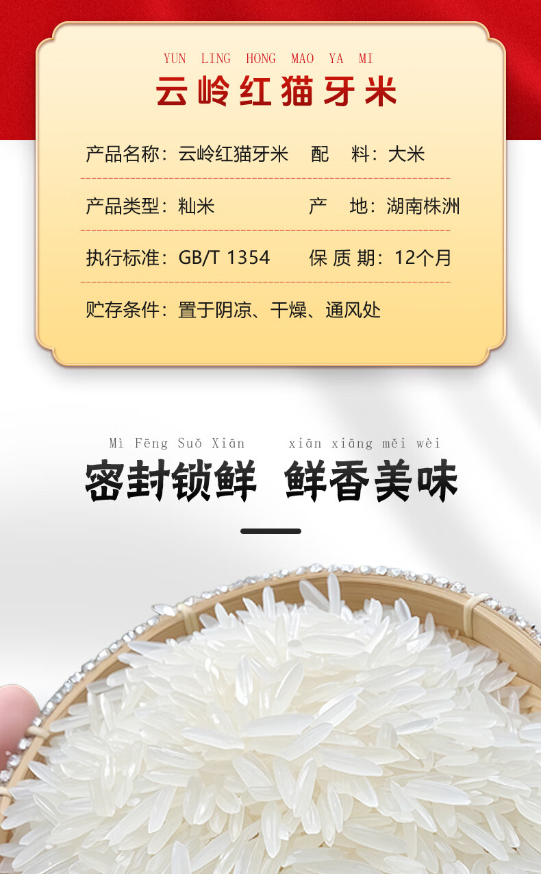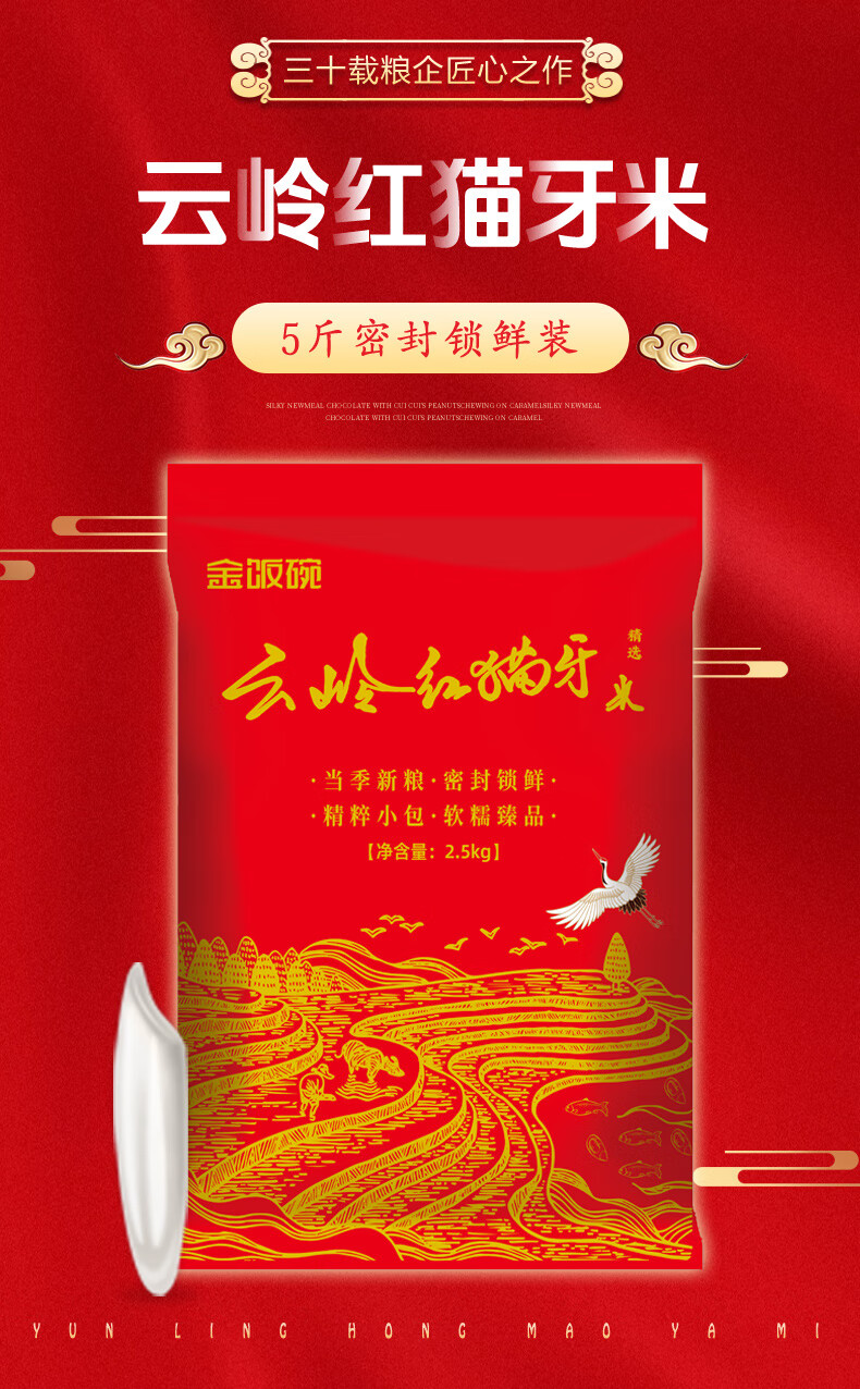 金饭碗猫牙米长粒香米5斤新米真空包装软糯香甜大米工厂直发 云岭红猫牙2.5KG