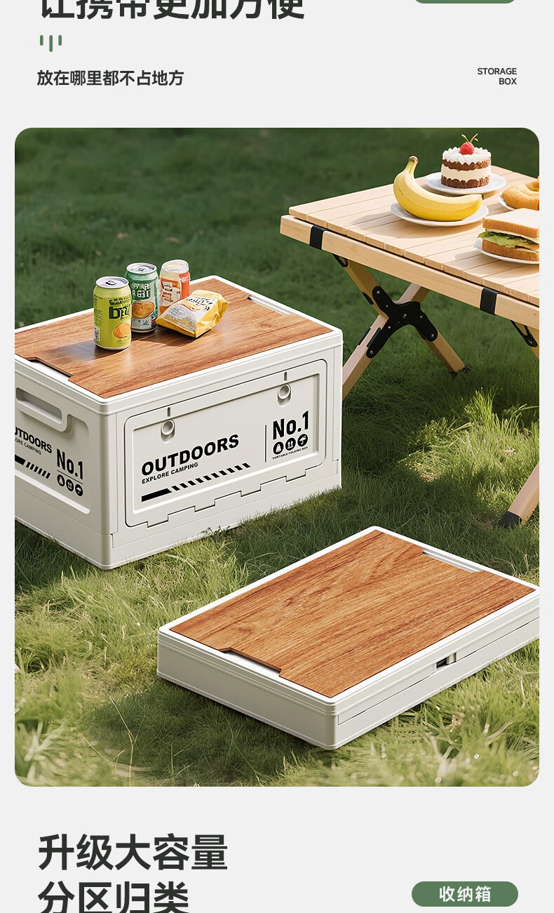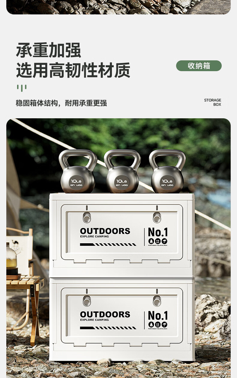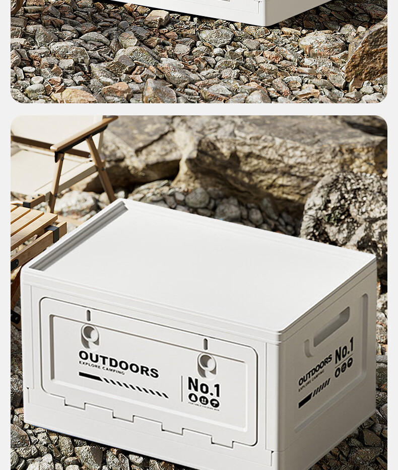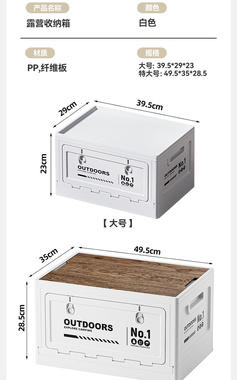 叩素露营收纳箱子户外折叠汽车后备箱车载野营储物箱侧开口整理箱中号 【白-大号+双开门+PP盖/无木板】