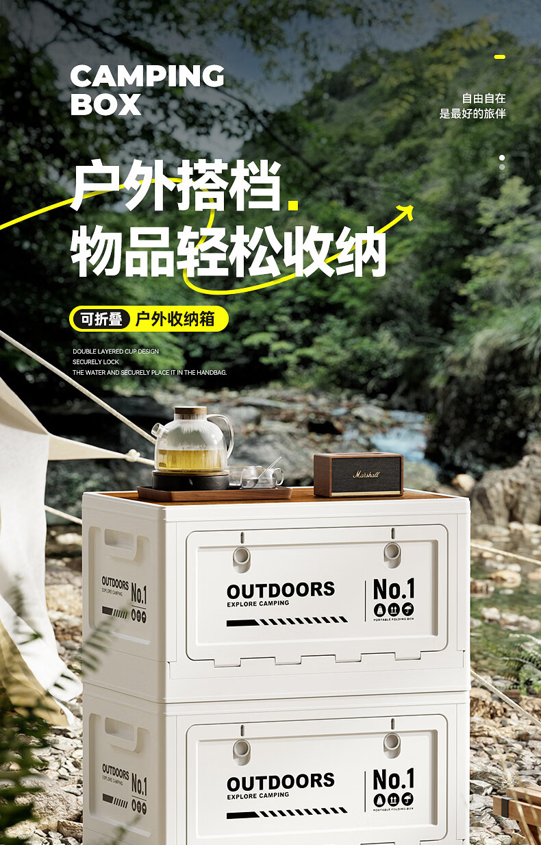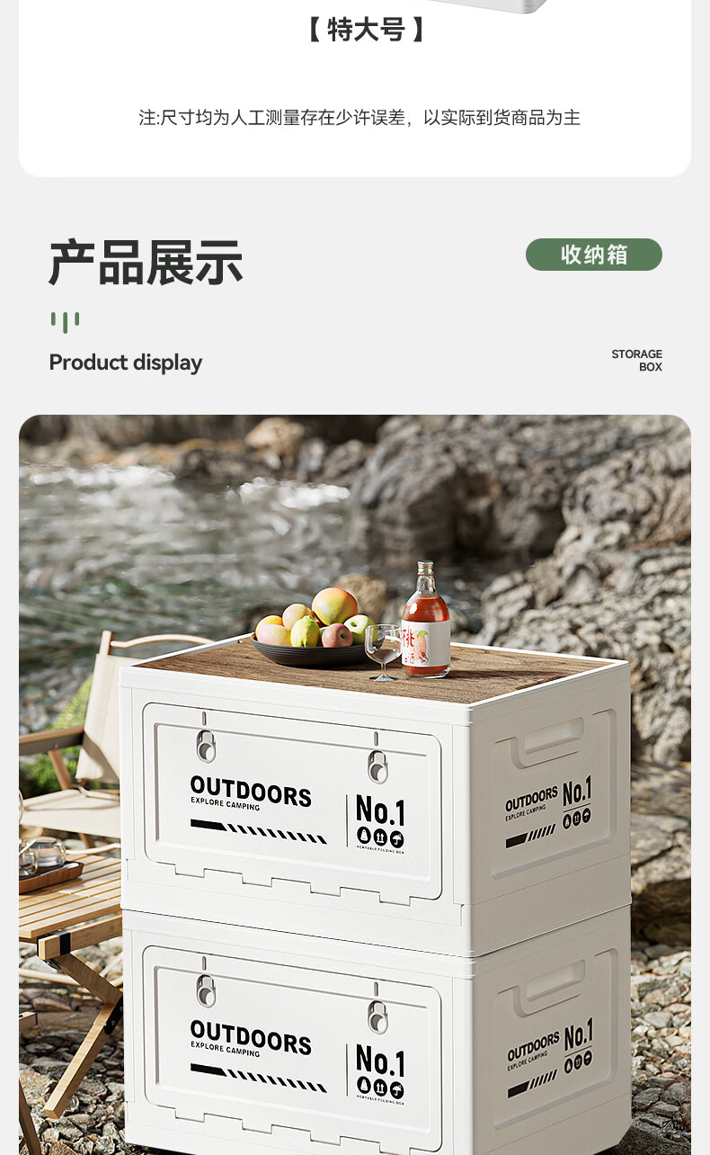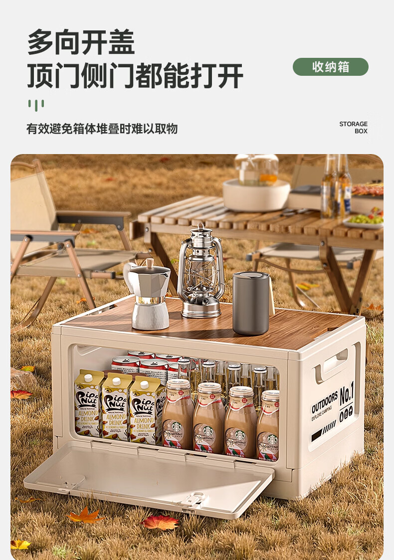 叩素露营收纳箱子户外折叠汽车后备箱车载野营储物箱侧开口整理箱中号 【白-大号+双开门+PP盖/无木板】