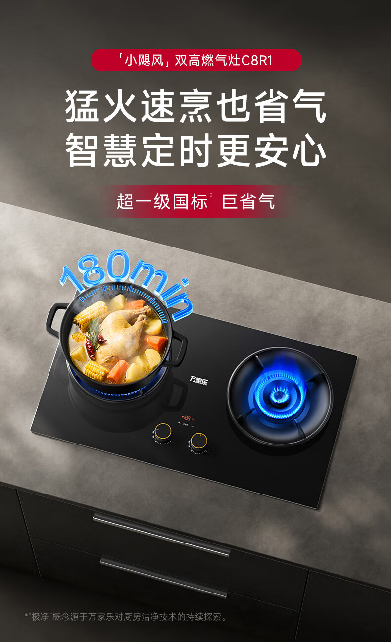 万家乐燃气灶【小飓风C8R1】台式嵌入式灶 5.2kw大火力台嵌两用灶具70%高热效率180min智能定时天然气灶