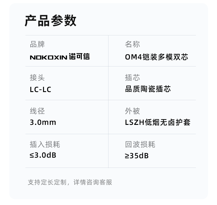 诺可信(Nokoxin)电信级万兆多模双芯光纤跳线LC-LC OM3/OM4低烟无卤多模双纤尾纤 阻燃LSZH抗弯曲跳纤光纤线 LC-LC万兆多模双芯(OM4) 8米