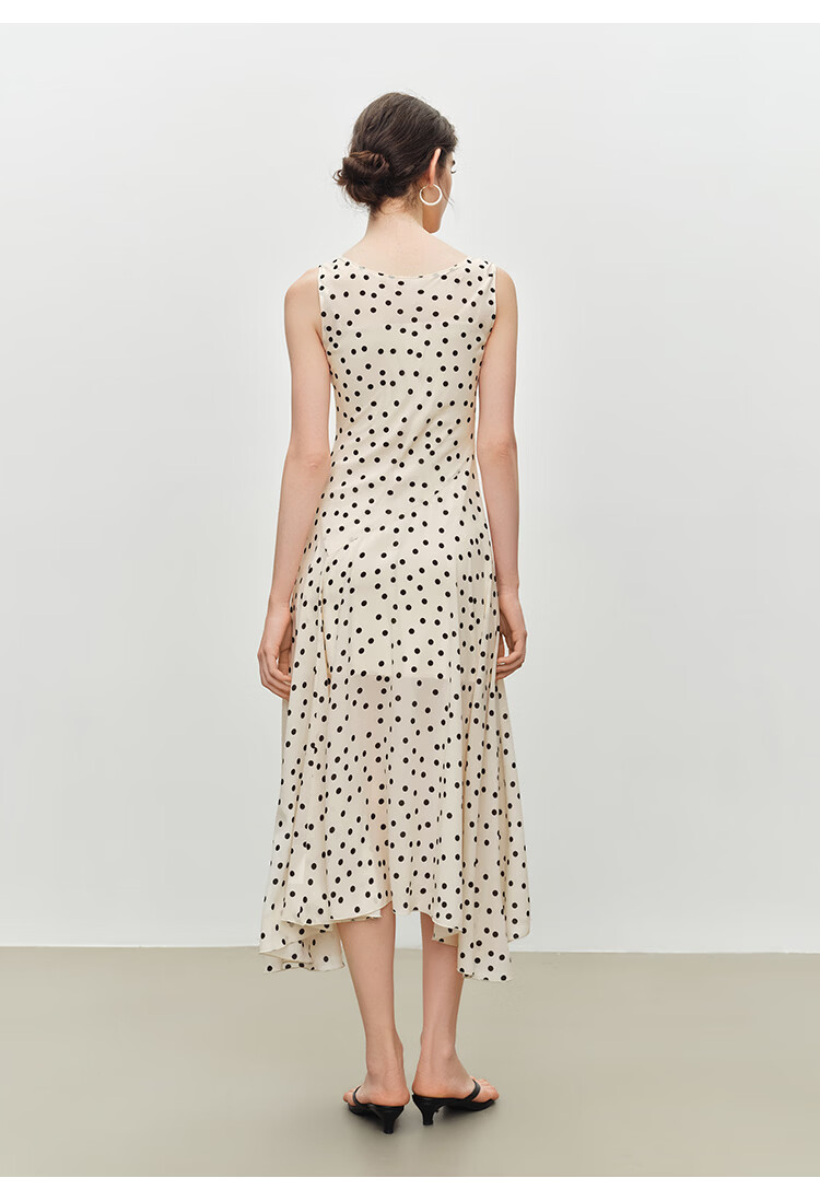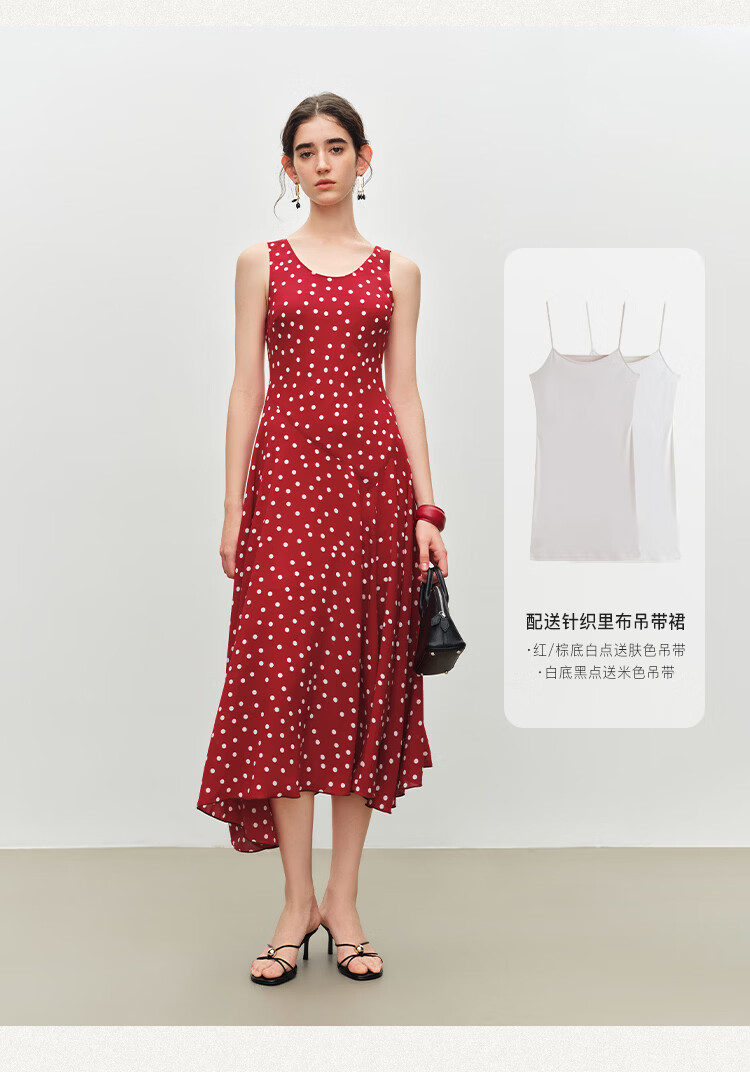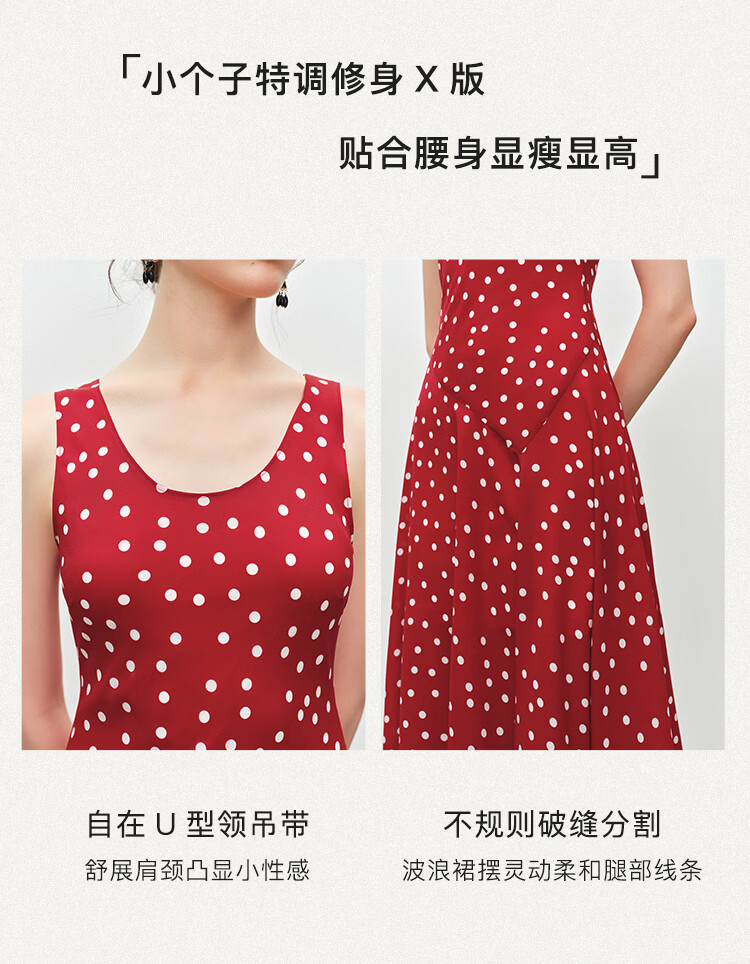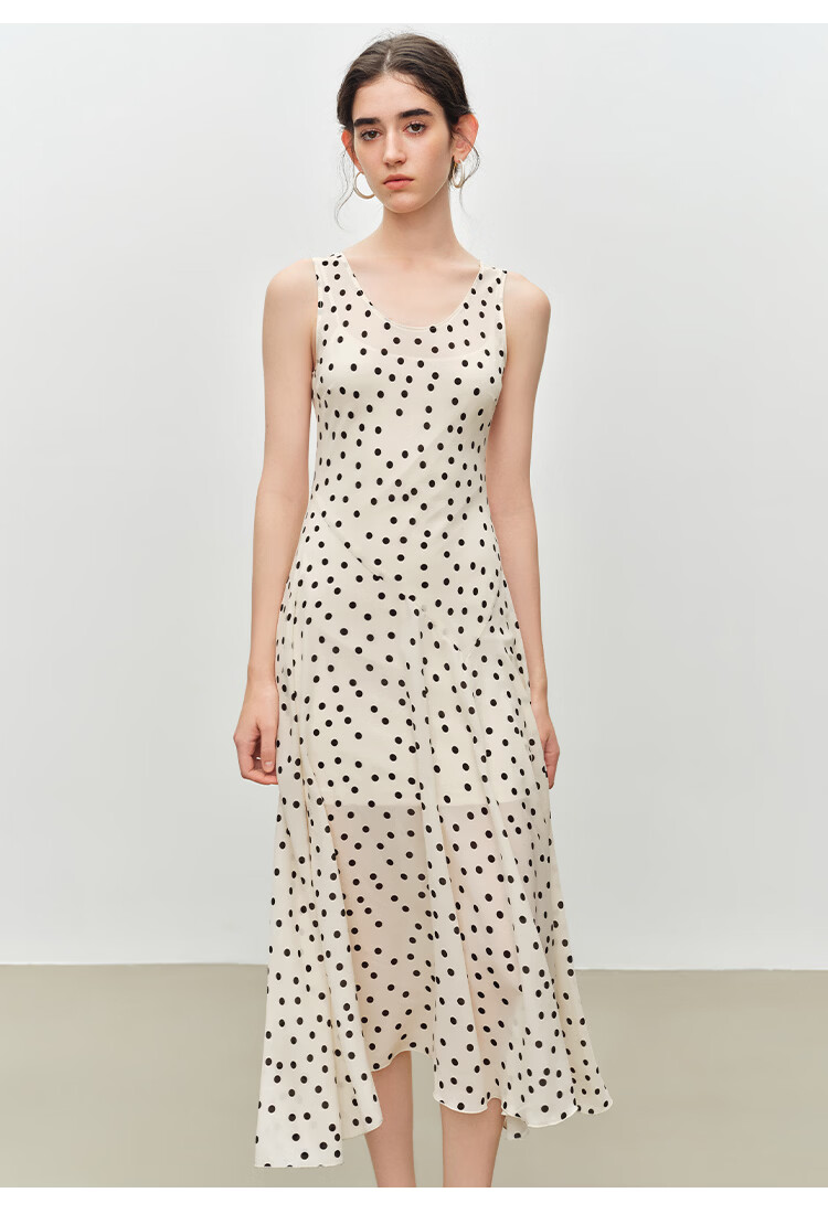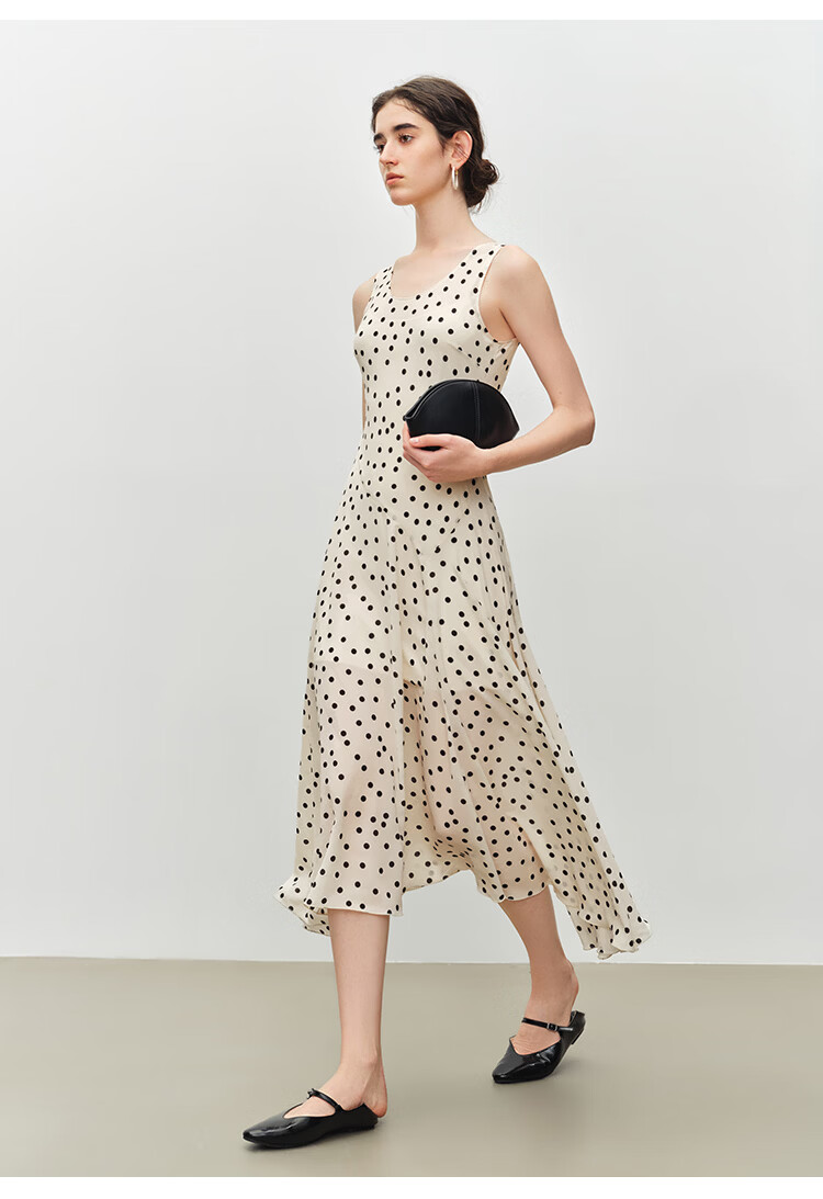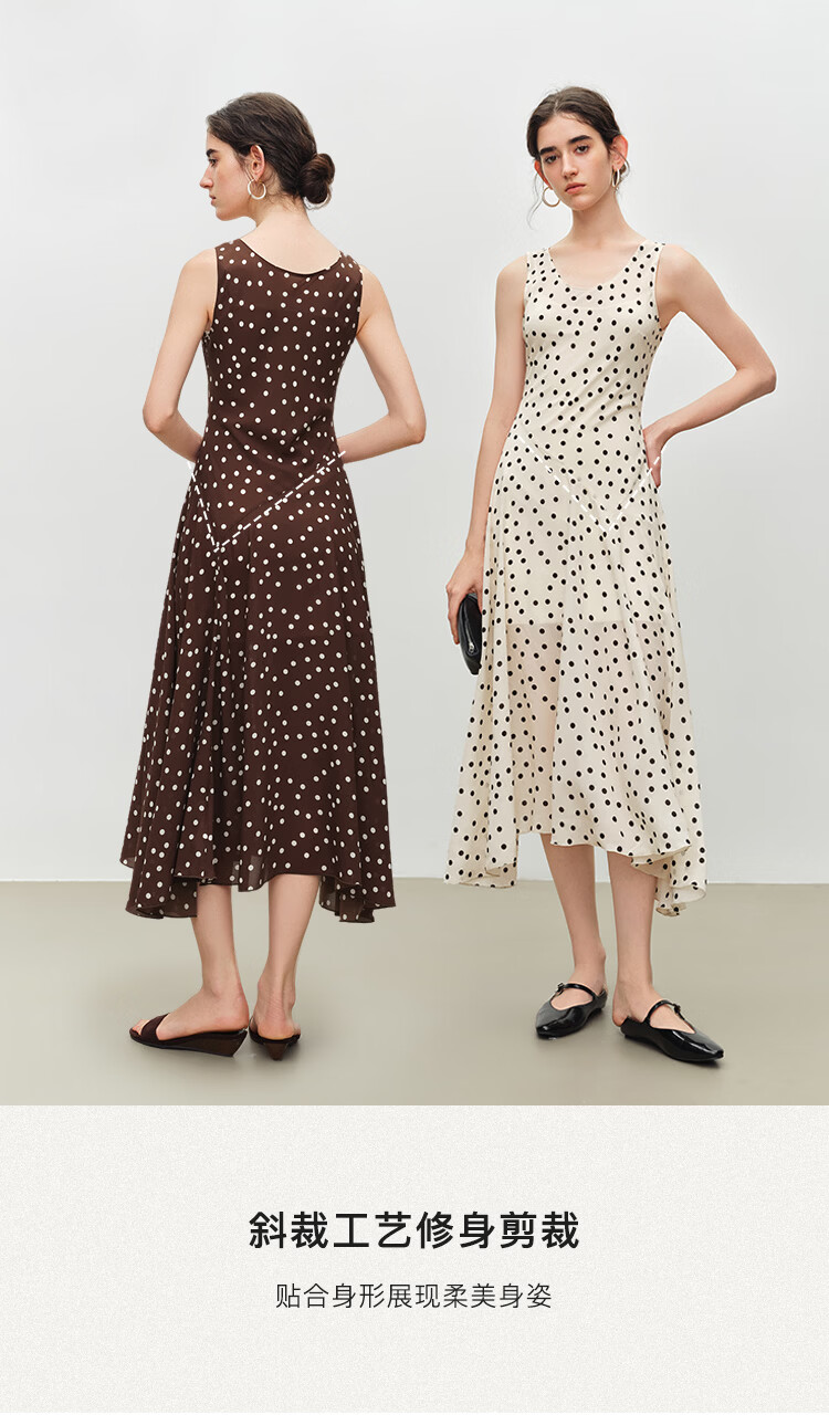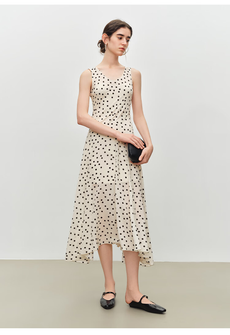 自巧小个子斜裁复古波点雪纺吊带连衣裙女2026夏季新款U领背心裙 白底黑点 XXS (尺码:1)