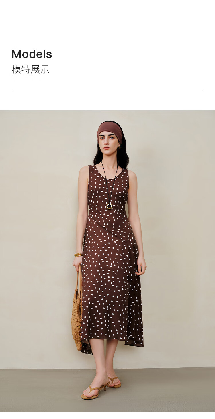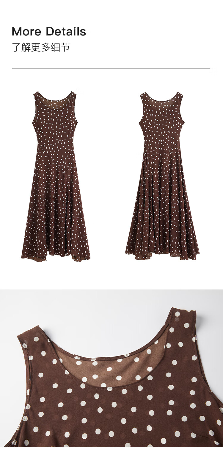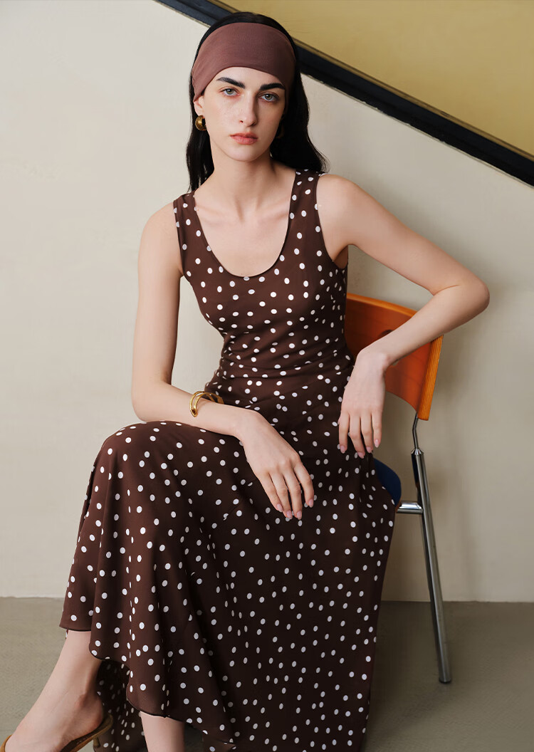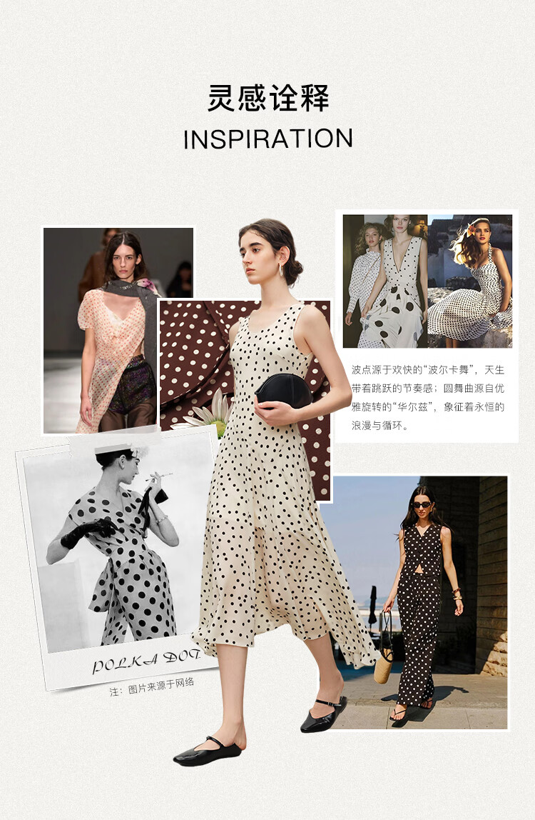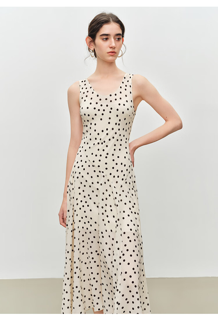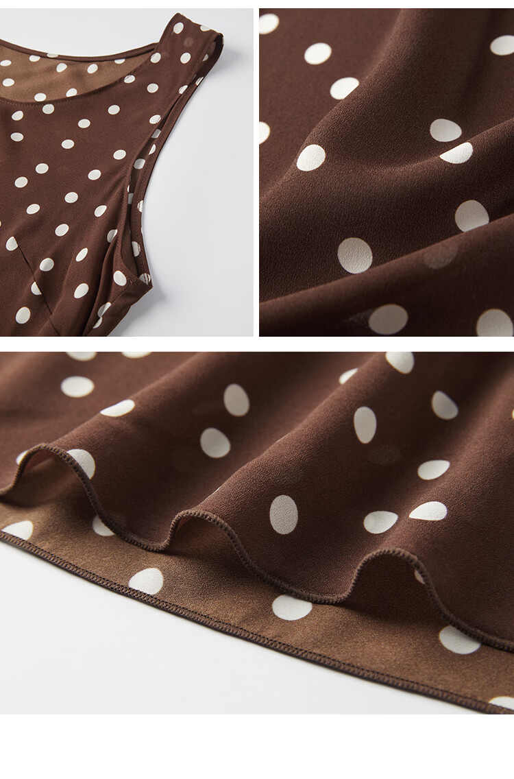 自巧小个子斜裁复古波点雪纺吊带连衣裙女2026夏季新款U领背心裙 白底黑点 XXS (尺码:1)