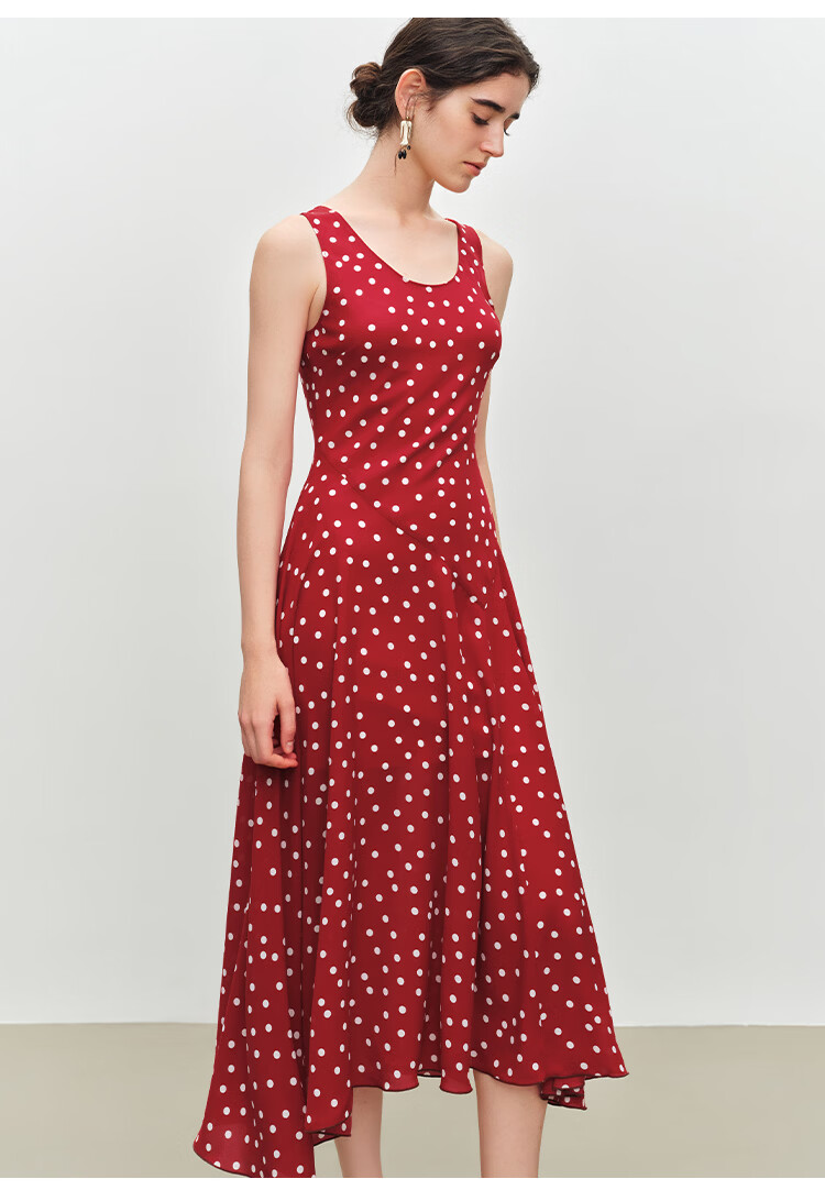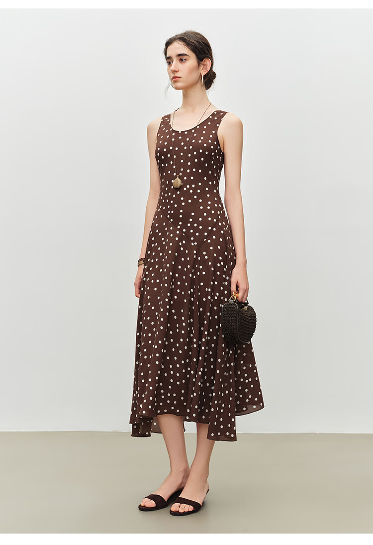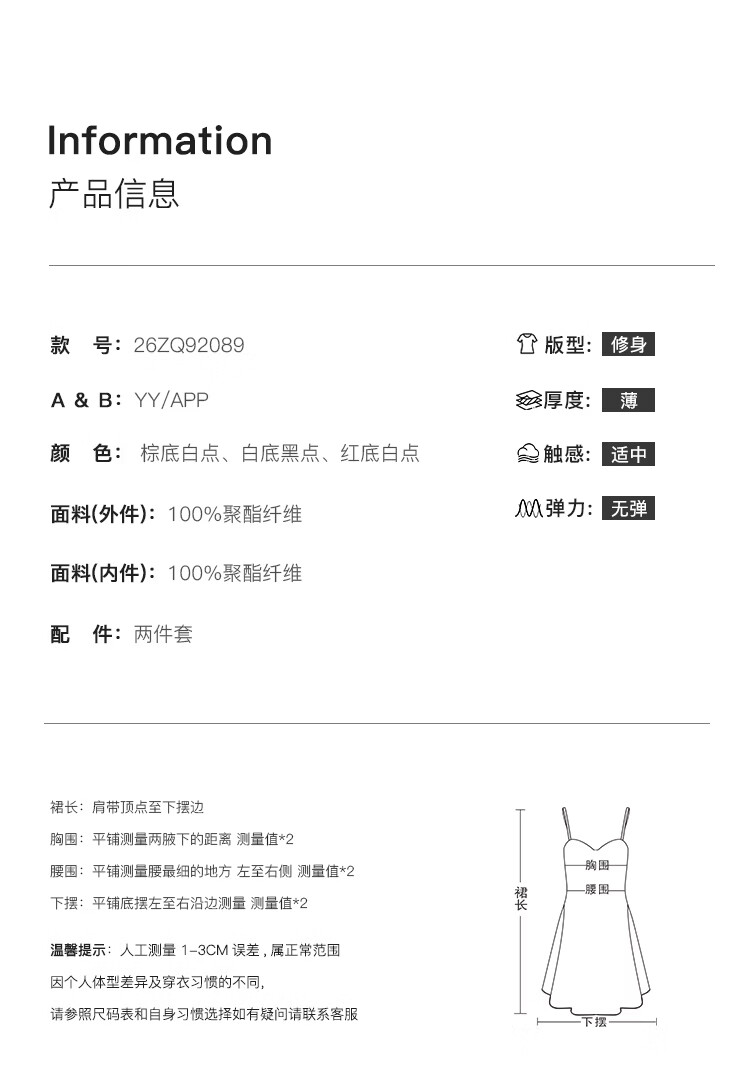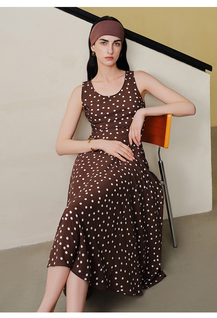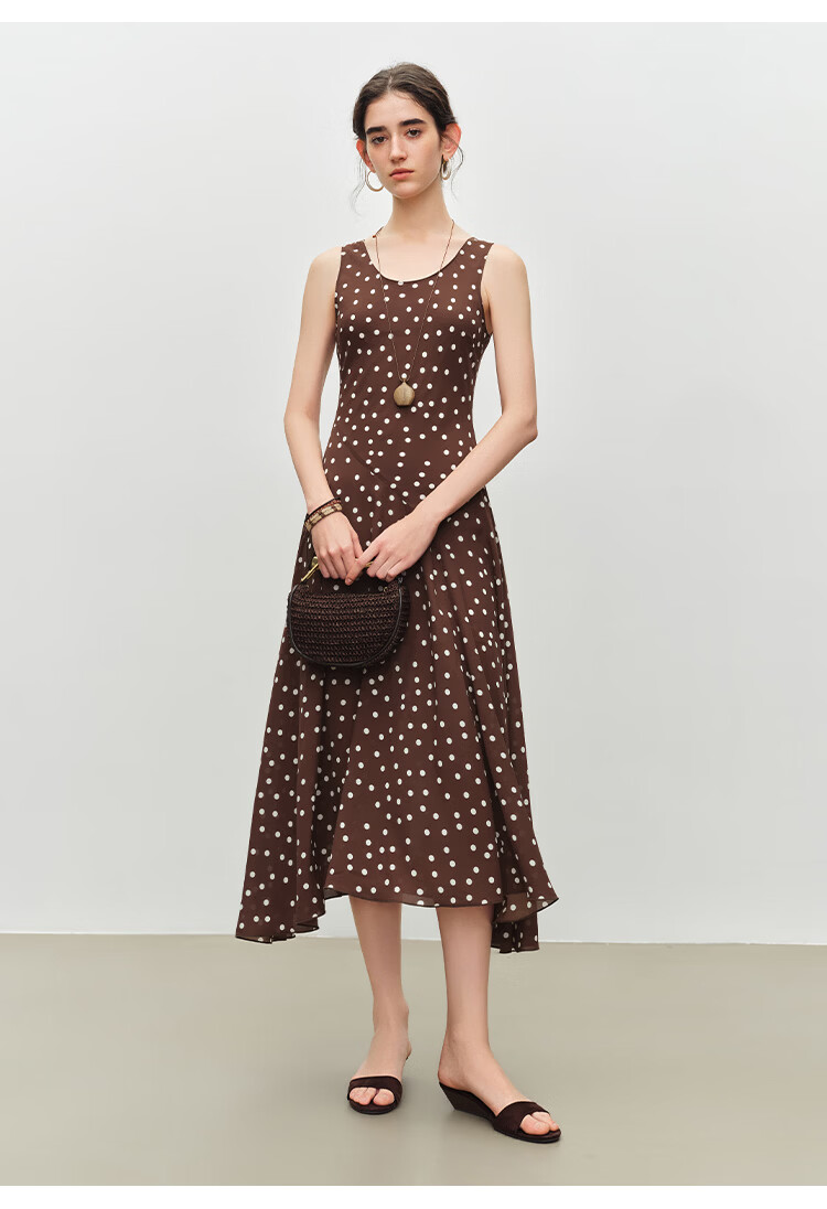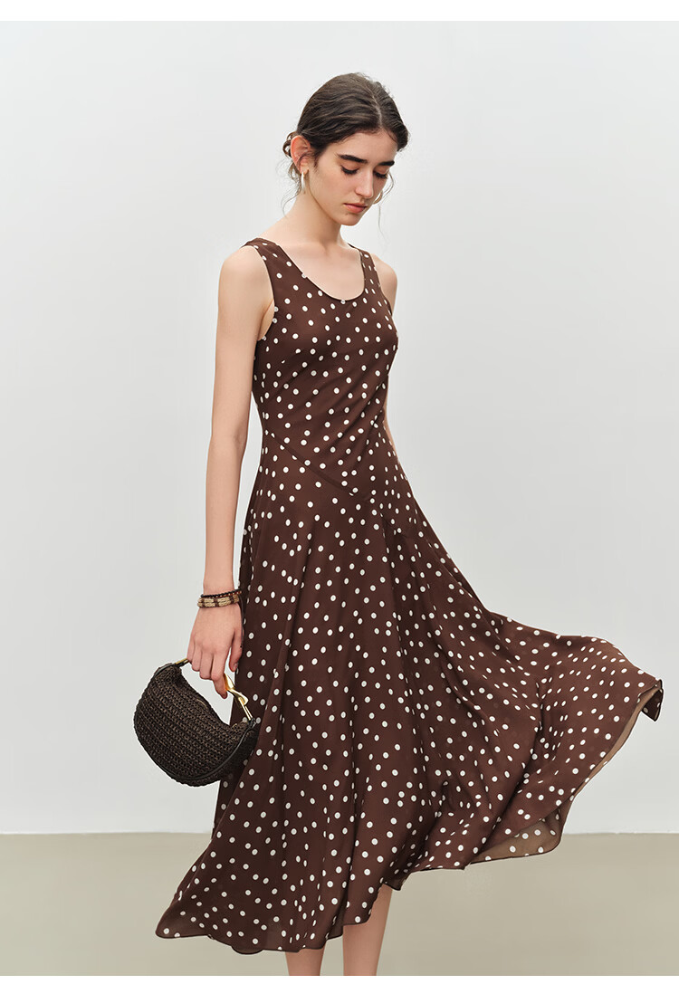 自巧小个子斜裁复古波点雪纺吊带连衣裙女2026夏季新款U领背心裙 白底黑点 XXS (尺码:1)
