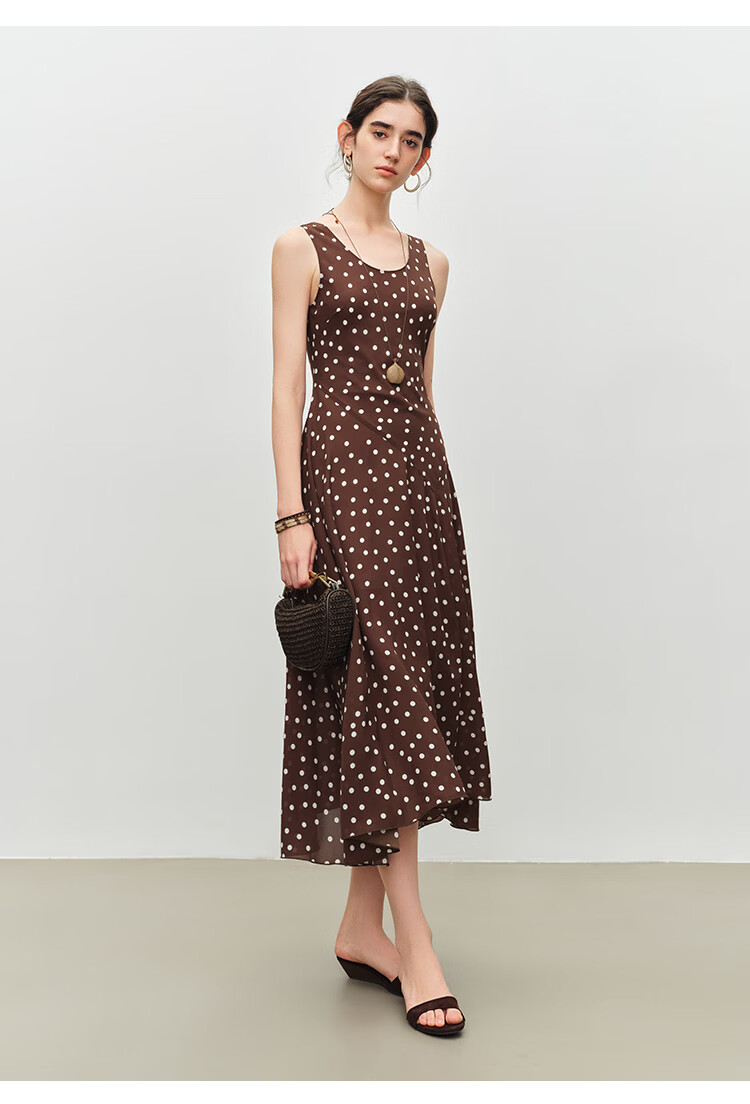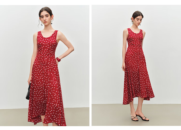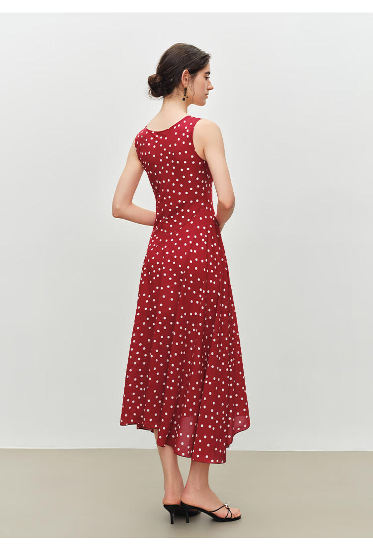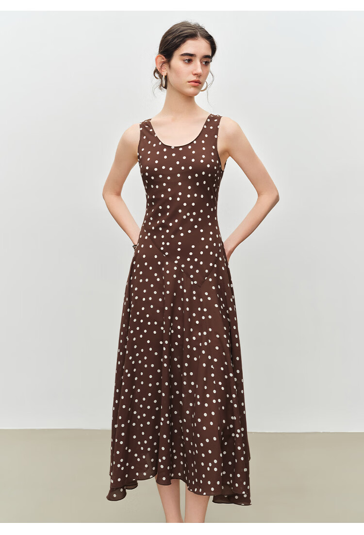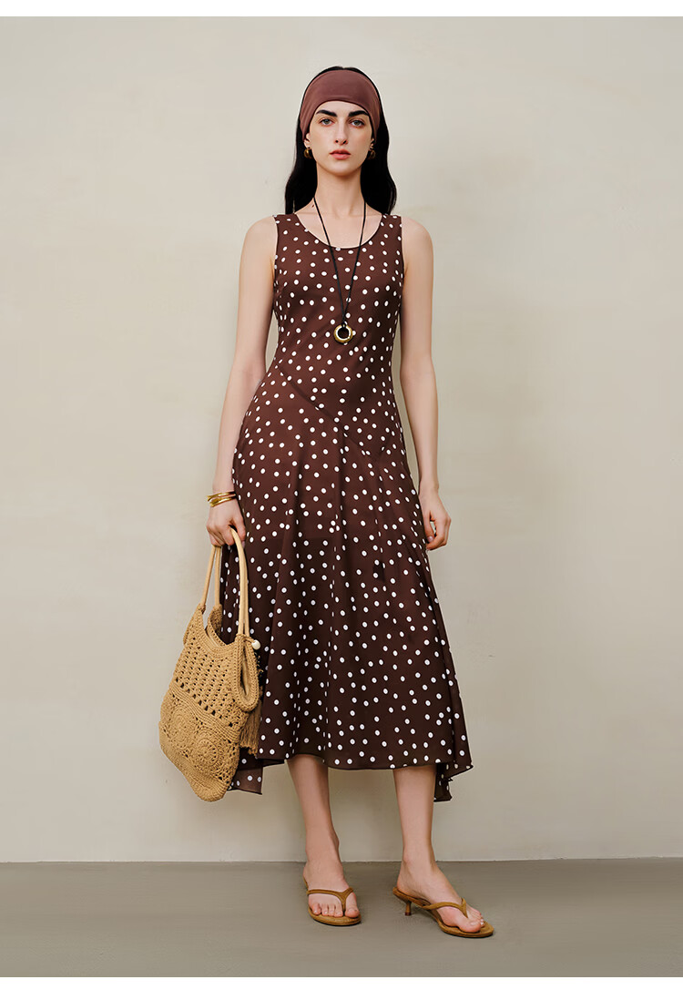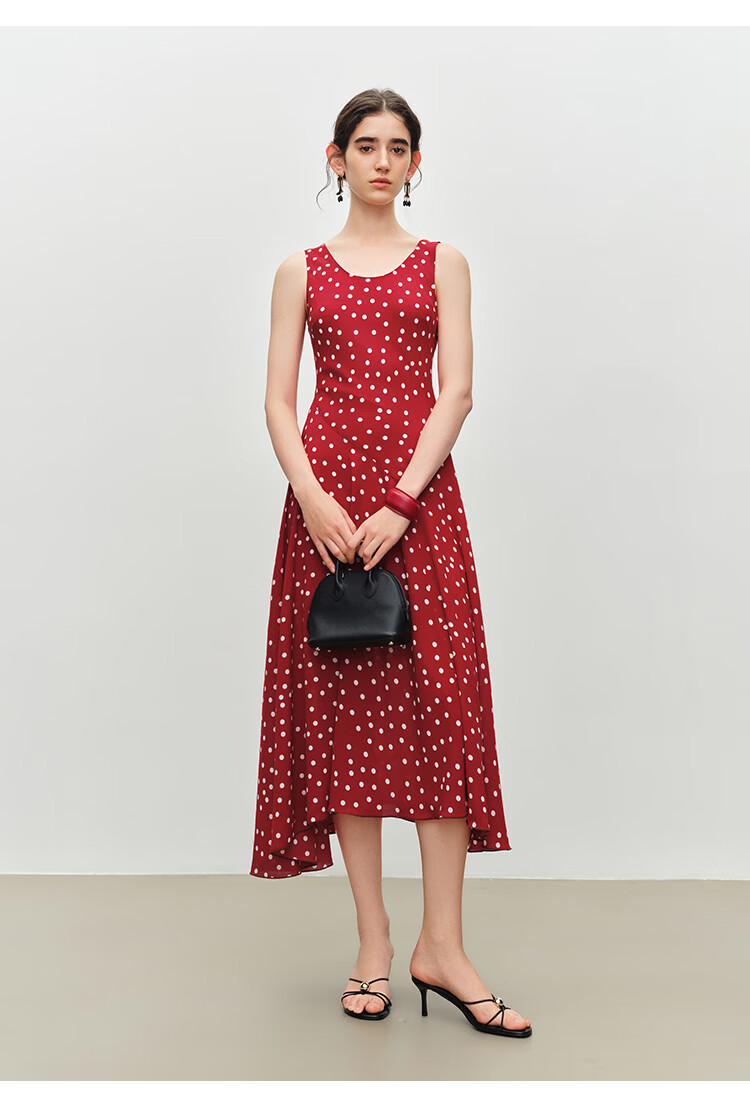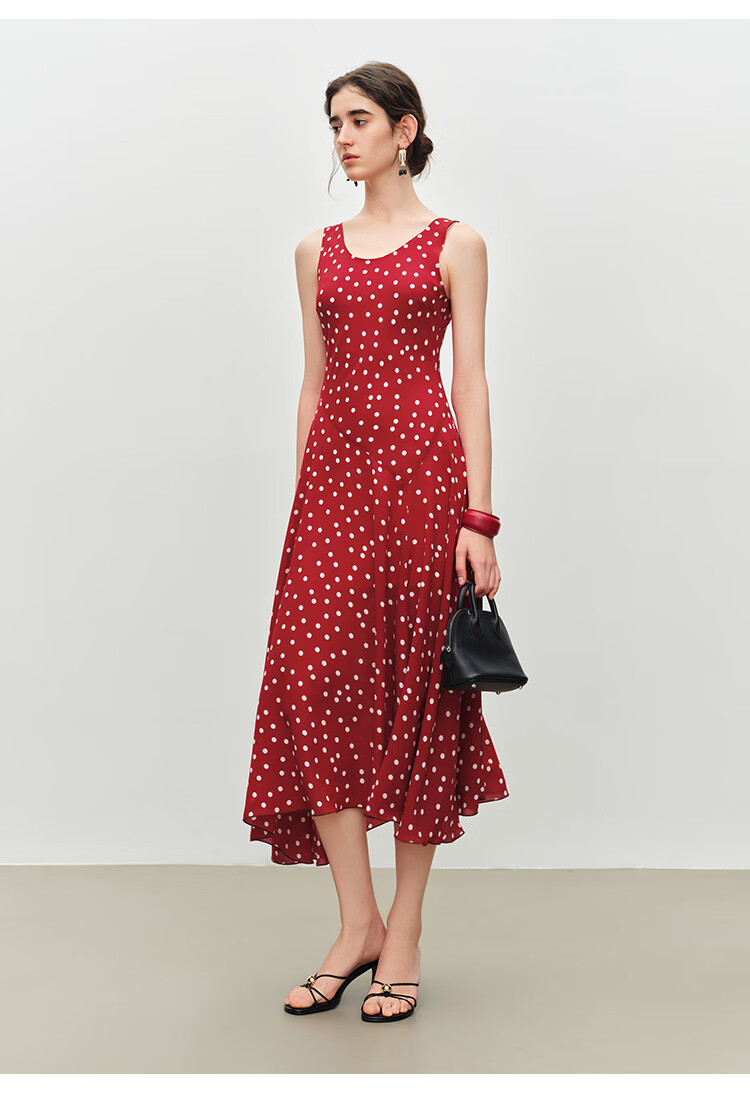 自巧小个子斜裁复古波点雪纺吊带连衣裙女2026夏季新款U领背心裙 白底黑点 XXS (尺码:1)