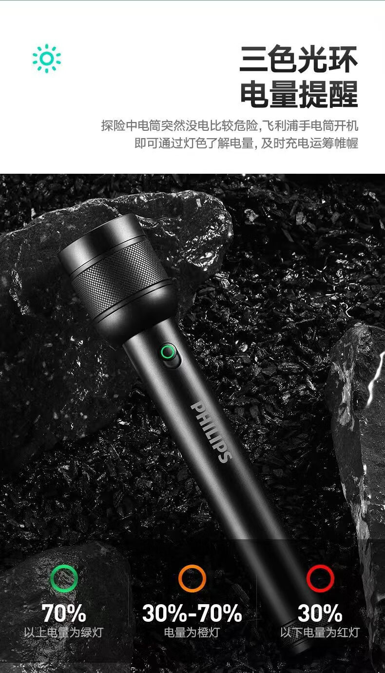 飞利浦(PHILIPS)手电筒强光可充电多功能户外伸缩变焦高亮户外应急照明SFL8168 30W/4000毫安/变焦/SFL8168