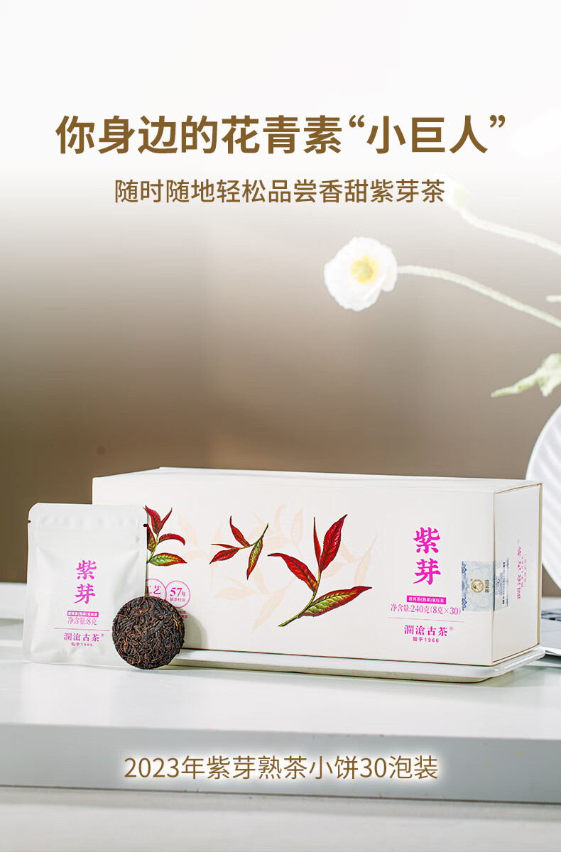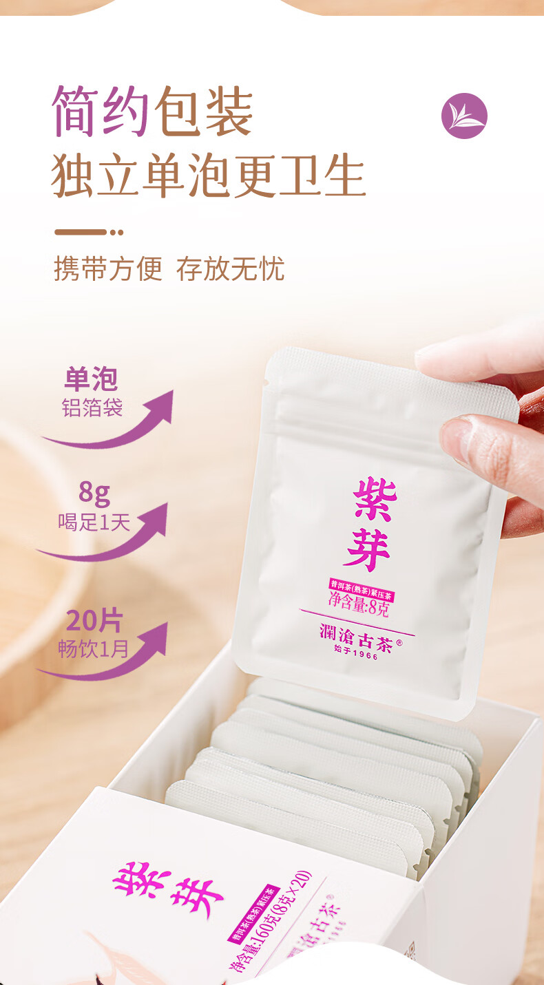 澜沧古茶紫芽熟茶 云南紫芽茶叶小萌饼 普洱茶口粮茶熟普茶饼茶叶礼盒 【自饮装】紫芽熟茶 8g*20片