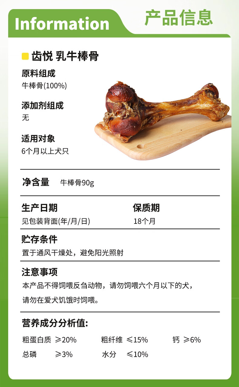 齿悦香酥牛棒骨 狗狗零食 中大型犬磨牙棒 洁齿骨耐咬除垢 牛棒骨1根装(90g)