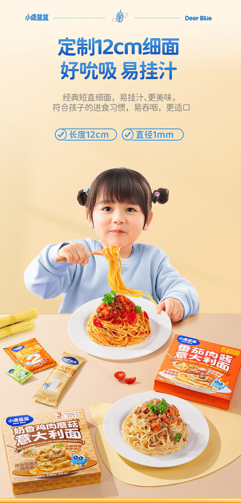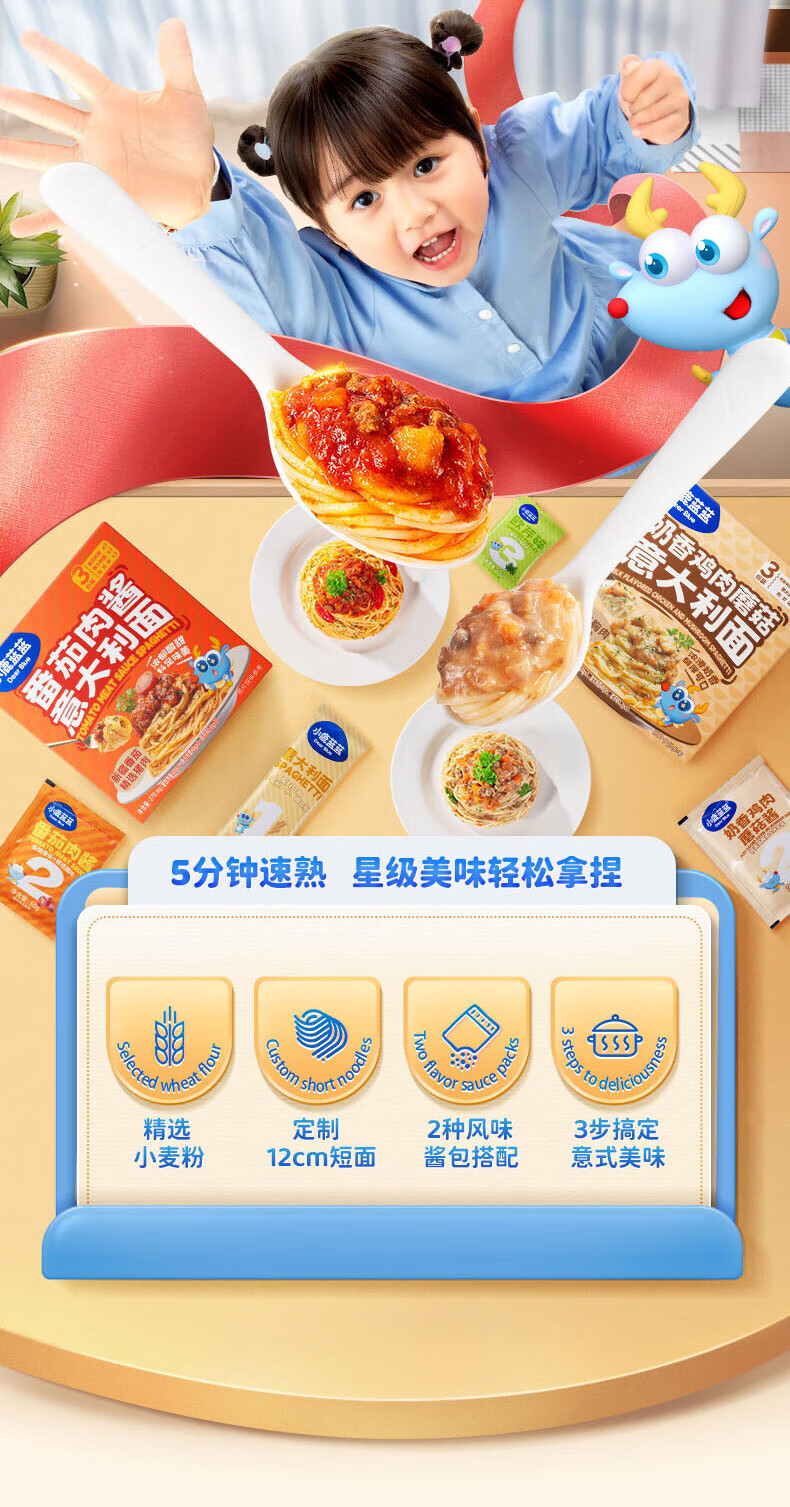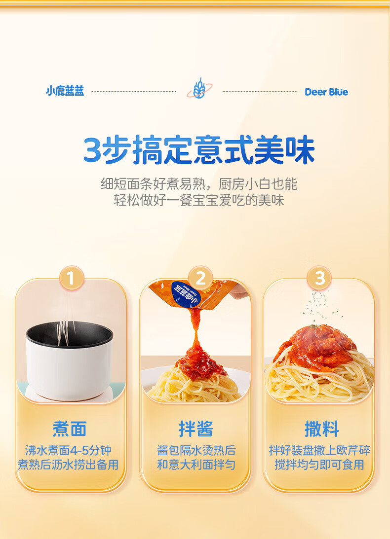 小鹿蓝蓝宝宝主食面条意大利面独立包装意大利面味道鲜口感棒 【3盒装美味均衡】黑椒黑松露咖喱/912g